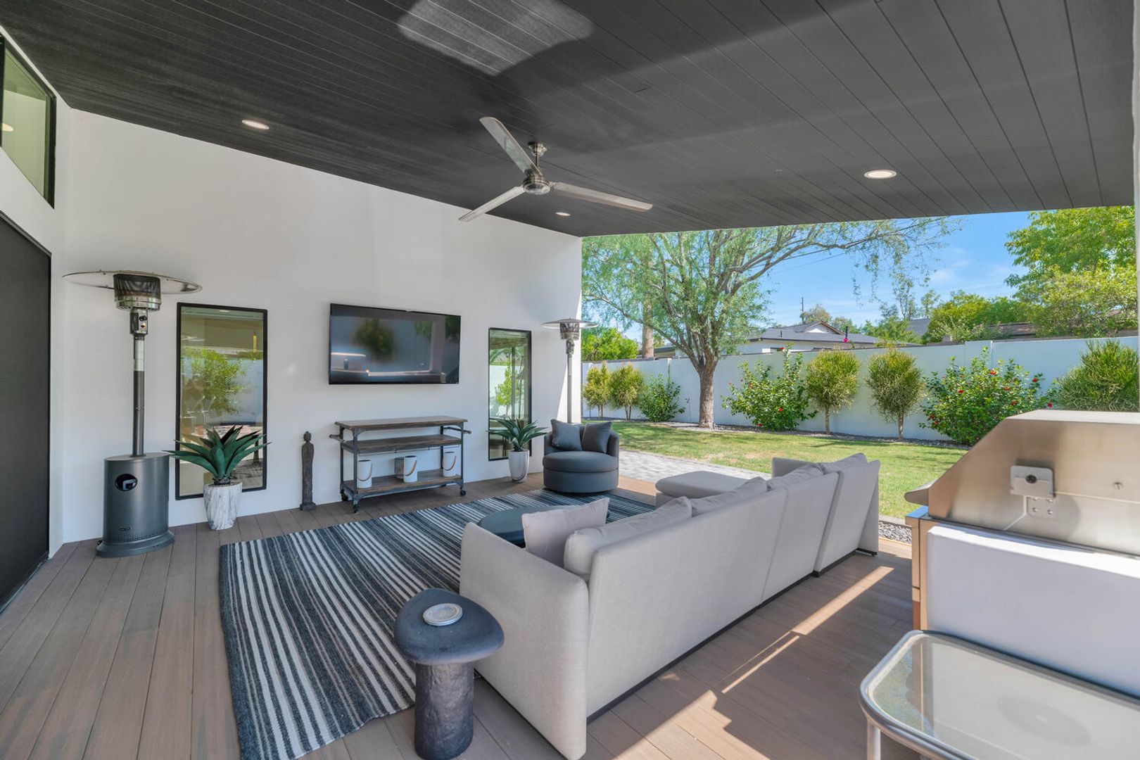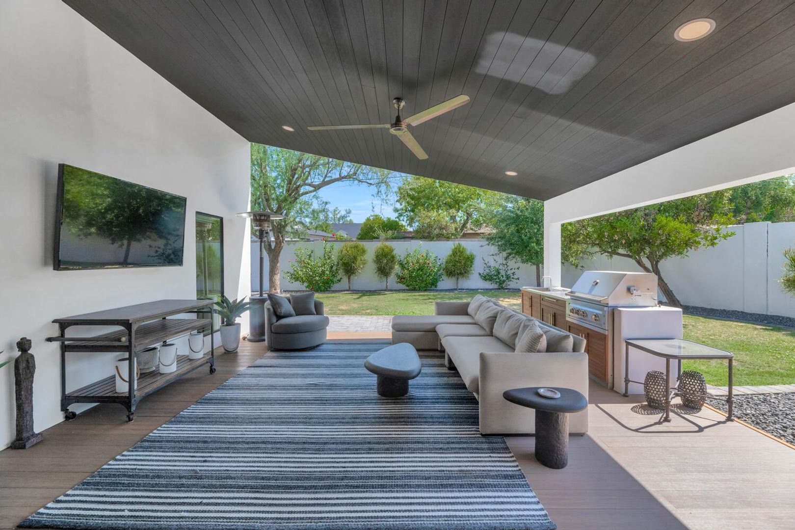 THIS IS A FURNISHED RENTAL THAT IS AVAILABLE SEASONALLY, LONG TERM PRICING, PLEASE CALL FOR BLENDED RATE!! (Jan-Mar $14,995) (Apr, Oct-Dec $9,995) (May-Sept $7,495)! Discover this stunning contemporary single-level residence in the coveted Biltmore Heights, offering 3 bedrooms, 3 bathrooms, with a dedicated office and a 3-car garage across, luxurious living at its best. The open-concept design showcases modern elegance with high-end finishes throughout. The expansive great room seamlessly integrates a gourmet kitchen, living, and dining areas, flowing effortlessly onto a stylish composite timber patio, complete with a BBQ cooking console and integrated outdoor sink—perfect for entertaining. The kitchen is a chef's dream, featuring a premium 48'' range, a 66'' Miele refrigerator/freezer, a walk-in wine cellar, and sleek designer countertops. The opulent master suite boasts a granite walk-in shower and a luxurious soaking tub for ultimate relaxation. Additional highlights include a durable metal roof, frosted glass garage doors, European scintilla flooring, and a striking see-through fireplace and firepit. Lush front and back landscaping with verdant leaf walls creates a serene, private oasis, making this home a true sanctuary.