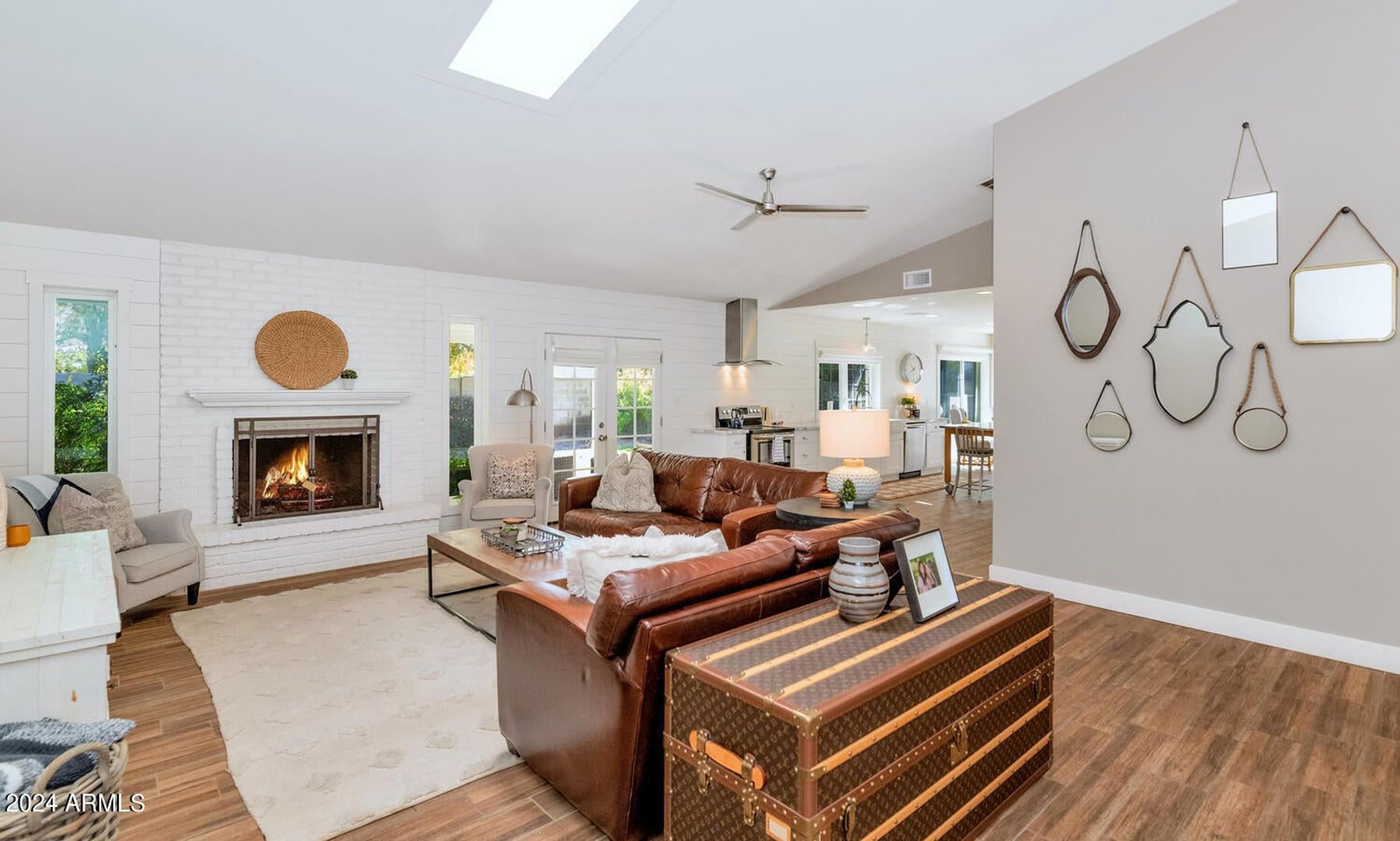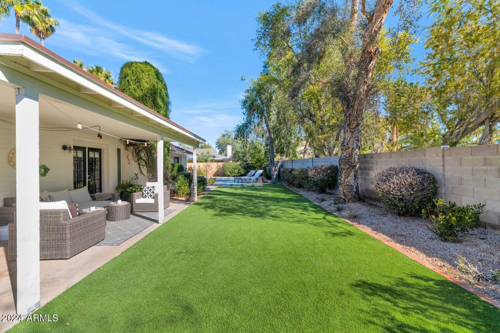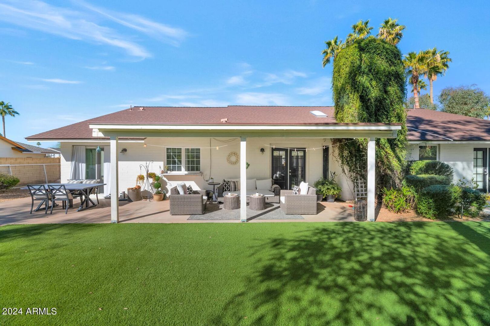 This darling home is light, bright and open, making it seem much bigger than the square footage suggests. The floor plan flows beautifully, and every room has very stylish finishes. The kitchen has beautiful white cabinetry, marble countertops, a cool farmhouse sink and stainless-steel appliances, the family room is super charming with an exposed brick fireplace as its focal point, there's both formal and informal dining areas and the primary suite is great looking. The backyard has a very pretty pool, large, covered patio, lots of grassy yard and plenty of room to entertain. This is a perfect home for a single, small family or empty nesters looking to downsize and it's in an excellent location!