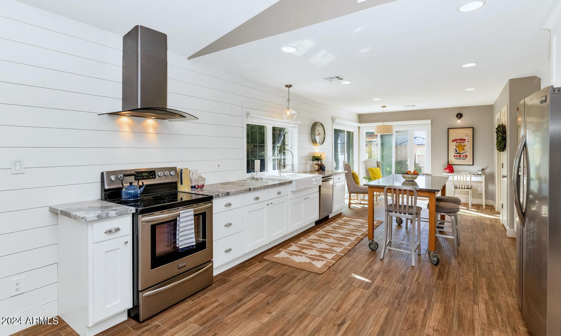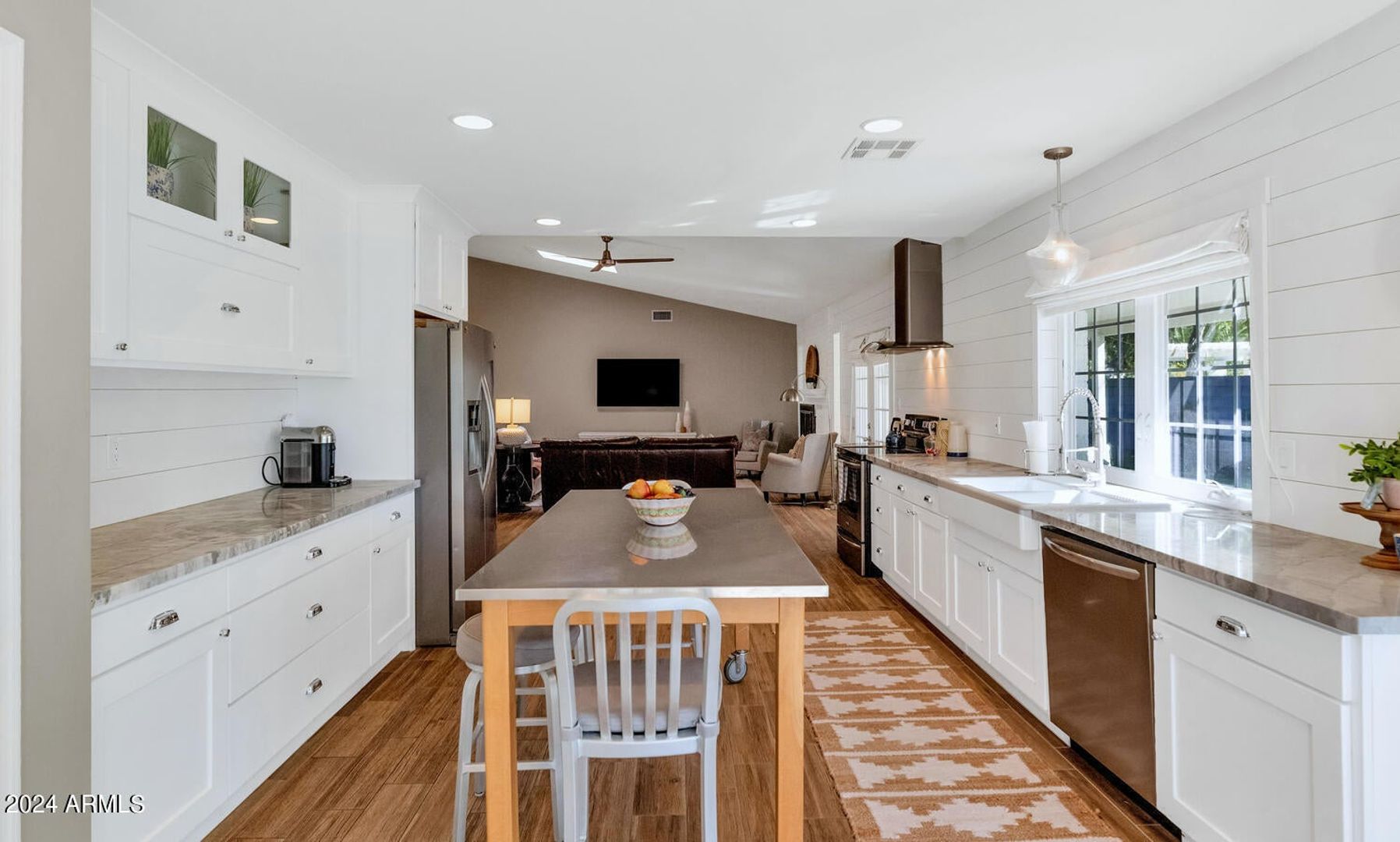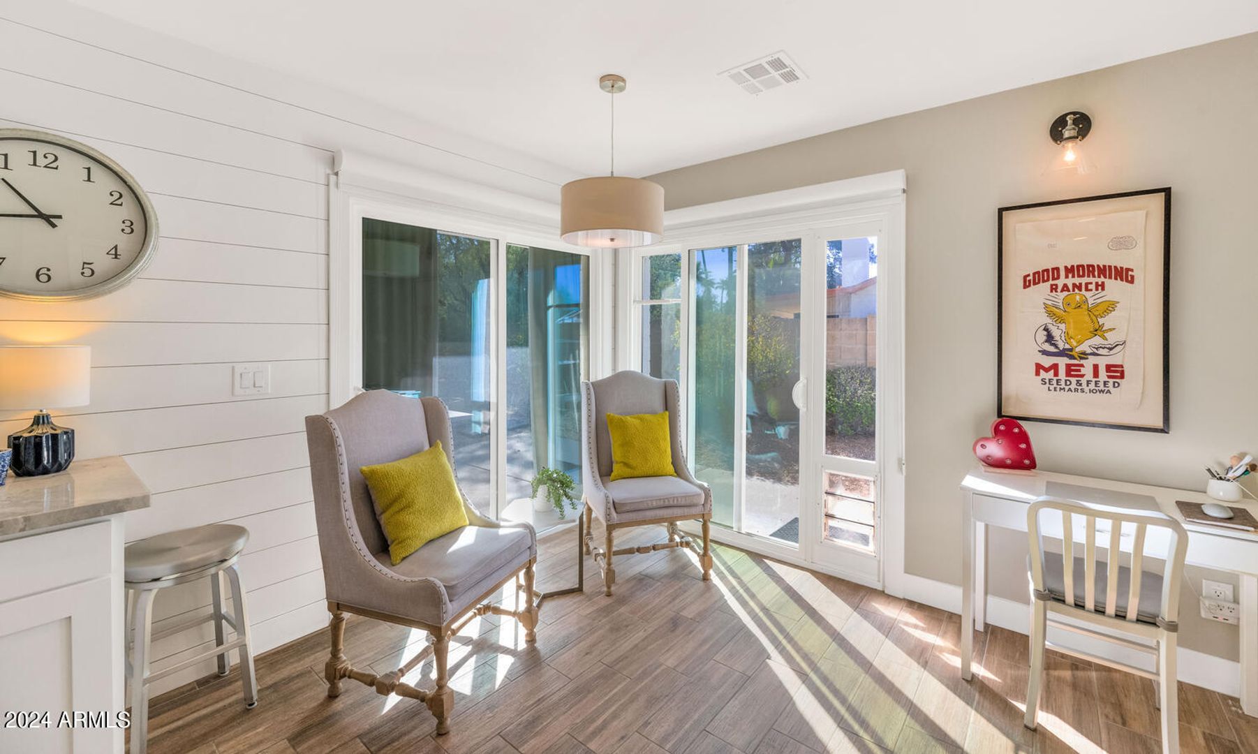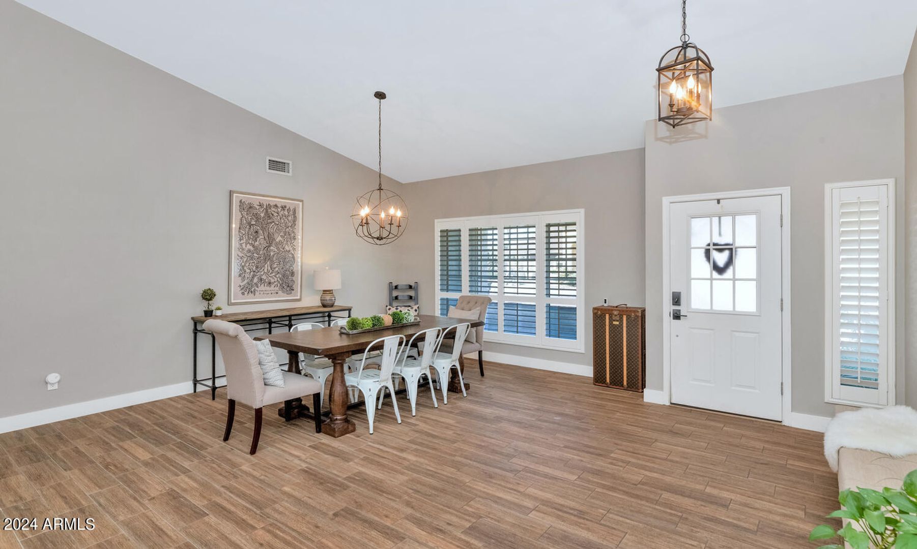 This darling home is light, bright and open, making it seem much bigger than the square footage suggests. The floor plan flows beautifully, and every room has very stylish finishes. The kitchen has beautiful white cabinetry, marble countertops, a cool farmhouse sink and stainless-steel appliances, the family room is super charming with an exposed brick fireplace as its focal point, there's both formal and informal dining areas and the primary suite is great looking. The backyard has a very pretty pool, large, covered patio, lots of grassy yard and plenty of room to entertain. This is a perfect home for a single, small family or empty nesters looking to downsize and it's in an excellent location!