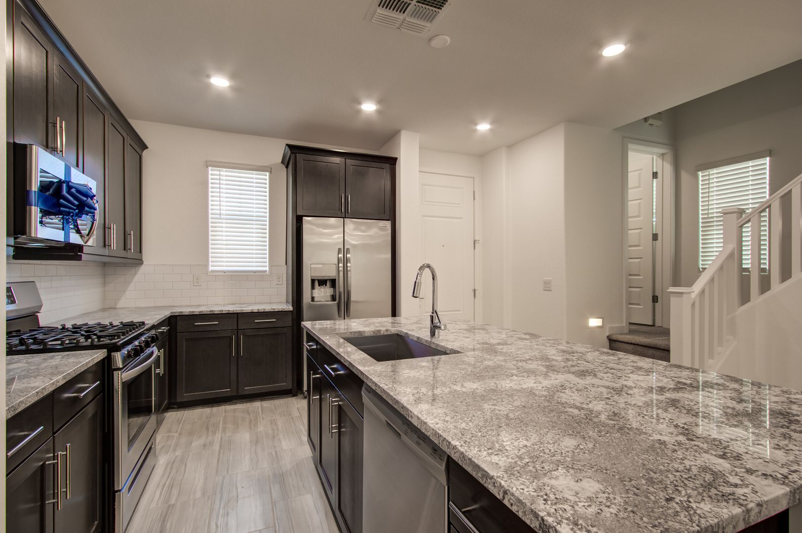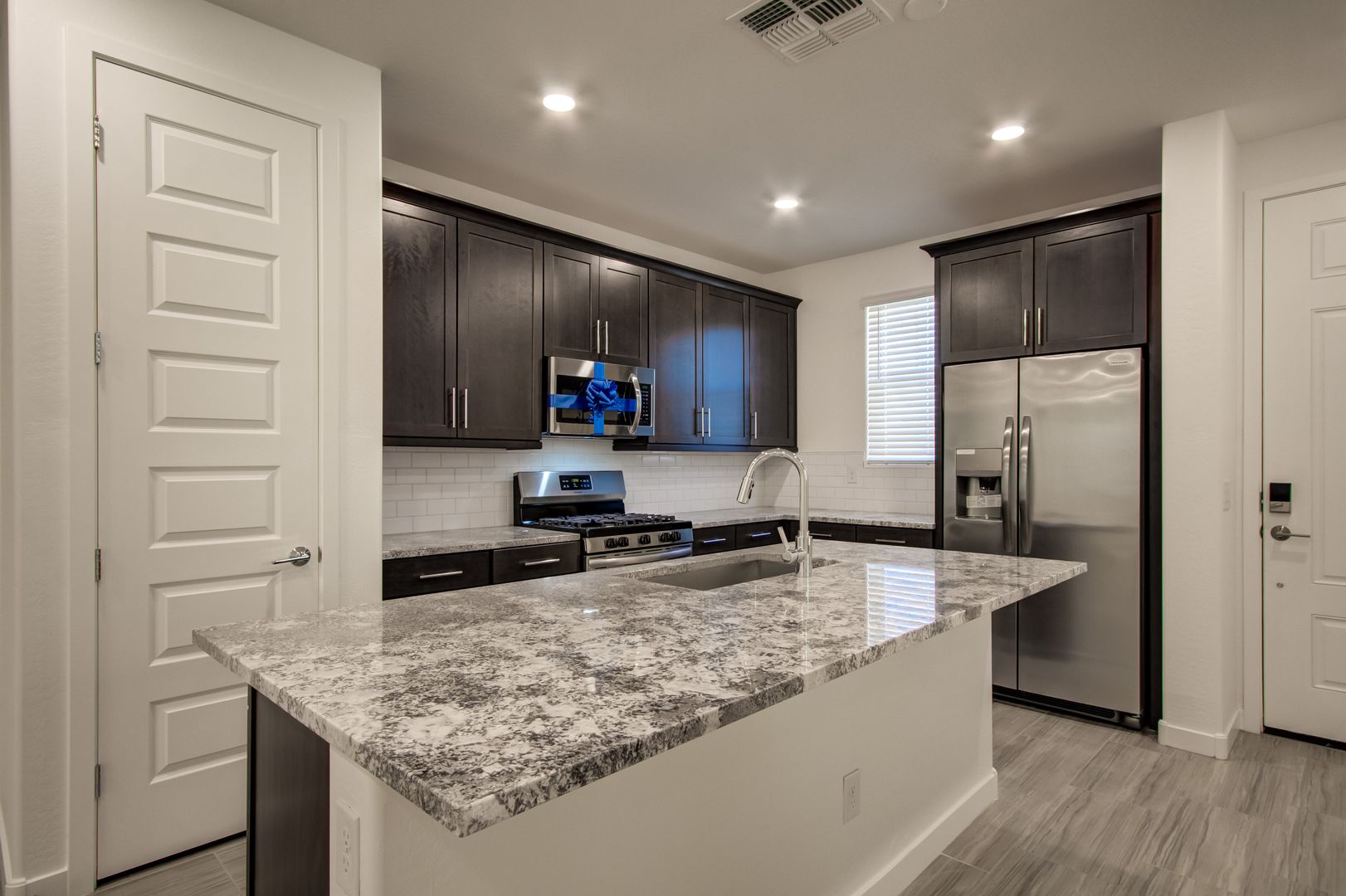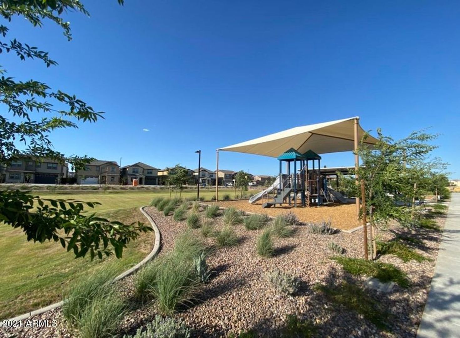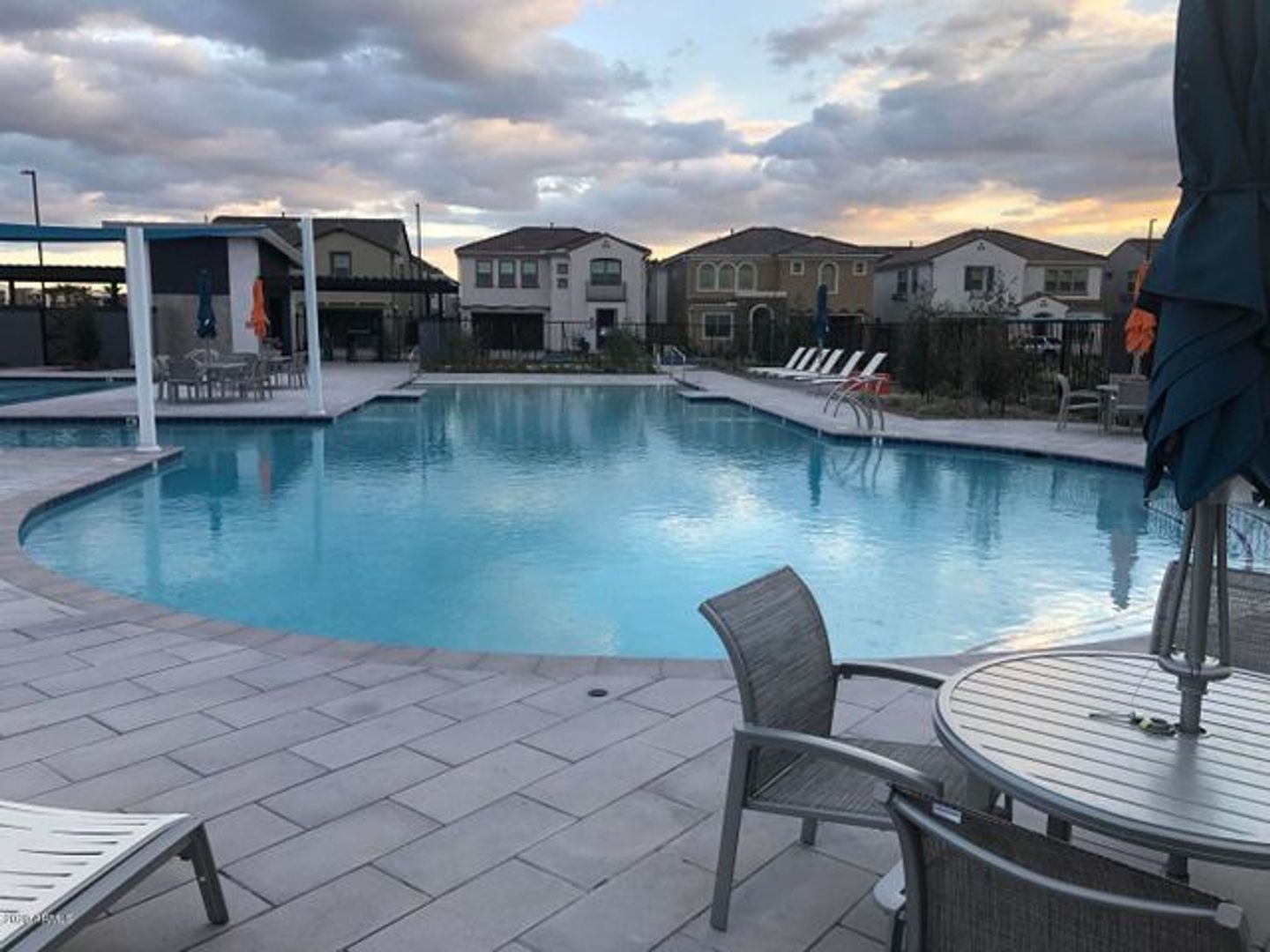 Single family detached home built in 2019 in a new beautiful, gated master planned community. Elegant stone front look with a backyard that will be finished shortly! 4 Bedroom, 2.5 bath. 2 Car garage. No carpet downstairs. Brand new washer and dryer will be included along with soft water system being installed. All appliances included. Close to freeway (San Tan 202) and shopping. Location, location, and location. Quartz kitchen countertop. You have your private side yards and backyard. Close to community pool and huge park directly across the street!