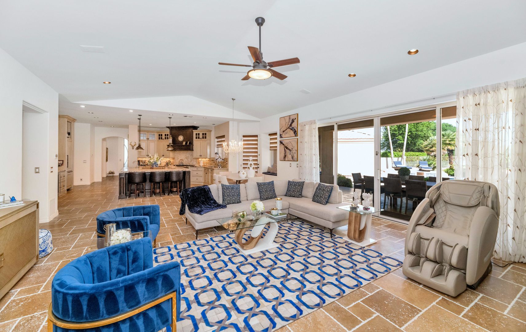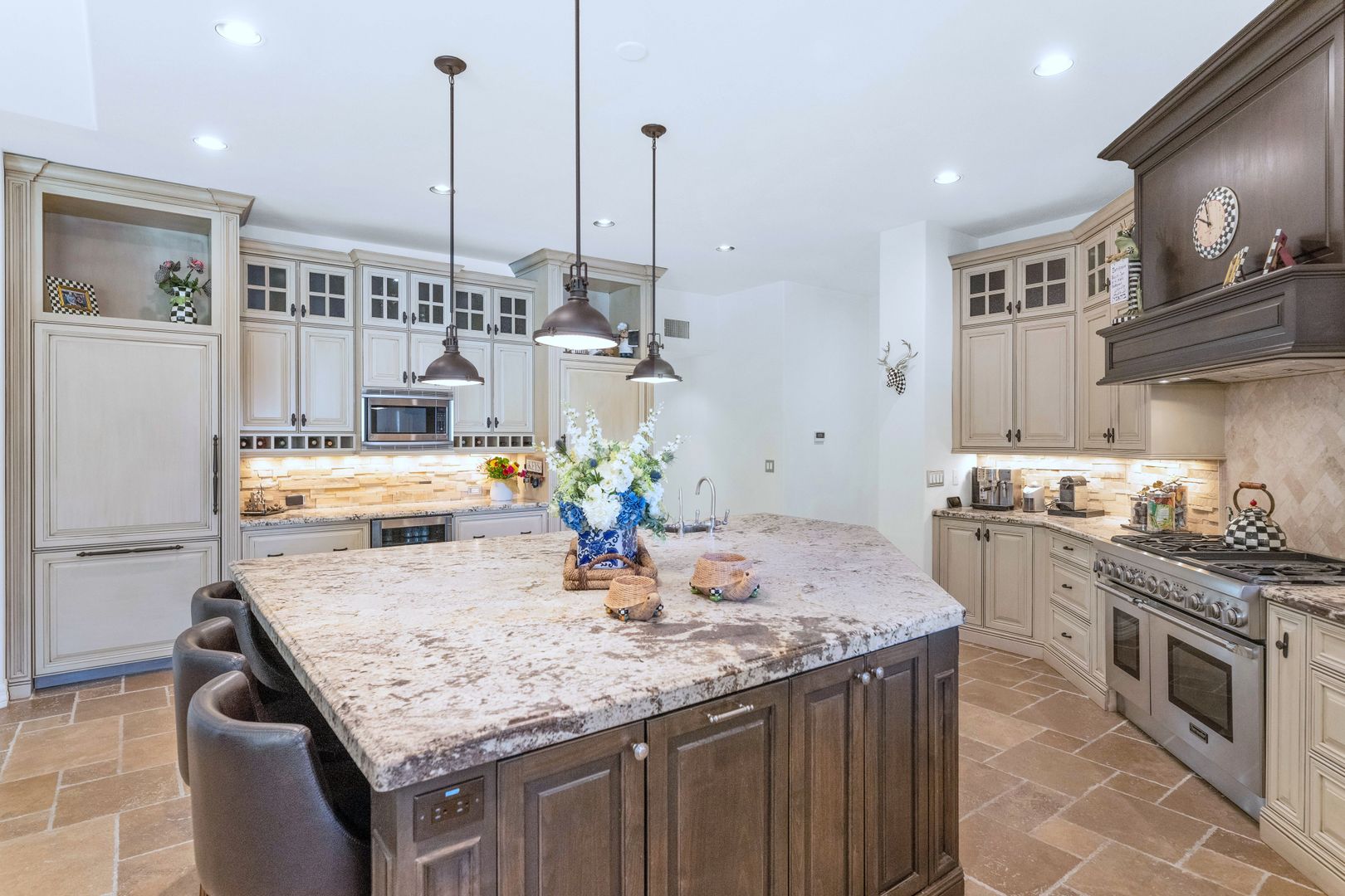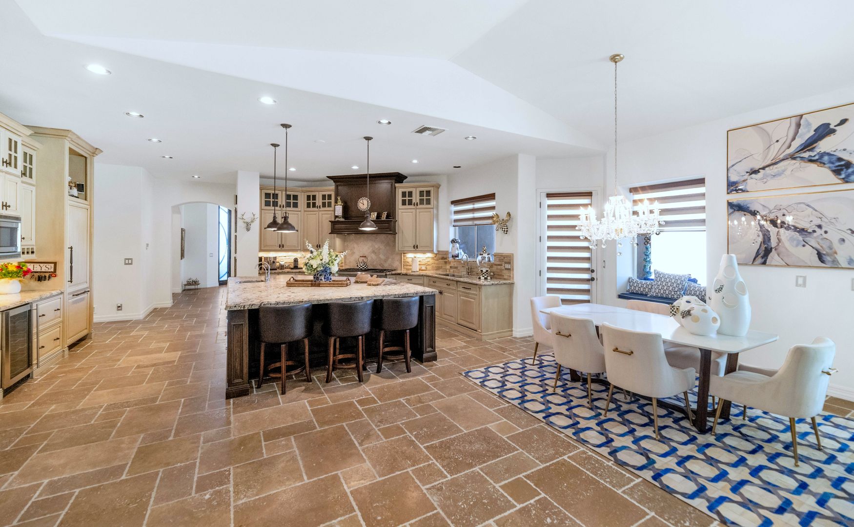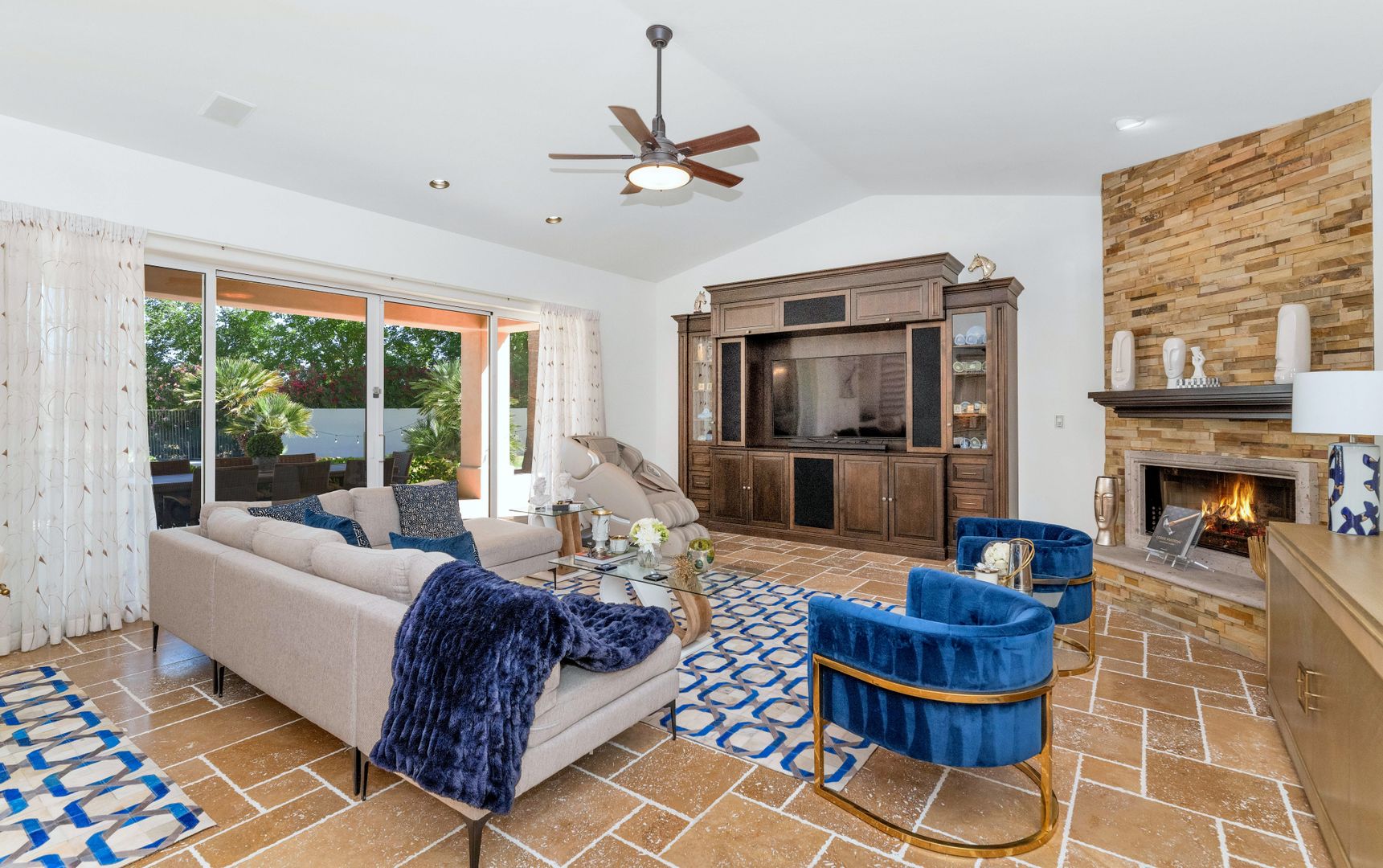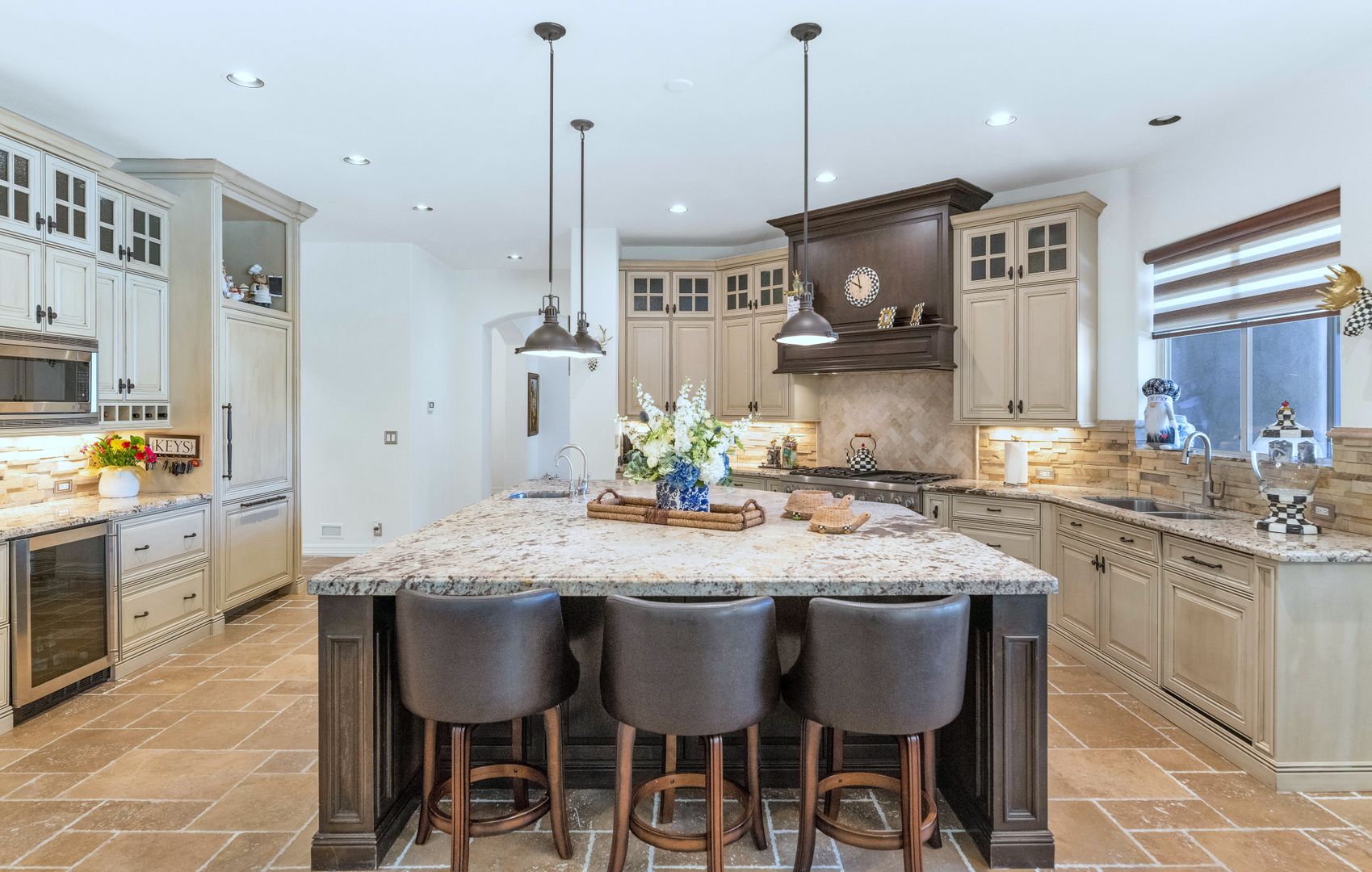 Nestled on a quiet cul- de-sac with views of Camelback Golf Course in privately gated Merrill Cantatierra. Freshly painted interior & exterior, abundant natural light, plantation shutters, new lighting along with wood and stone flooring all enhance this expansive split floor plan home on the perfect golf course lot. The gourmet chef's kitchen with top of the line appliances, custom cabinetry & large center island is open to the family room where 16 ft floor to ceiling glass sliders lead outdoors. The master is spacious & bright w/ a spa like bath that boasts dual vanities, her make up area, separate shower & soak tub along w/ a cozy fire place that all add to the ambiance of this spectacular master suite. The backyard is an entertainers paradise w/ plenty of covered space, heated pool, spa, outdoor kitchen and Jack Nicklaus design putting green. Additional features: Large guest bedrooms with en-suite baths, 3 car garage with built ins, private home office and bonus room; ideal for a home gym, teen/kids playroom room or perhaps another guest suite make this the ideal Paradise Valley home.