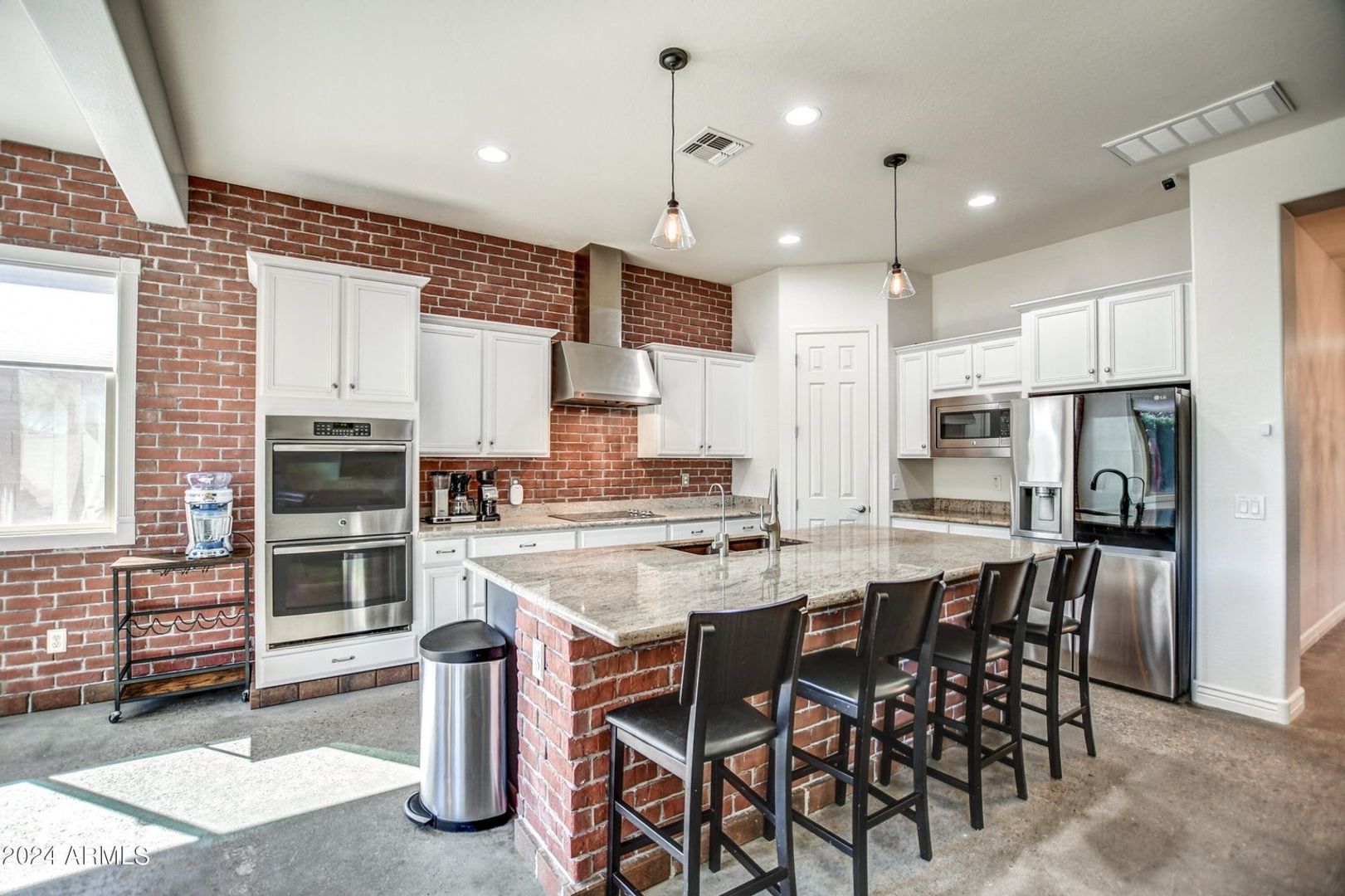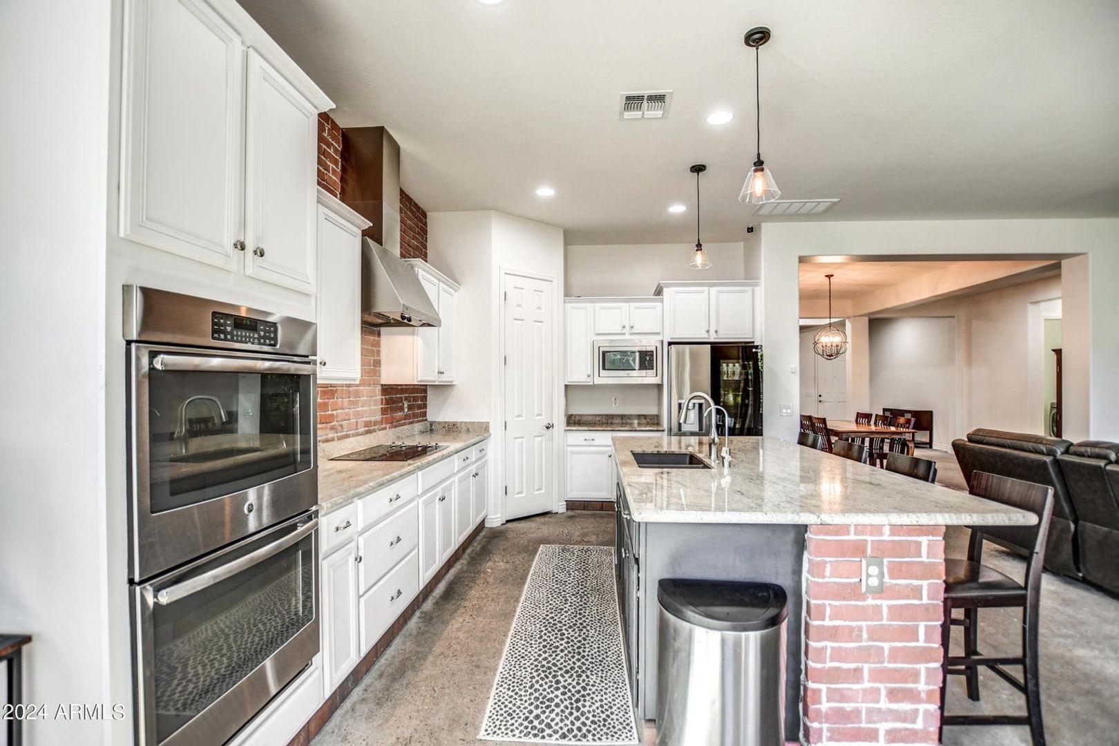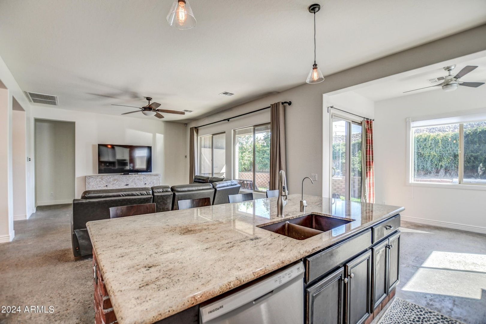 Welcome to your dream home! This stunning 2014-built residence boasts 2479 sq. ft. of luxurious living space with stained concrete throughout, featuring 4 spacious bedrooms and 3 baths. Indulge in the convenience of a five-car garage, perfect for car enthusiasts or extra storage needs. The expansive family room provides ample space for relaxation and entertainment, while the gorgeous kitchen showcases granite countertops, a large bar, and modern appliances. Host memorable gatherings in the elegant formal dining room. Enjoy ultimate privacy as this property backs up to the serene canal. Additional highlights include fresh paint inside, 220V electricity in the garage, an RV gate, and a coveted location in a highly desirable neighborhood. Don't miss this opportunity!