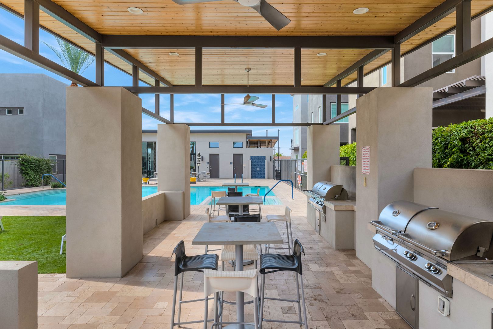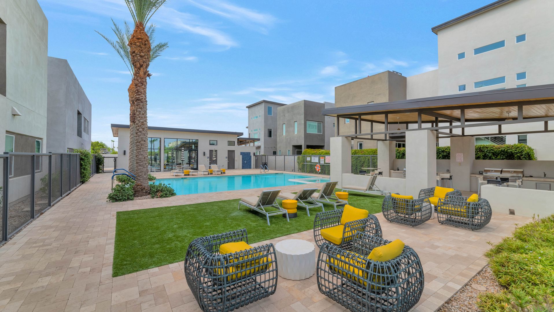 Discover urban luxury in this 3-bed, 2.5-bath gem, built in 2018 in a secure gated community. Enjoy top-tier amenities, including a pool, spa, and gym. Inside, 10' ceilings, neutral tones, and abundant natural light create a perfect space for hosting. The chef's kitchen boasts stainless steel appliances and a stylish waterfall island with seating. The landscaped backyard features a covered patio, artificial turf, and a putting green. Located in the heart of Scottsdale, it's close to Old Town, shopping, dining, hiking, parks, and golf courses, with easy access to the 101 freeway. Your urban oasis awaits!