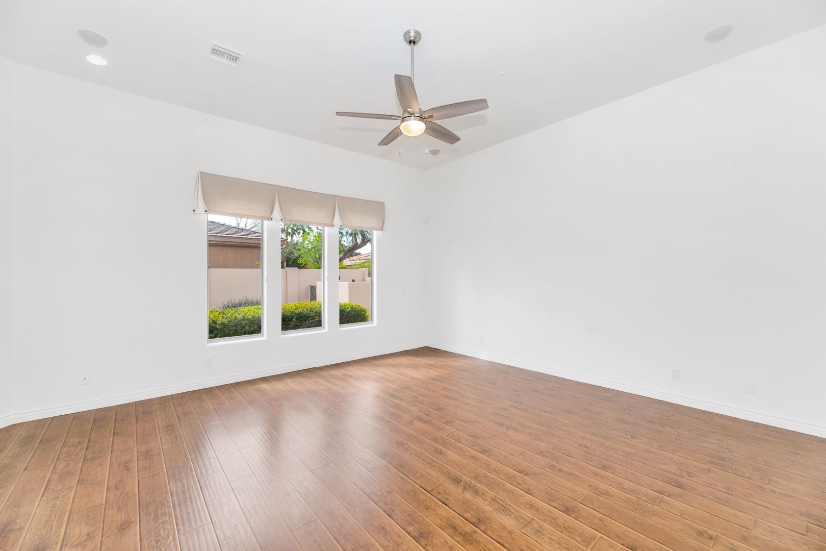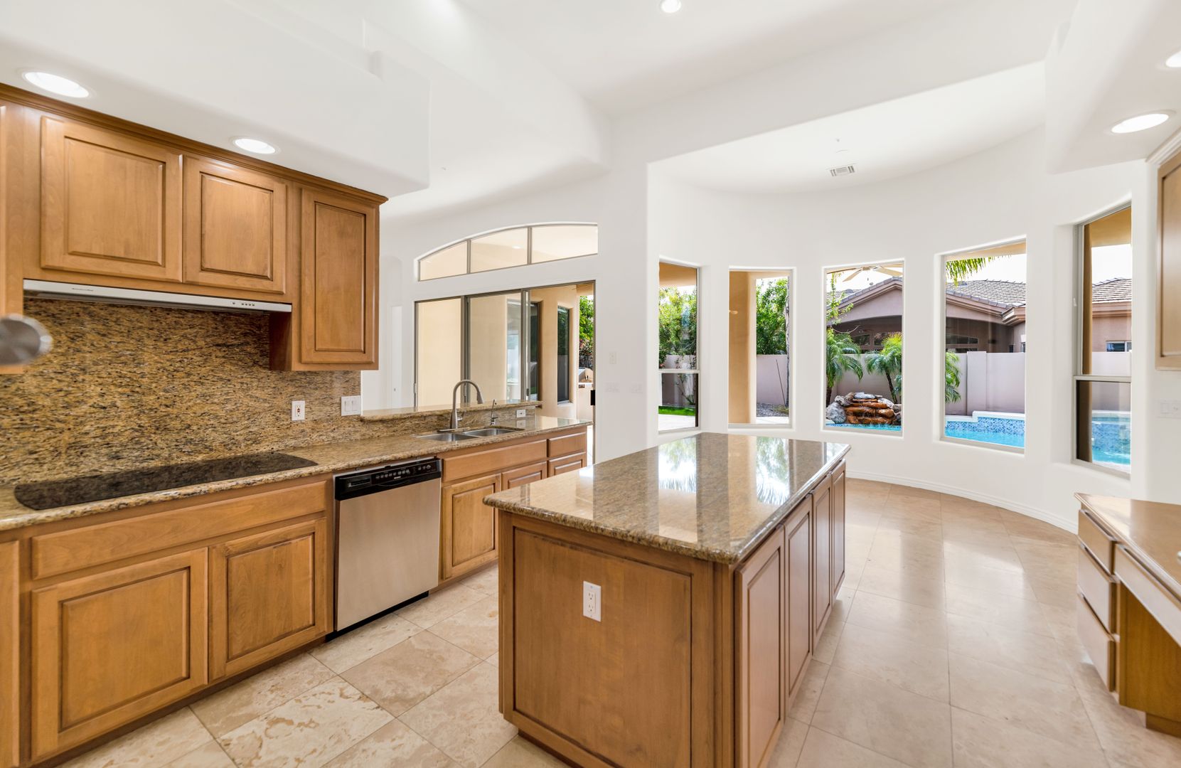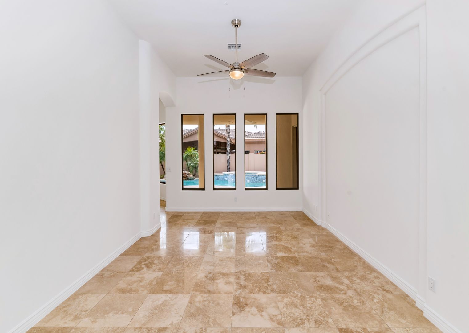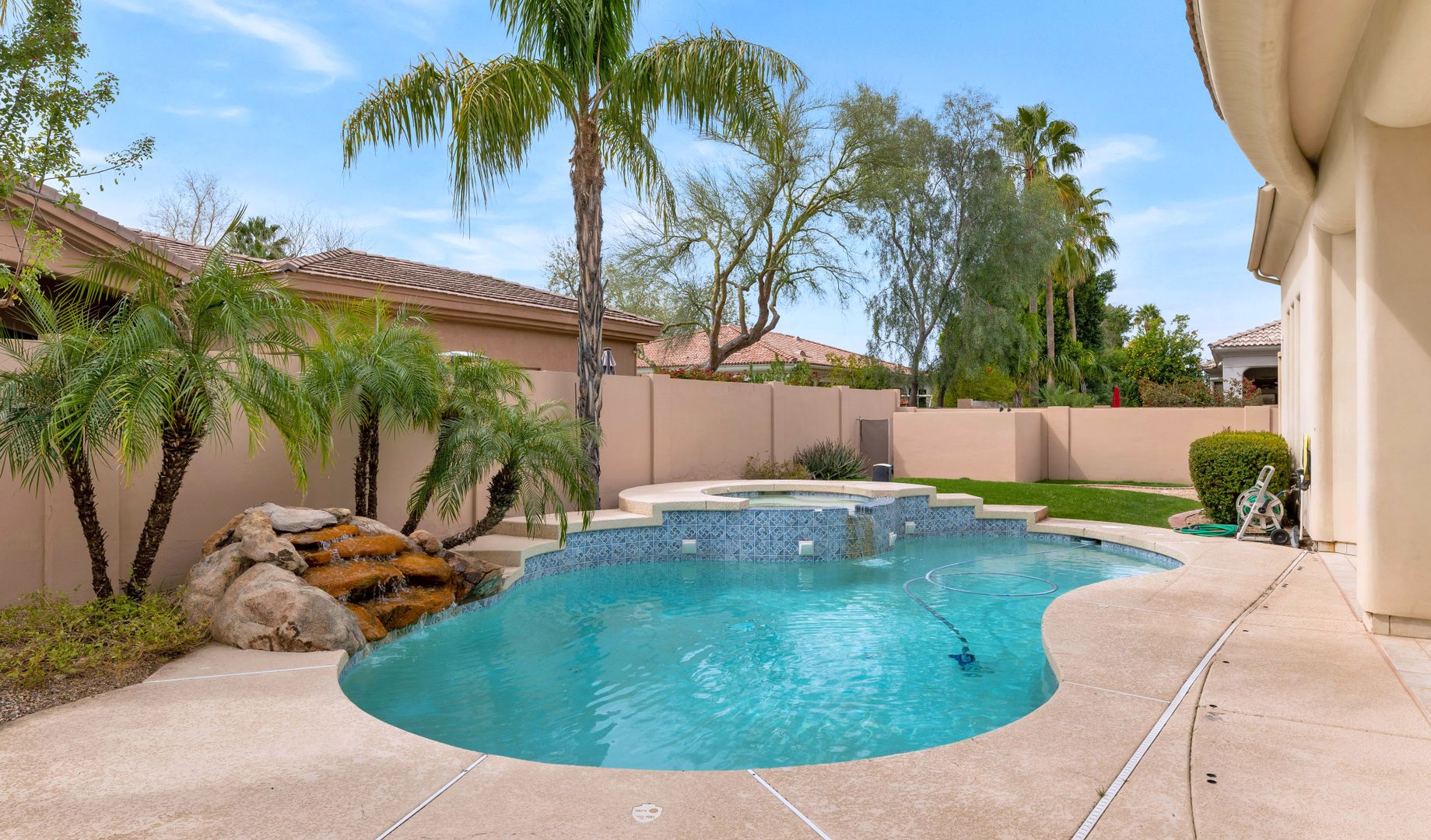 Full interior just repainted! Excellent Scottsdale location. IN GATED COMMUNITY. Home located at end in cul-de-sac, total privacy with all single level homes around and gated! Home has 4 private baths, one for each bedroom, custom granite kitchen with stainless steel appliances, alder cabinets, 20' vaulted ceilings, travertine tile in all the right places, custom interior paint, 2 car garage plus extra storage area, soft water, beautifully fenced saltwater pool which will be professionally maintained monthly, security system that can be activated by tenant.