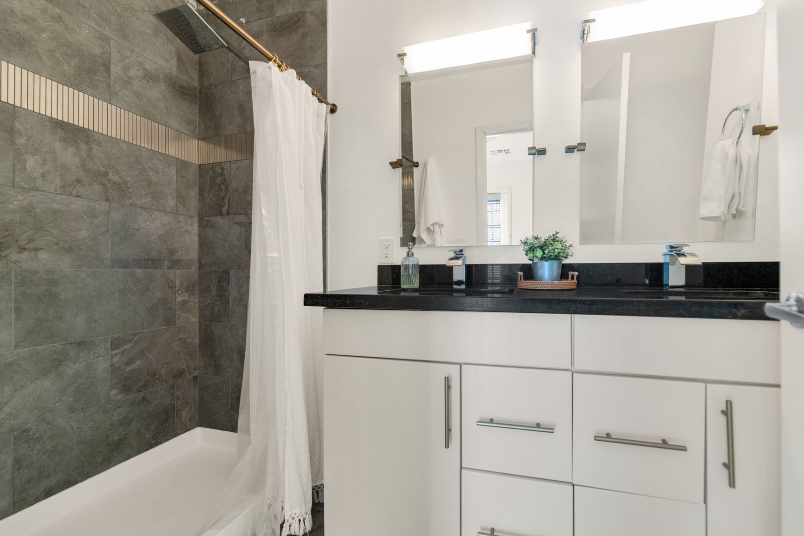 Discover this stunning tri-level townhome in the exclusive gated community of Brownstone Commons! This home boasts three luxurious master suites, each with its own private bathroom for ultimate comfort and convenience. The ground floor features a spacious bedroom with a full bathroom, perfect for guests or multi-generational living. On the second floor, the open-concept living area seamlessly connects the stylish kitchen, complete with granite countertops, a matching tile backsplash, modern cabinetry, a gas range, and a large island for extra prep and storage, to the bright and inviting living space and a convenient half bathroom. The top floor hosts two additional master suites, each with ensuite bathrooms featuring dual sinks. One suite offers a generous walk-in closet, while the other opens to a private balcony. The laundry room is thoughtfully located on this level for added convenience. As a crowning touch, the rooftop patio showcases breathtaking city views, perfect for relaxing or entertaining. Don’t miss this exceptional home—schedule your visit today!