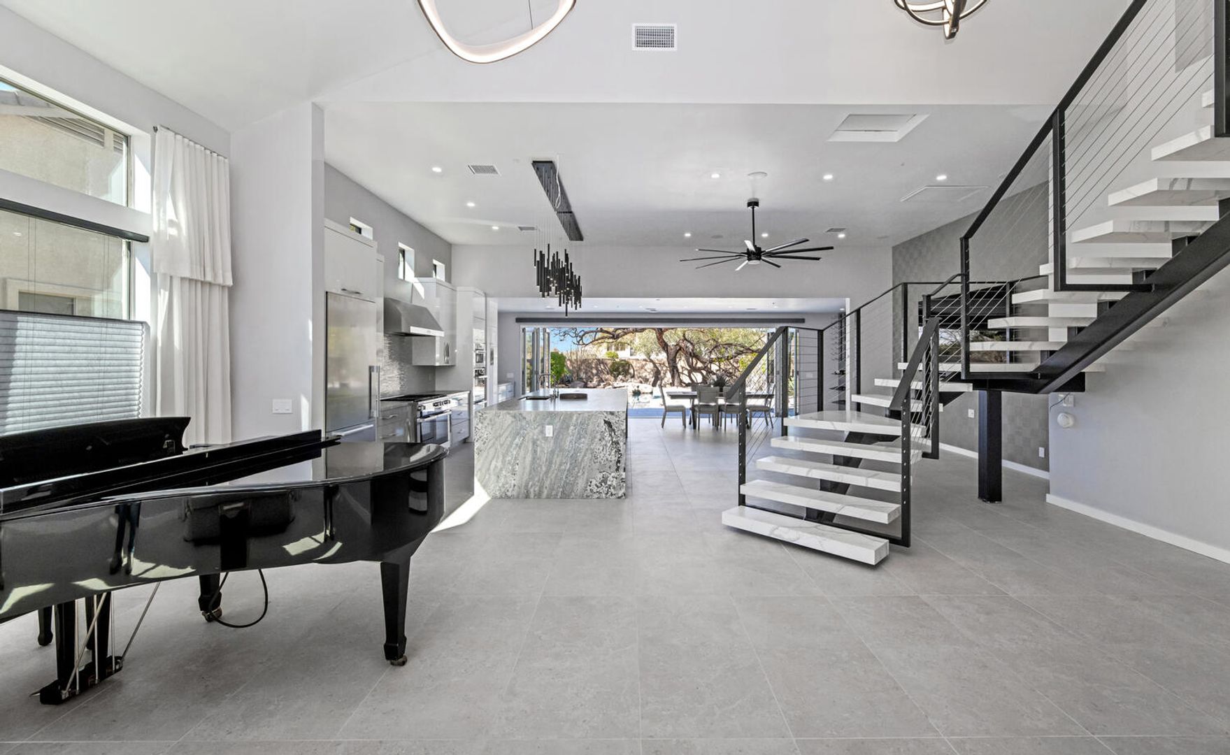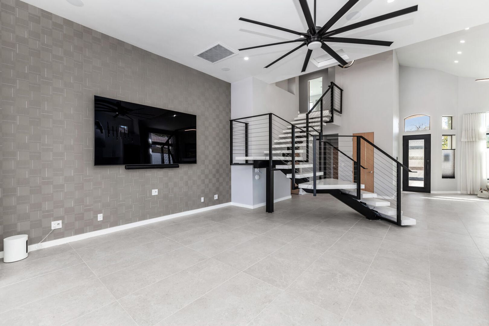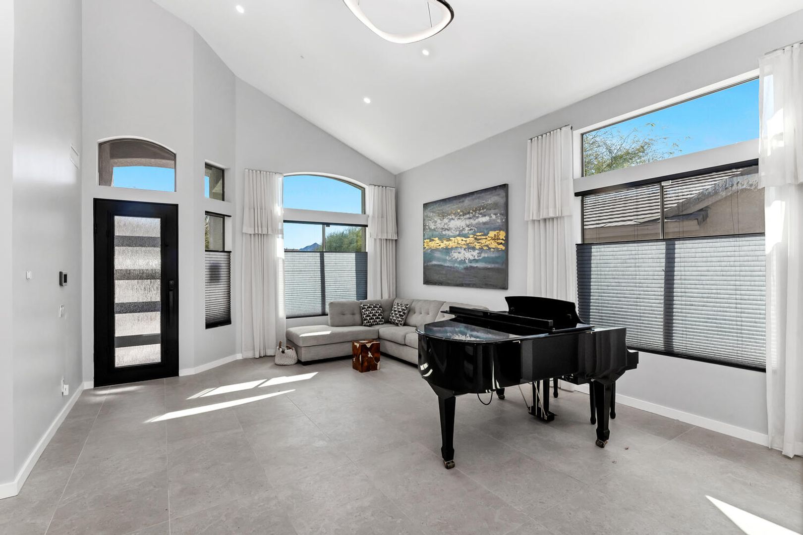 Nestled in the coveted Grayhawk community, this stunning 3 bedroom/2.5 bath residence has been meticulously upgraded to offer unparalleled luxury and eco-conscious living! Step inside to discover a freshly updated interior, boasting chic two-tone paint, plush new carpeting, and all-new tinted, eco-friendly windows that lower heating and cooling costs. Soaring 20-foot ceilings create an airy ambiance, complemented by a striking accented fireplace and a state-of-the-art custom sound system with five zones, including a 100-inch TV in the expansive living area! The entire home features new drywall with blown-in insulation for enhanced energy efficiency, paired with a freshly painted interior and exterior.The gourmet kitchen dazzles with all-new Miele Italian-made appliances, upgraded...