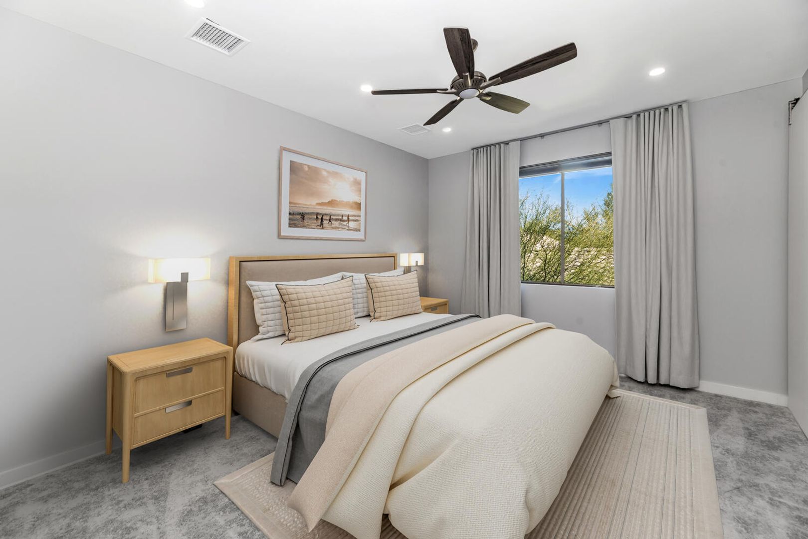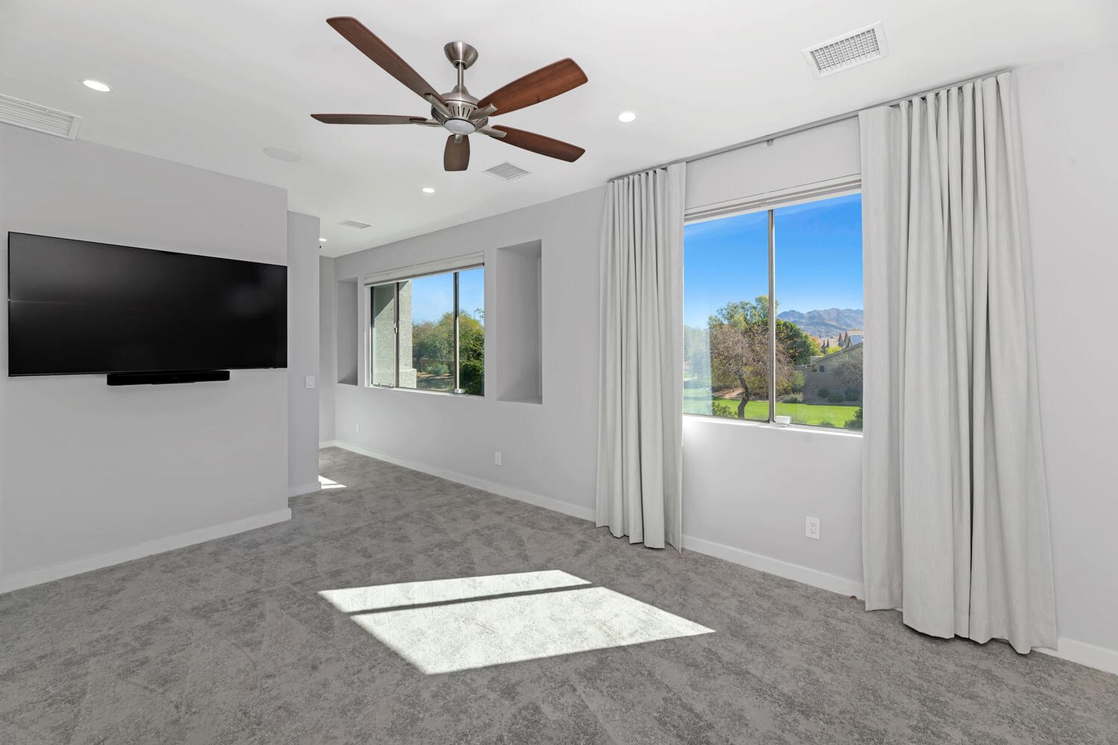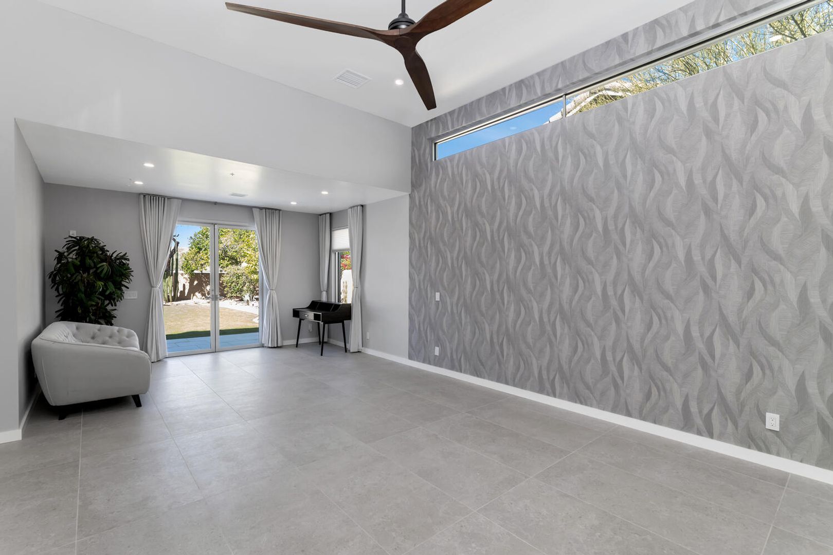Nestled in the coveted Grayhawk community, this stunning 3 bedroom/2.5 bath residence has been meticulously upgraded to offer unparalleled luxury and eco-conscious living! Step inside to discover a freshly updated interior, boasting chic two-tone paint, plush new carpeting, and all-new tinted, eco-friendly windows that lower heating and cooling costs. Soaring 20-foot ceilings create an airy ambiance, complemented by a striking accented fireplace and a state-of-the-art custom sound system with five zones, including a 100-inch TV in the expansive living area! The entire home features new drywall with blown-in insulation for enhanced energy efficiency, paired with a freshly painted interior and exterior.The gourmet kitchen dazzles with all-new Miele Italian-made appliances, upgraded...