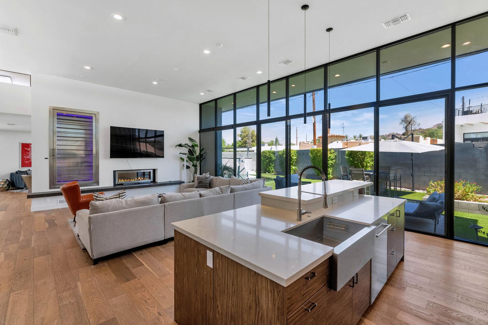 THIS IS A FURNISHED RENTAL THAT IS AVAILABLE SEASONALLY, LONG TERM PRICING, PLEASE CALL FOR BLENDED RATE!!! (Jan - Mar $16,995) (Apr, Oct - Dec $12,495) (May - Sept $9,995)!! WELCOME HOME to this one-of-a-kind STUNNING contemporary home in Arcadia! This upscale home has all of the luxurious upgrades you are looking for. Open floor plan with plenty of natural light and beautiful white oak flooring throughout the main living areas. Entertainment room upon entry accents unique art pieces that convey with the home and floor to ceiling windows with views to the resort-like backyard. The spacious living room features a double-sided fireplace and monumental wine fridge perfect for displaying your wine collection. Gourmet chef's kitchen is a dream with top of the line upgrades including Italian marble countertops, stainless steel appliances, juicer, professional German meat slicer and more! The master suite is located in its own wing of the home and offers two walks in closets, and an eon suite with heated bathroom tiles, a smart toilet with built in bidet, dual vanity and soaking tub with separate shower. Unwind in your own steam room and vogue inspired closet. The resort-like backyard accents a gorgeous infinity pool with waterfall and endless views of Camelback Mountain which is perfect for entertaining guests. Walking distance from shopping, dining and entertainment. You won't want to miss this dream home in Arcadia.