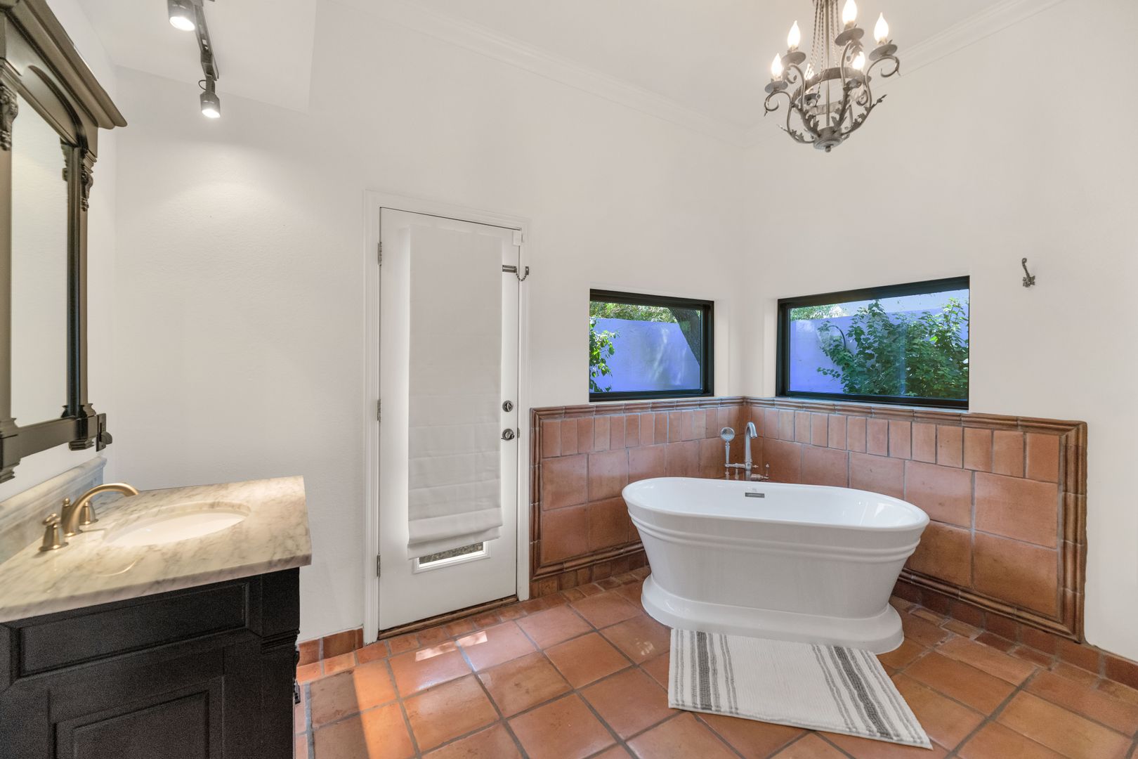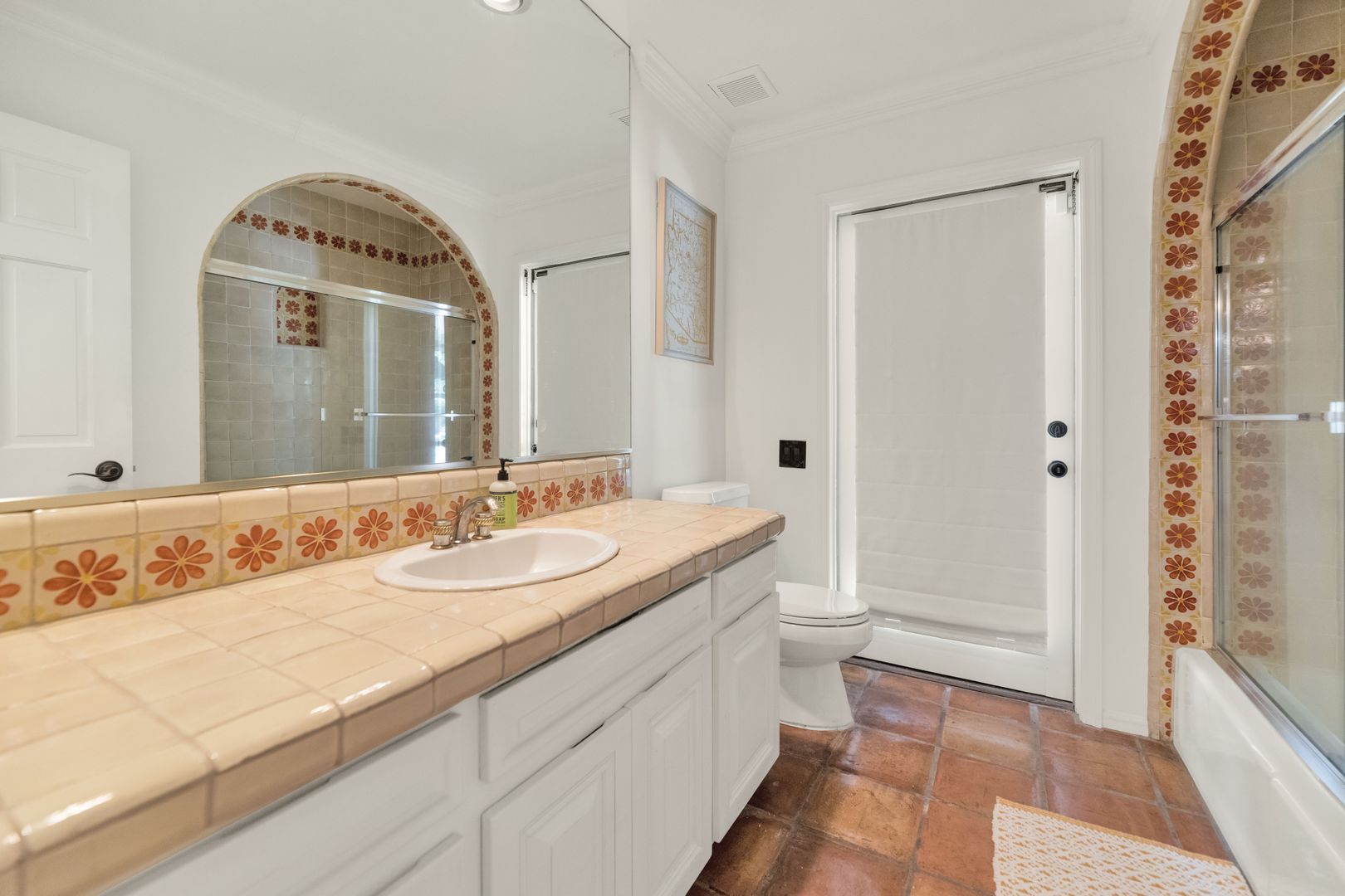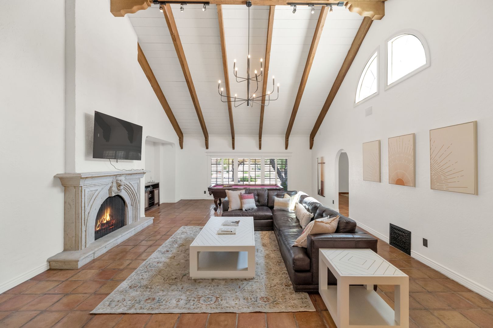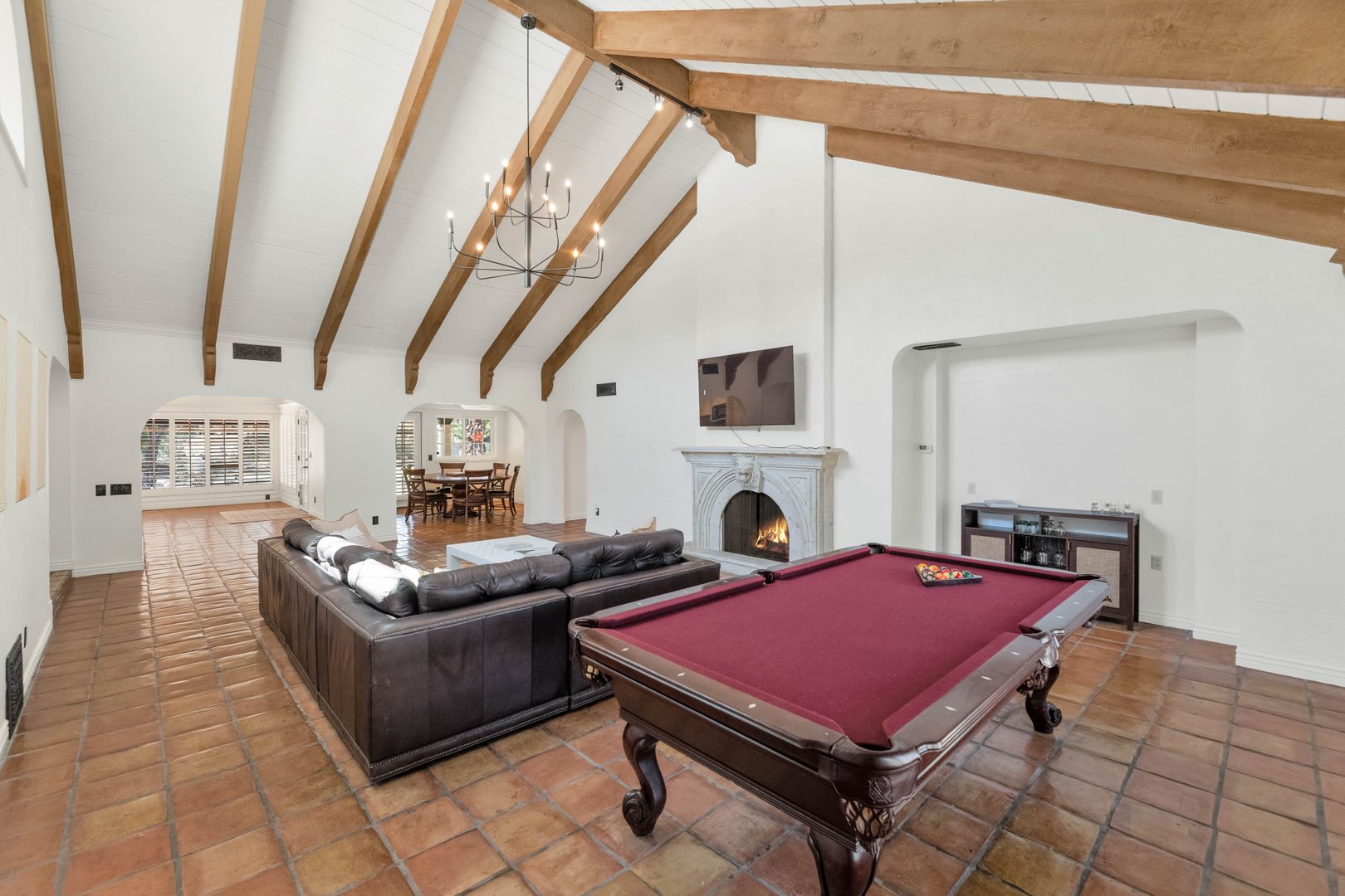 Tucked away in the prestigious Camelback Country Club Estates, this stunning residence is a sanctuary of elegance, enveloped by lush landscaping and mature trees that ensure ultimate privacy and serenity. The expansive layout effortlessly balances relaxation and entertainment, featuring a sparkling pool and a charming guest house. Step inside to a harmonious blend of timeless charm, with soaring ceilings, authentic Saltillo tile floors, and an abundance of natural light. The tranquil Master Suite, complete with a cozy adobe fireplace and private patio, offers a perfect retreat. The chef's kitchen is a culinary dream, equipped with top-tier appliances and breathtaking views of the lush backyard. Outdoors, a pristine pool and versatile sports court create a true oasis for leisure and recreation. This home embodies luxury living, seamlessly blending classic architecture with exceptional amenities.