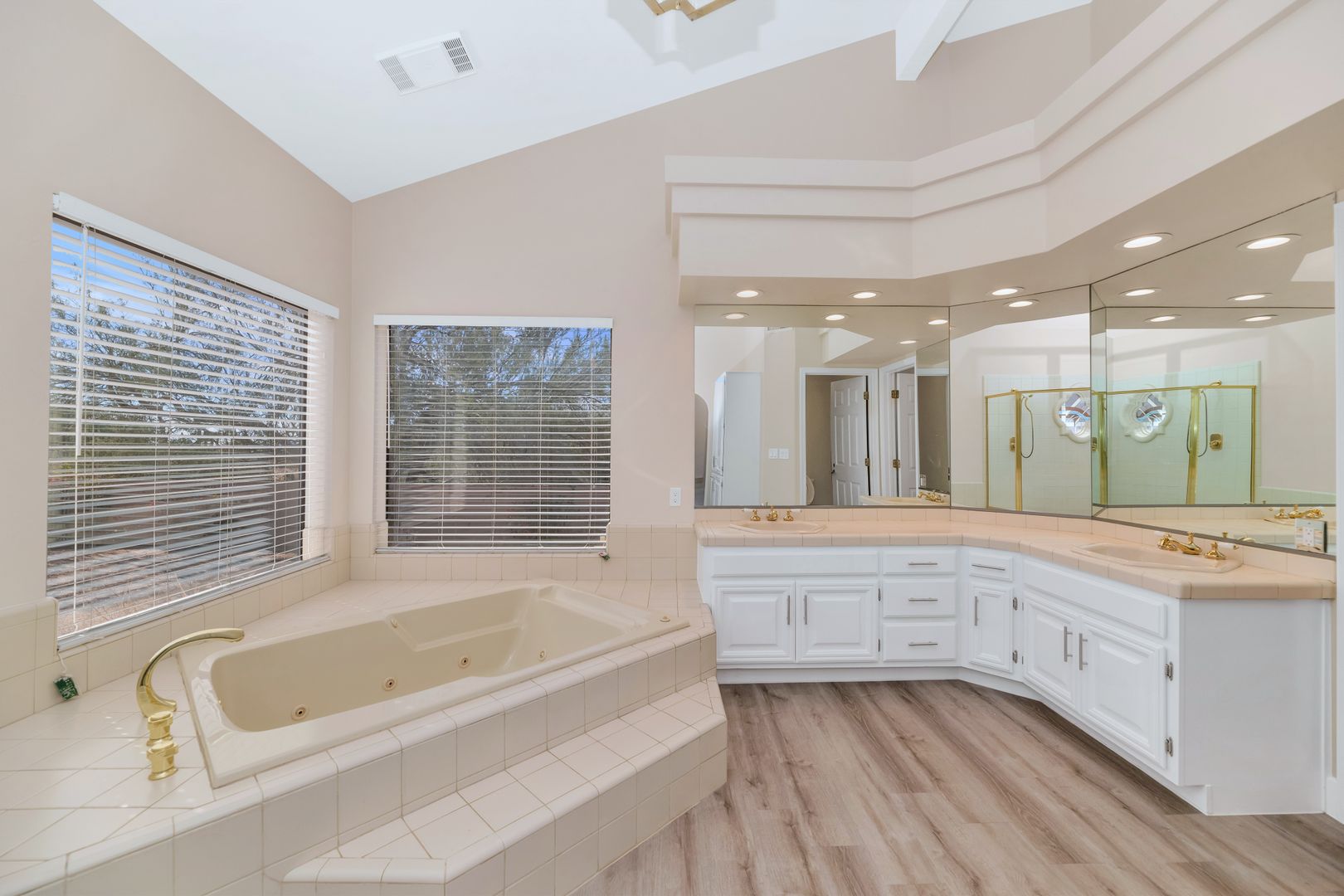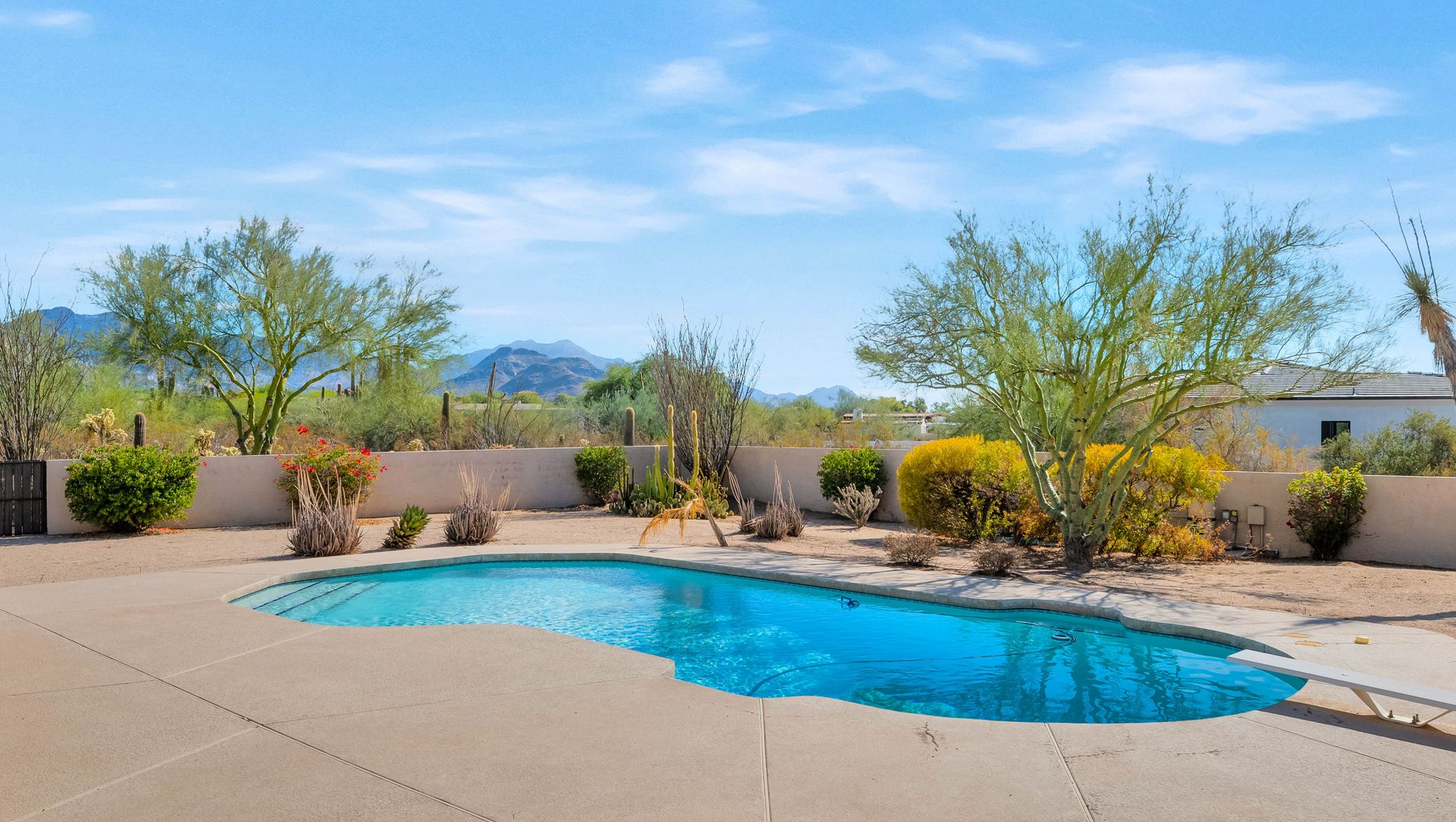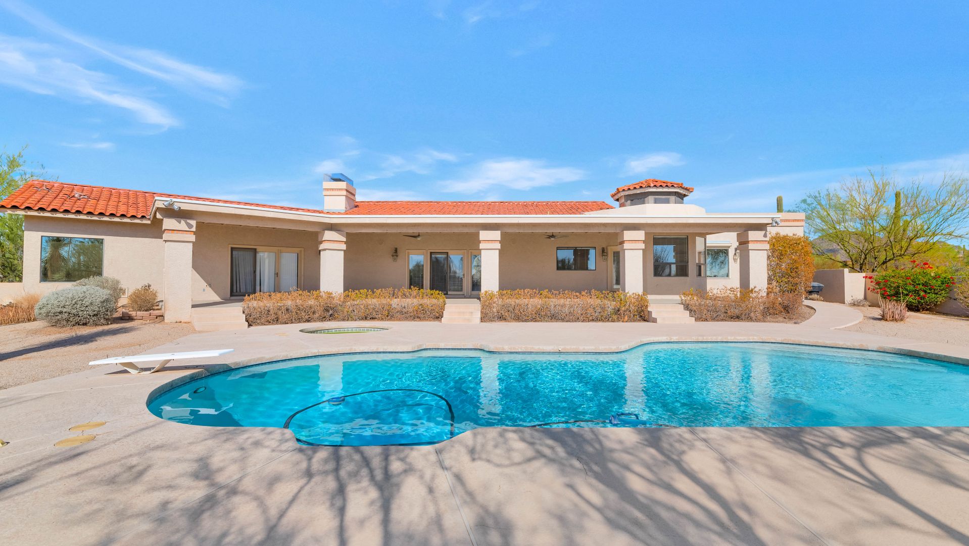 Discover this stunning custom home in the exclusive gated community of Pinnacle Paradise. Nestled on a spacious acre-plus lot, this residence offers breathtaking scenic views and an abundance of natural light through expansive windows, creating a bright and airy ambiance. The home features three oversized bedrooms and three full bathrooms, perfect for luxurious living. Unwind in your private pool and spa, surrounded by a serene desert oasis, with pool and landscaping services included in the rent. Cozy up by one of two fireplaces, located in the elegant living room and the inviting master suite. An oversized three-car garage with ample storage provides plenty of space for vehicles and recreational gear. Don't miss the opportunity to call this exquisite home yours!
