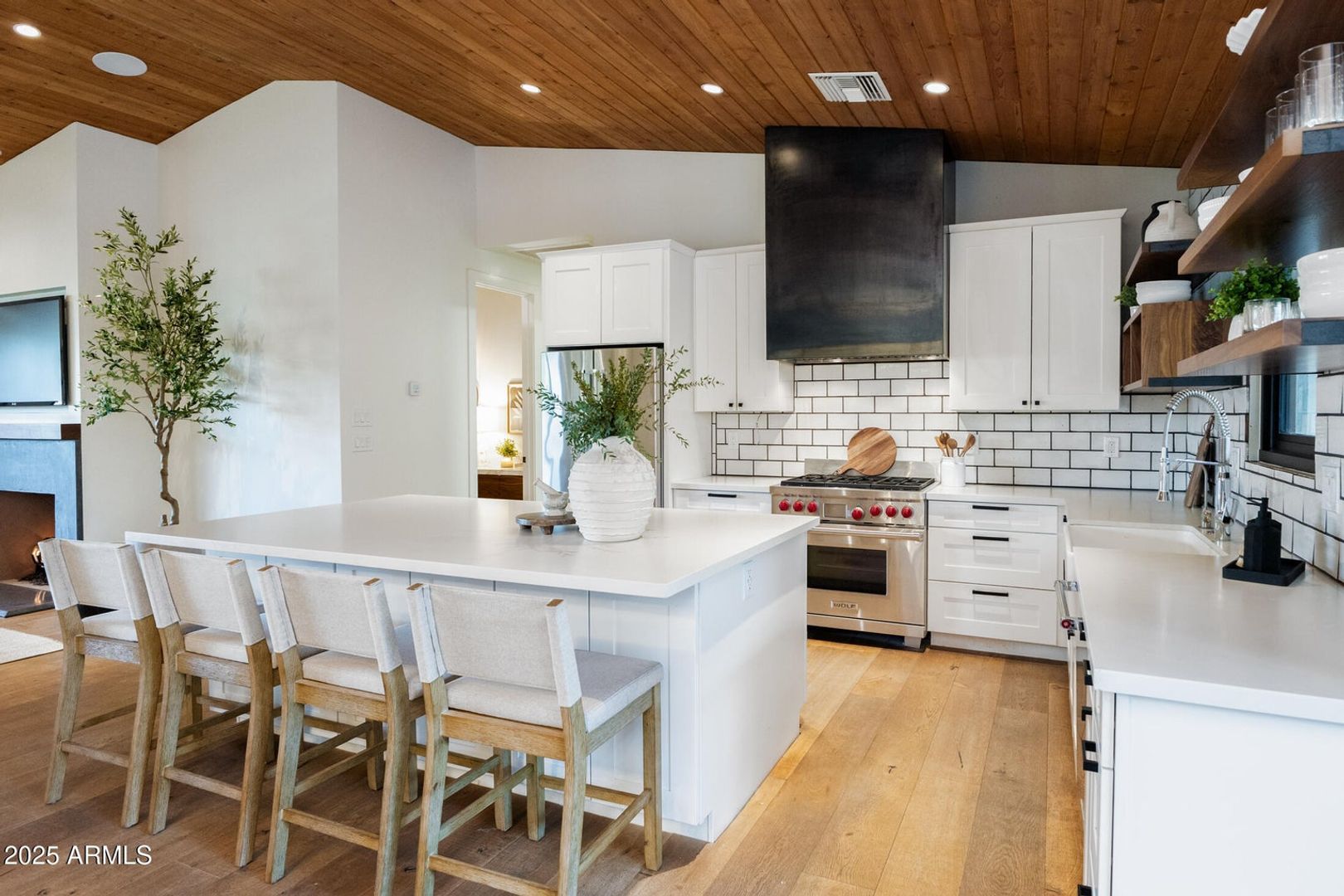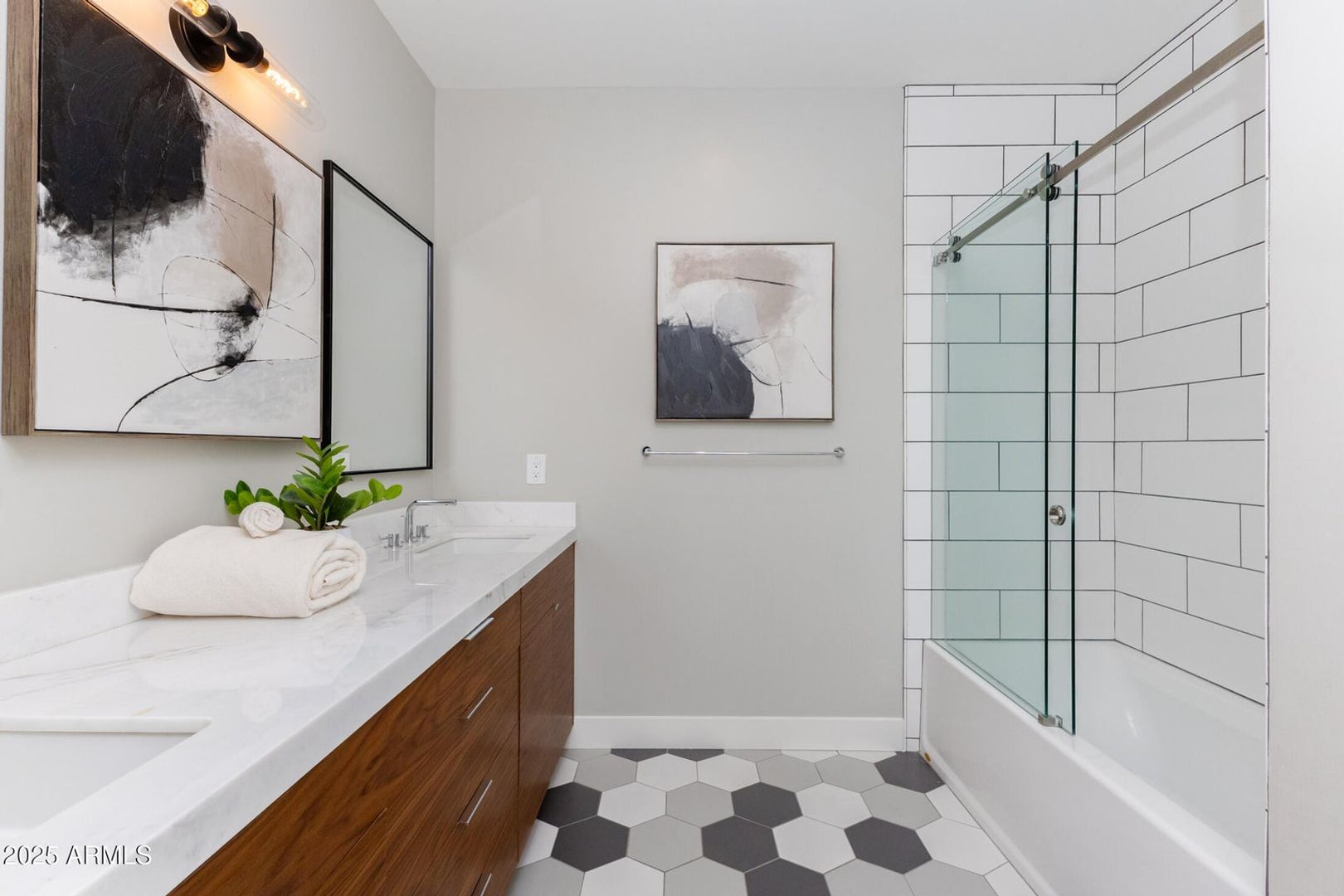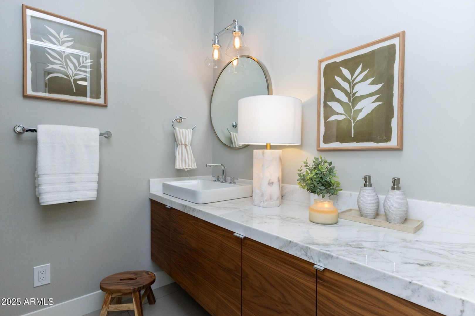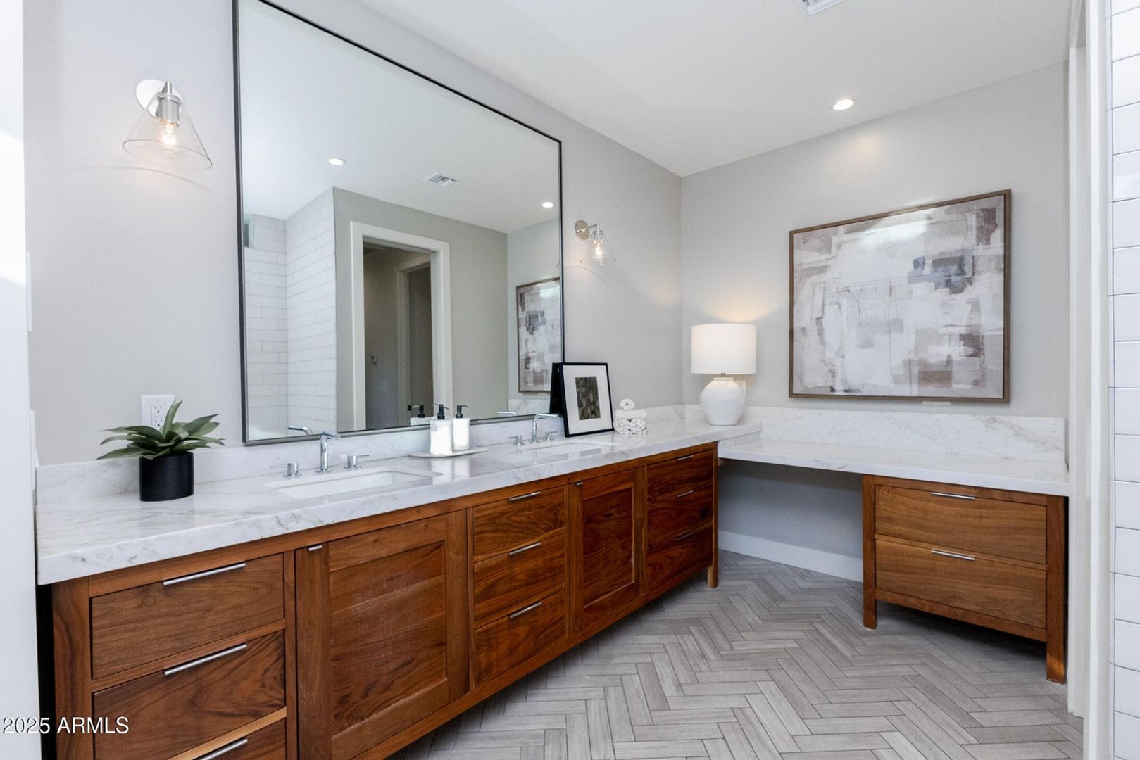 Nestled in the vibrant Camelback Corridor, this stunning 2,855 square-foot custom home, built in 2015, offers unparalleled access to the Valley's finest dining, shopping, and outdoor adventures. This four-bedroom, three-bathroom residence, complete with a dedicated gym and separate office/den, blends modern elegance with functional design. Step inside to discover an open-concept layout with soaring rough-sawn tongue-and-groove ceilings, wide-plank oak floors, and a cozy gas fireplace, creating an inviting ambiance perfect for both intimate gatherings and lively entertaining. The gourmet kitchen, a chef's dream, boasts custom cabinetry, a premium Wolf gas range, and a spacious island that effortlessly connects to the living area, ideal for seamless modern living. The master suite is a serene retreat, featuring a luxurious en-suite bathroom with a soaking tub, walk-in shower, dual vanities, and custom solid walnut cabinetry paired with premium Grohe fixtures for a touch of timeless sophistication. Designed with energy efficiency in mind, the home features a sleek metal roof with foam insulation for durability and low maintenance. Outside, backyard is perfect for soaking up Arizona's sunshine or hosting memorable gatherings. This meticulously crafted home combines style, comfort, and practicality in one extraordinary package.