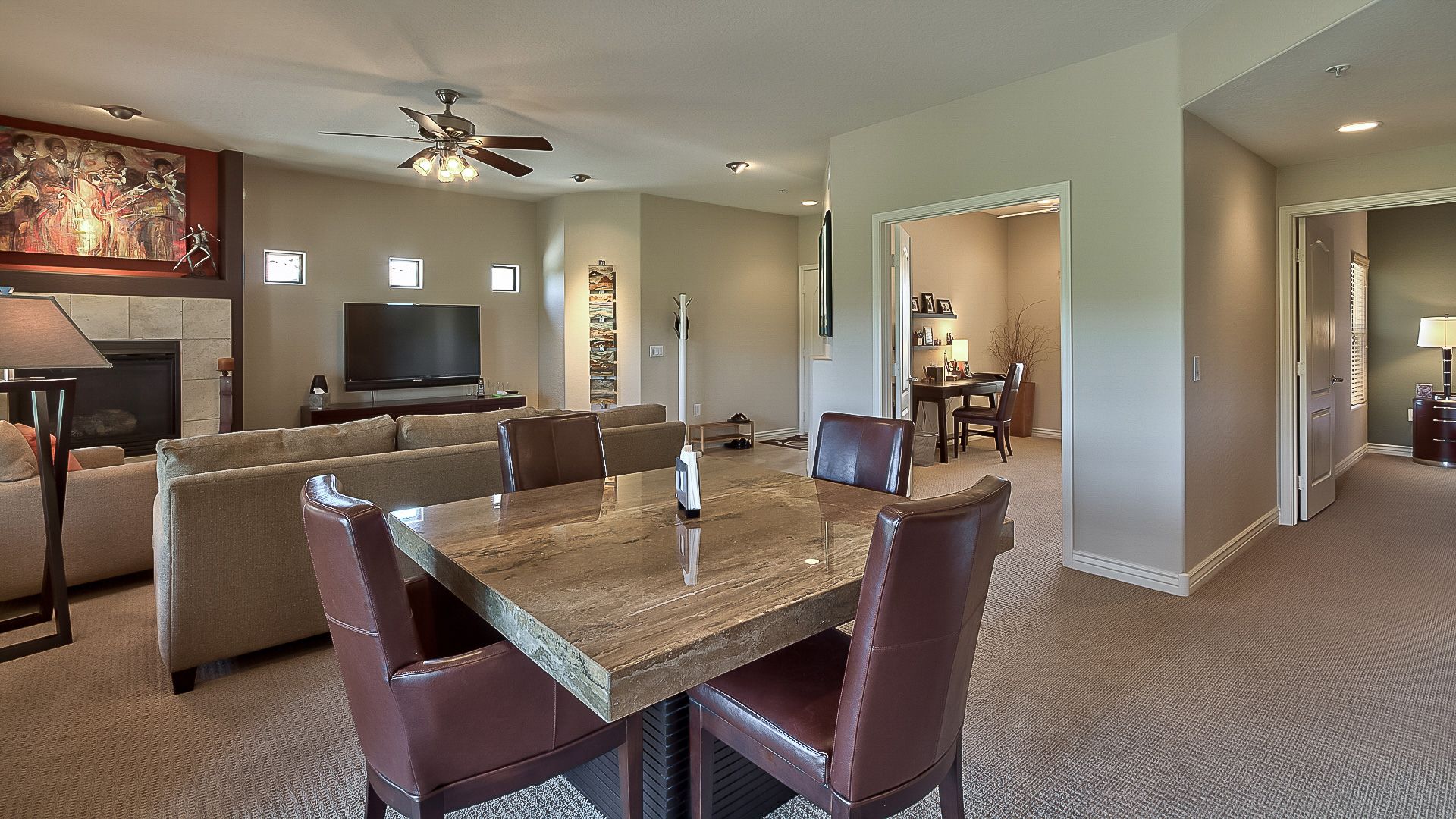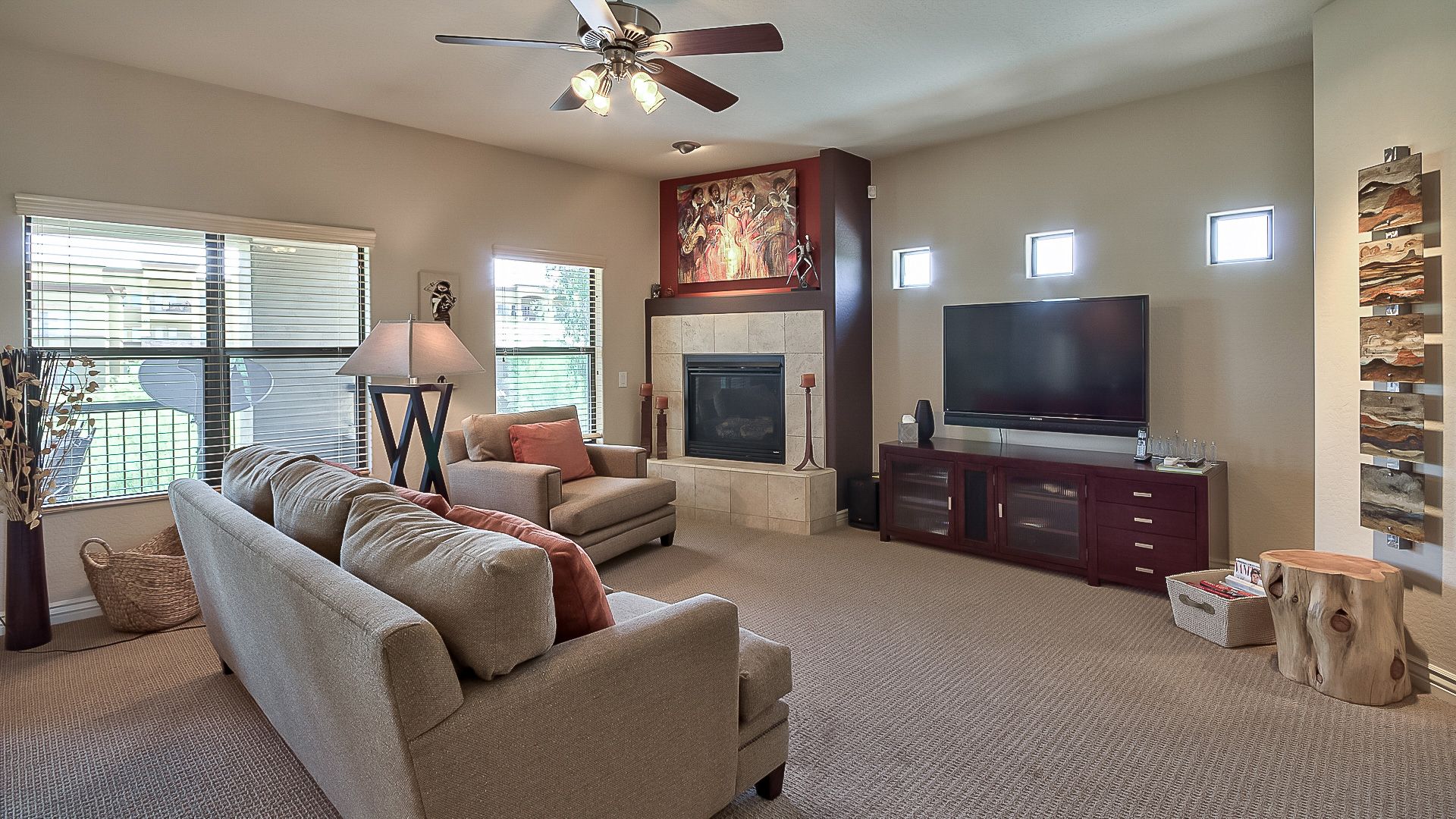Welcome to this highly upgraded 2 beds plus den, 2-bathroom, 2 car garage condo in gated Bella Monte at Desert Ridge. This second-floor condo features a large open concept great room, kitchen, and dining. The kitchen includes stainless steel appliances including gas cooking (fridge included) as well as plenty of cabinet and counter space. The great room has a gas fireplace and access to the large balcony overlooking the lush, treed landscape. This gated community features three large resort-style pools, hot tub, BBQs, and fitness center.