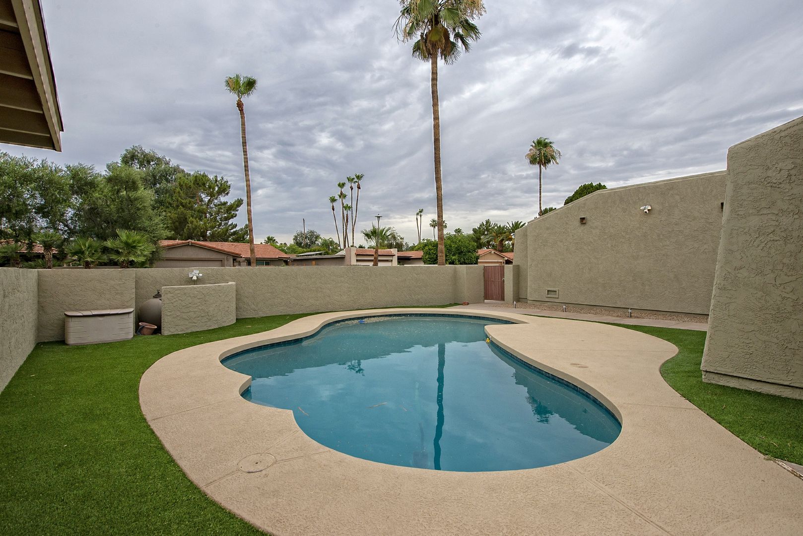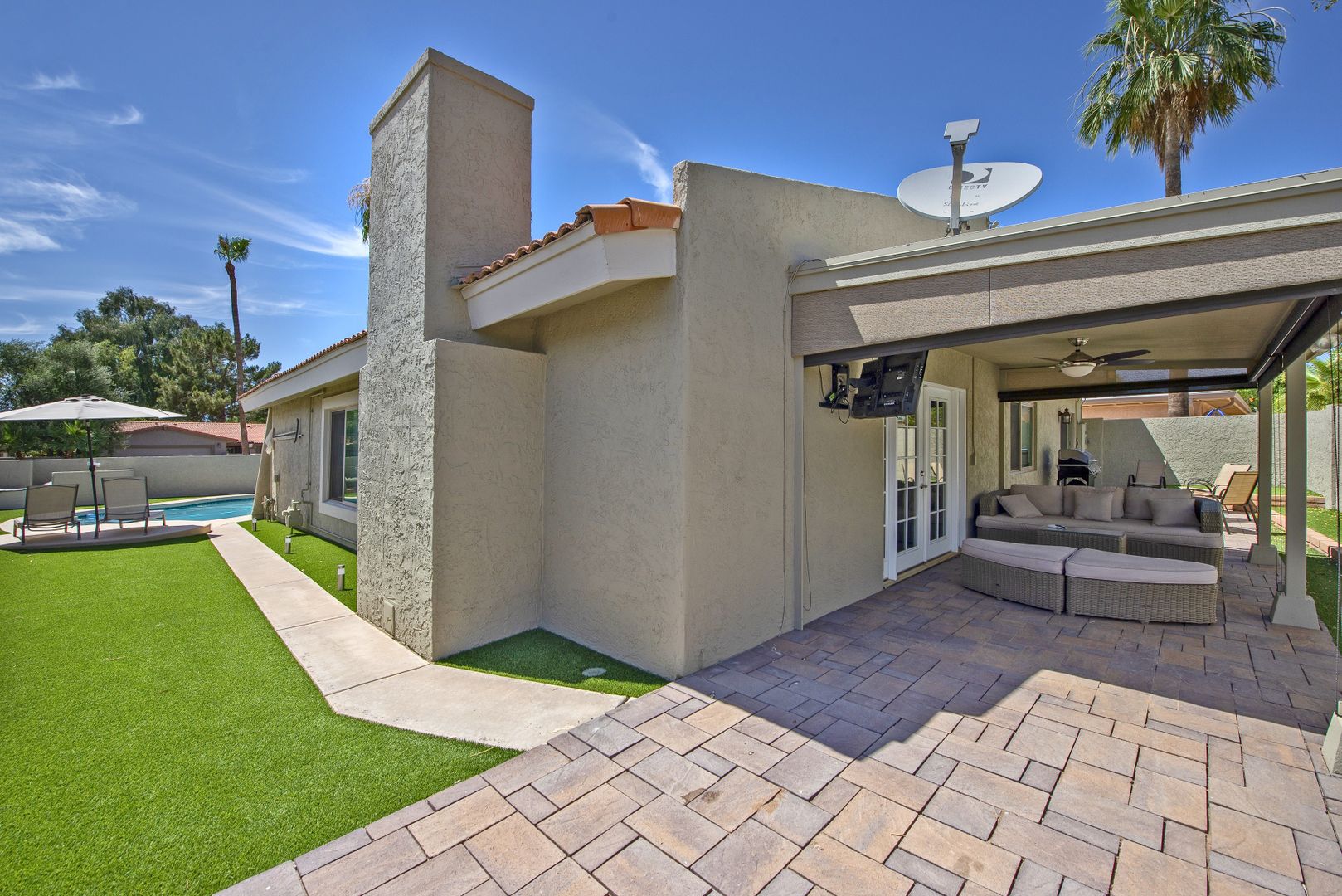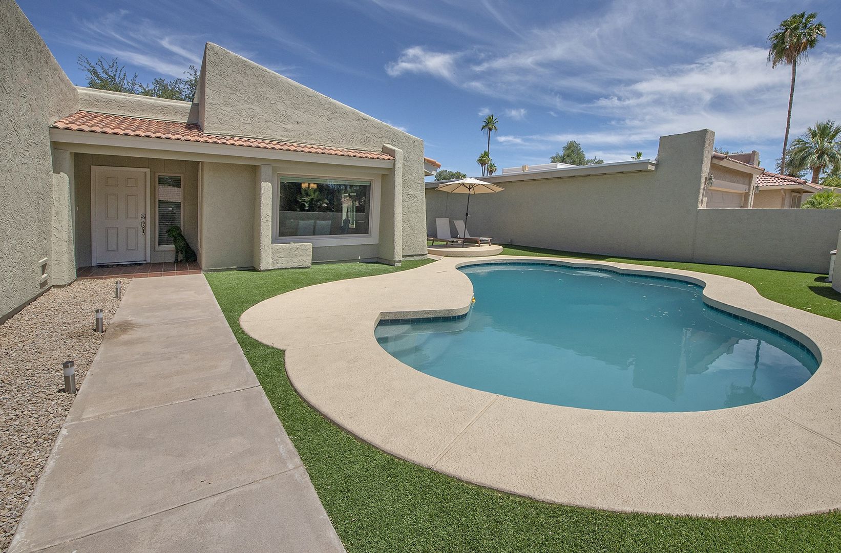 Everything is done here, all the amenities you could want, a perfect place to entertain! New hardwood floors, Newer interior paint, fantastic new lighting. Kitchen w/ new white refinished cabinets, granite, new stainless appliances including gas range, walk in pantry. All new bathrooms including cabinets, counters, wood plank floors, glass subway tile, master with new tub and shower. Bedroom closets w/ new custom storage/shelving. Pool remodel, artificial turf and a back patio to entertain furnished with a grill! Minutes from Gainey Ranch, Dbacks Spring Training Facility, Scottsdale Fashion Square and the Pavilions.