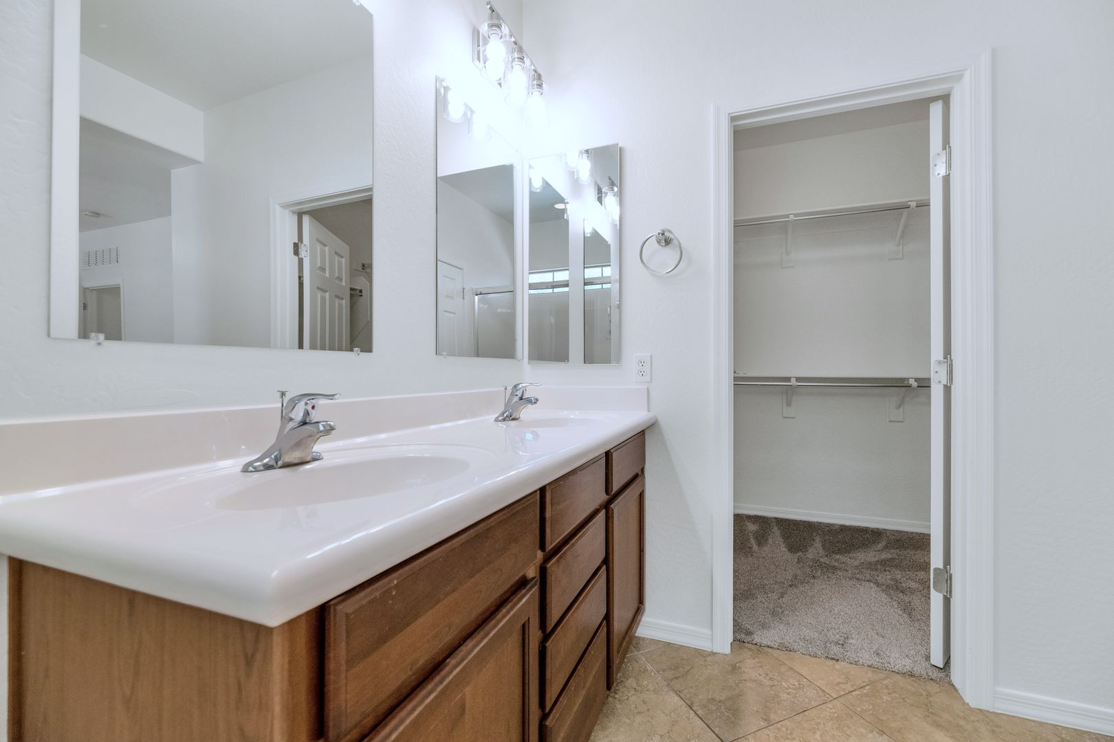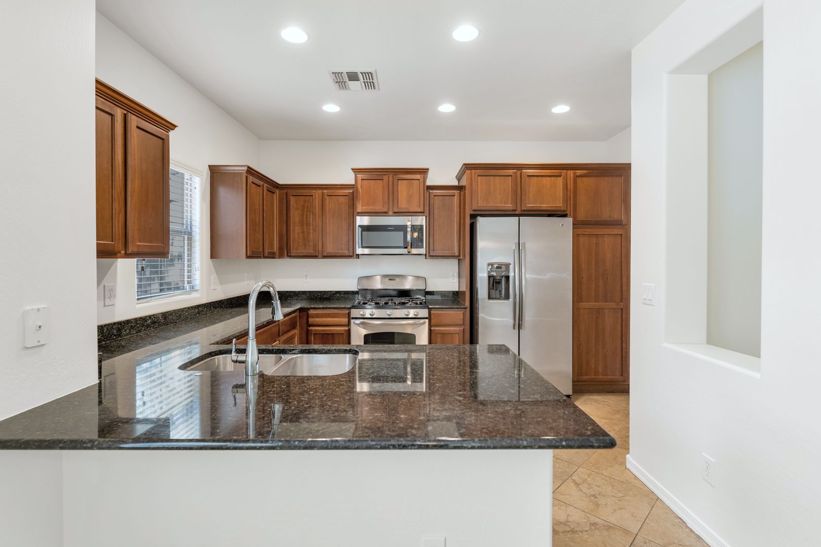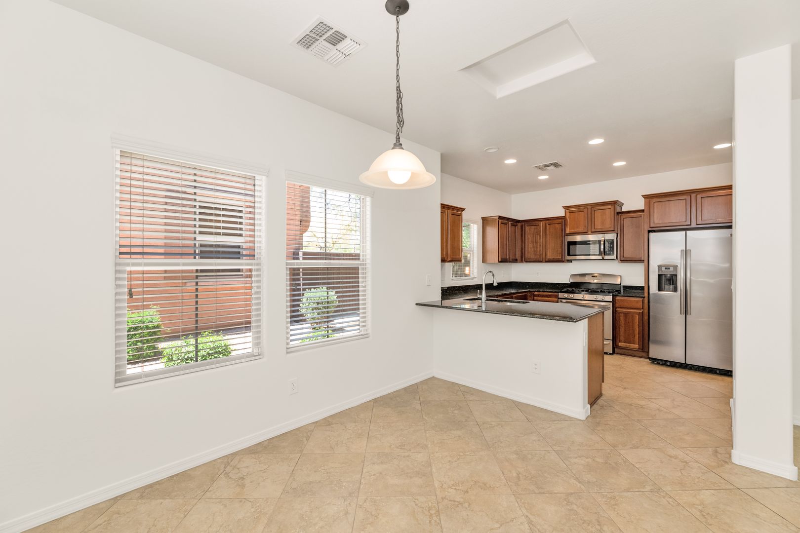 This perfect 4 bedroom townhome includes 2.5 bathrooms, 2 car garage & endless luxuries. The downstairs Master suite features a large walk in closet, spacious full bathroom w/ granite countertops & private access to patio - The comforts extend to the remaining spacious 3 guest bedrooms. There is plenty of room for relaxing and entertaining with this home that is in the sought after Desert Ridge Fireside community. Beautiful tile & carpet flooring, high ceilings, bright & open floor plan + high qualities throughout. Enter into the formal dining room & elegant living room, all open to the eat-in-chef's-kitchen includes a gas stove top, SS appliances, granite countertops, cherry wood cabinets, walk in pantry & large functional kitchen island w/ seating for 4 + Breakfast nook.