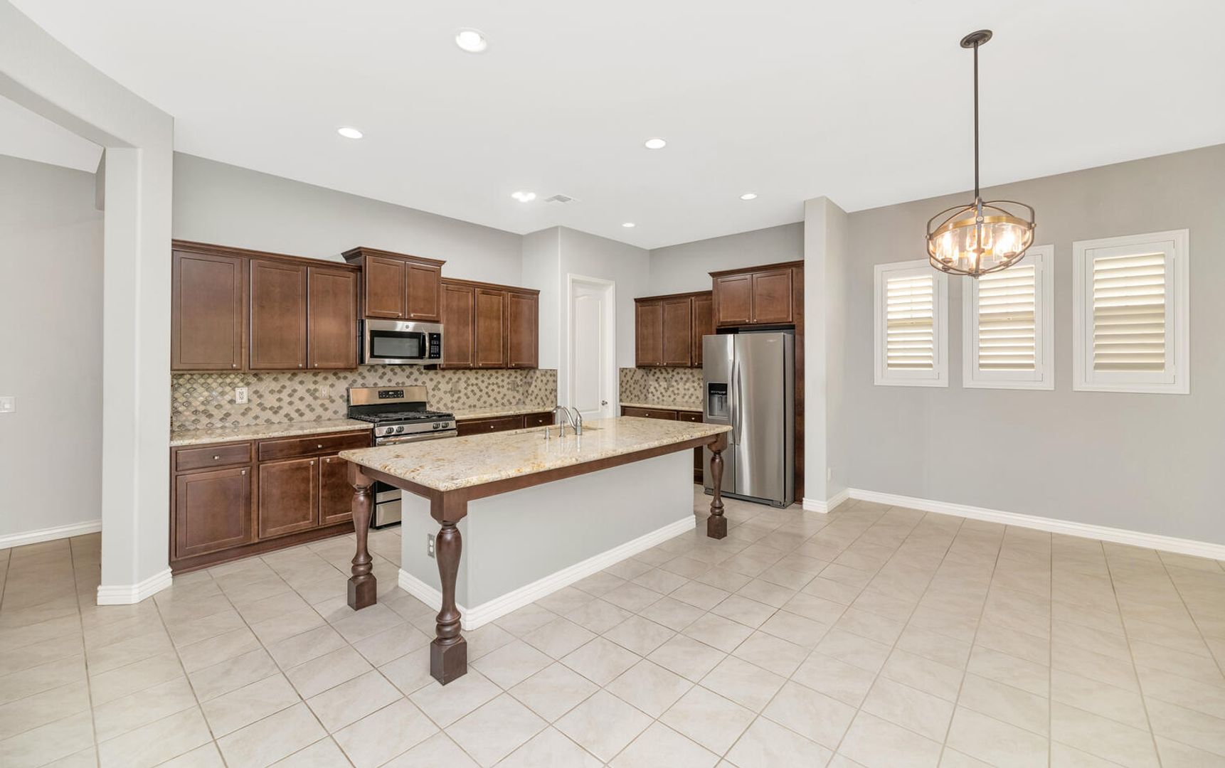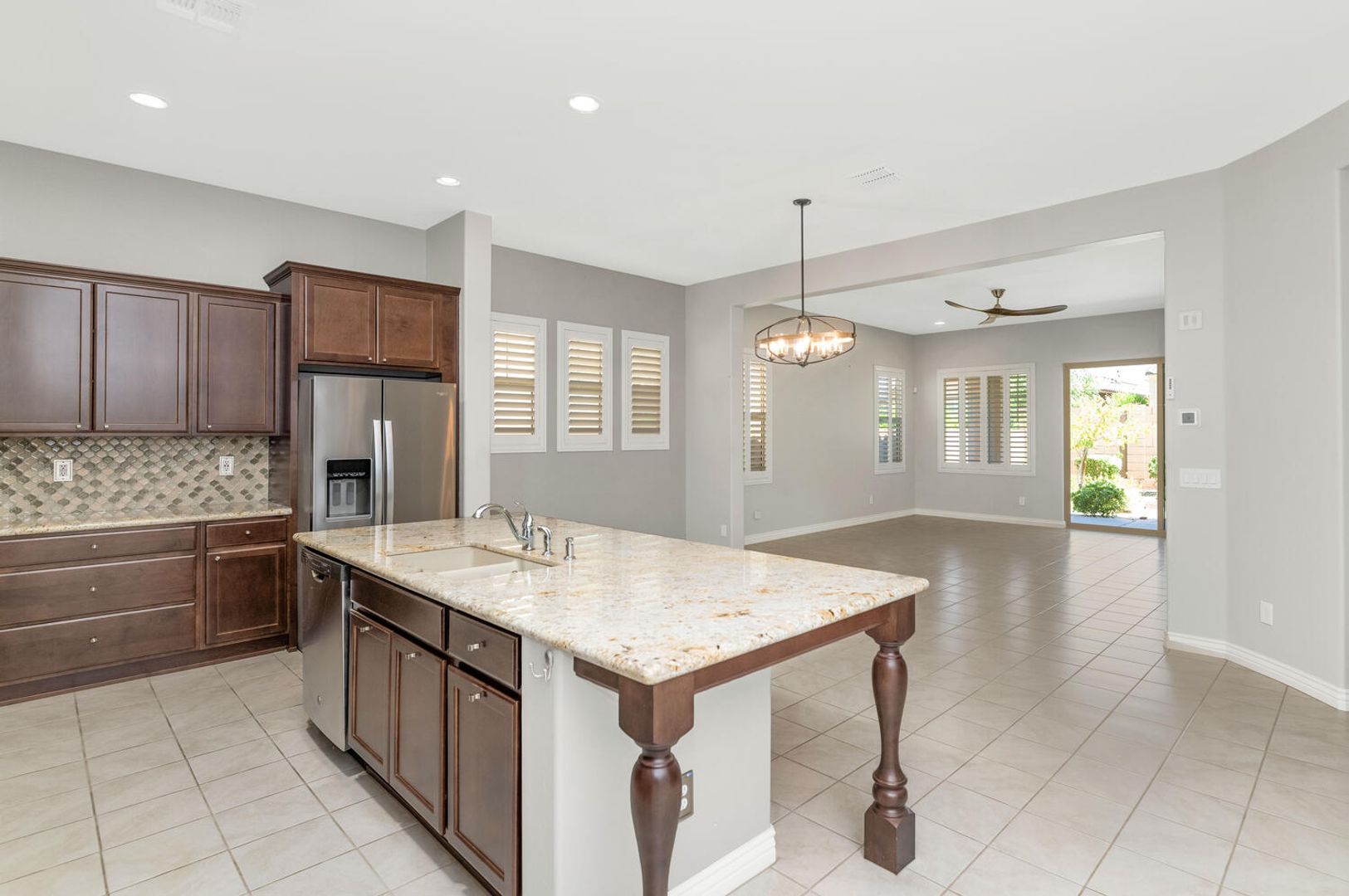 Discover an exquisite luxury rental in the heart of the vibrant Sky Crossing community. This nearly brand-new, impeccably maintained home offers 3 bedrooms plus a versatile flex space, perfect as a stylish office or elegant dining room. The modern, sophisticated finishes beautifully complement any décor, featuring a chef's kitchen with sleek granite countertops, a gas stove, and dazzling pendant lighting. The primary suite, thoughtfully separated from the secondary bedrooms, ensures ultimate privacy and tranquility. Outside, a low-maintenance backyard with desert landscaping and lush turf creates a serene retreat. Enjoy the exceptional Sky Crossing amenities, including a sparkling community pool, state-of-the-art gym, engaging activities, and scenic parks. Ideally located just 5 minutes from Desert Ridge Shopping Center, with easy access to the 101, 51, and 17 freeways, this home combines effortless elegance with unparalleled convenience.
