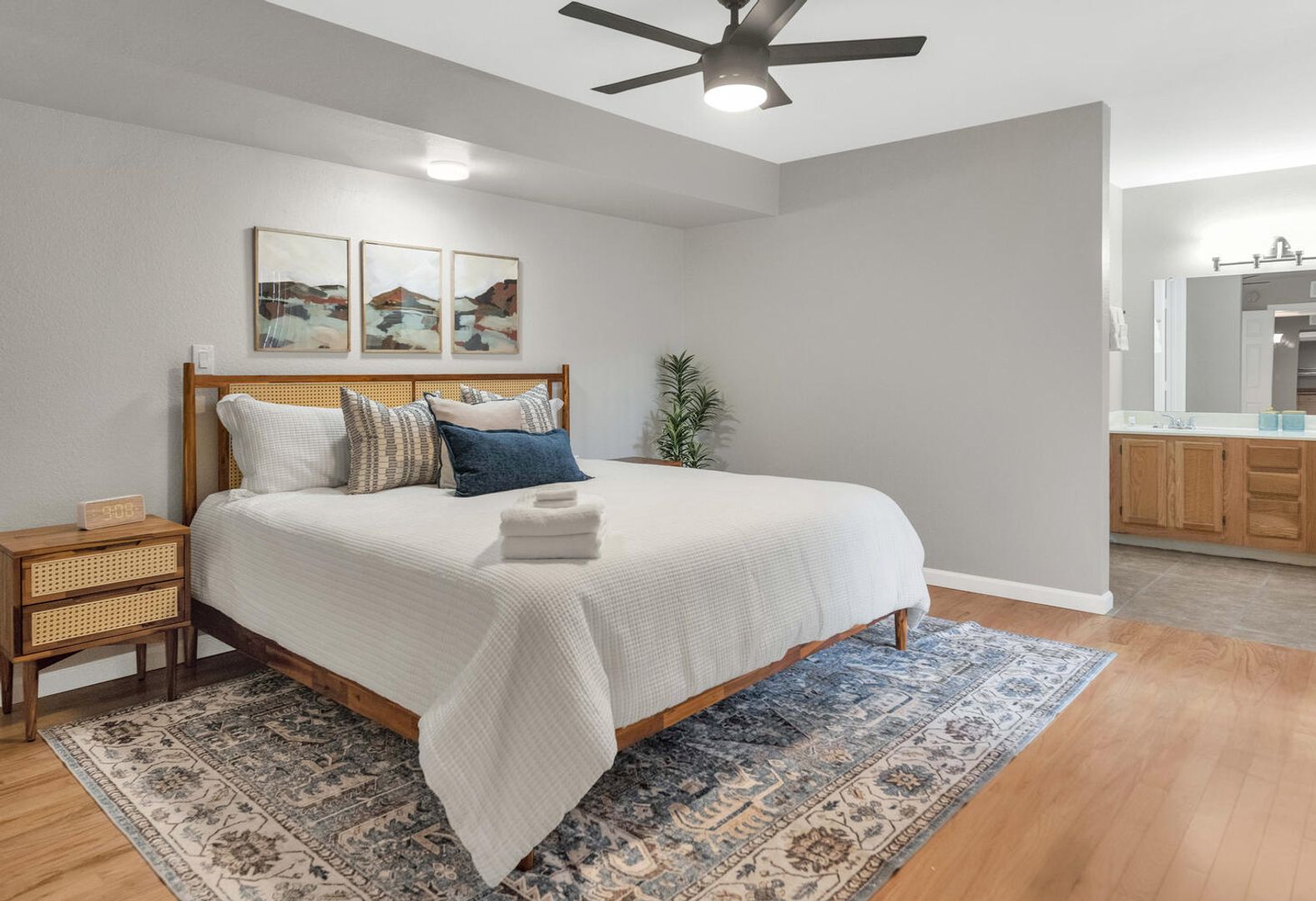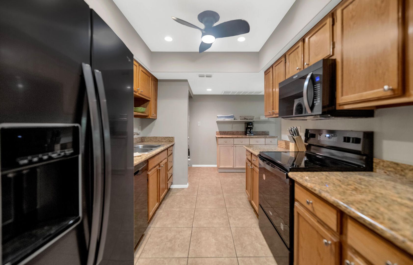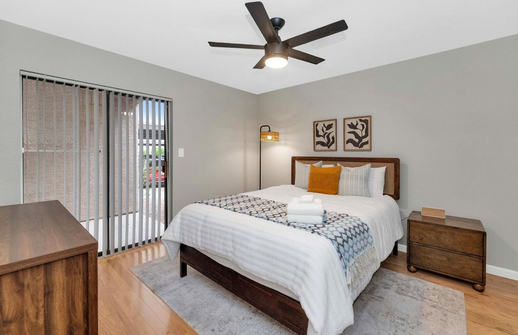 THIS IS A FURNISHED RENTAL THAT IS AVAILABLE SEASONALLY, LONG TERM PRICING, PLEASE CALL FOR BLENDED RATE!! (Jan - Mar $4,245) (Apr, Oct - Dec $2,995) (May - Sept $2,495)! Discover this stunning ground-level condo in the heart of Village Three, a vibrant McCormick Ranch community. Step inside this beautifully updated 2-bedroom, 2-bath residence and be greeted by warm oak hardwood flooring that flows seamlessly into a spacious living room, complete with recessed lighting, a cozy fireplace, and an inviting dining area. Enjoy outdoor living on one of two private covered patios, perfect for relaxation or entertaining. The expansive kitchen boasts sleek granite countertops, rich wood cabinetry, durable ceramic tile, a casual breakfast nook, and direct access to the second patio. Both generously sized bedrooms feature oak flooring, with the primary offering a large walk-in closet and a luxurious bathroom with dual sinks. Each bedroom opens to the second covered patio via large sliding glass doors, and both bathrooms showcase elegant real wood vanity cabinets. Freshly painted throughout, this home also includes a new HVAC system, modern ceiling fans, and front-load laundry appliances for added convenience. The Village Three community offers an array of resort-style amenities, including a sparkling pool, soothing hot tub, scenic walking paths through lush green spaces, and pickleball and tennis courts. The surrounding neighborhood is brimming with parks, top-tier shopping, hospitals, dining, and entertainment options. With easy access to Loop 101, the entire city is at your fingertips. Embrace the perfect blend of comfort, style, and convenience in this exceptional condo!