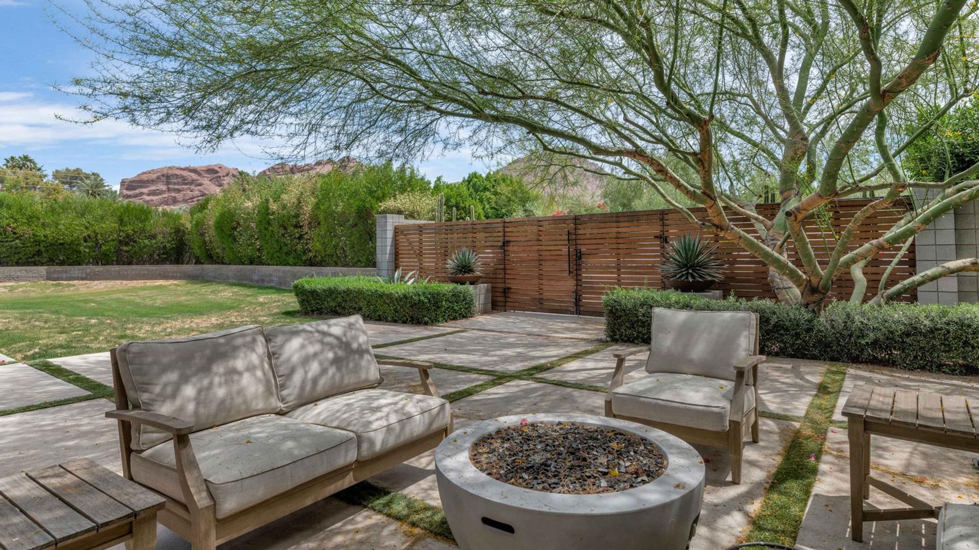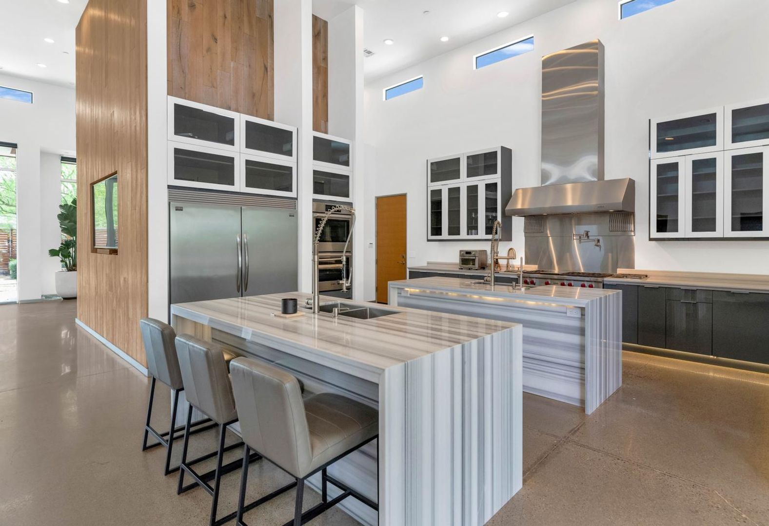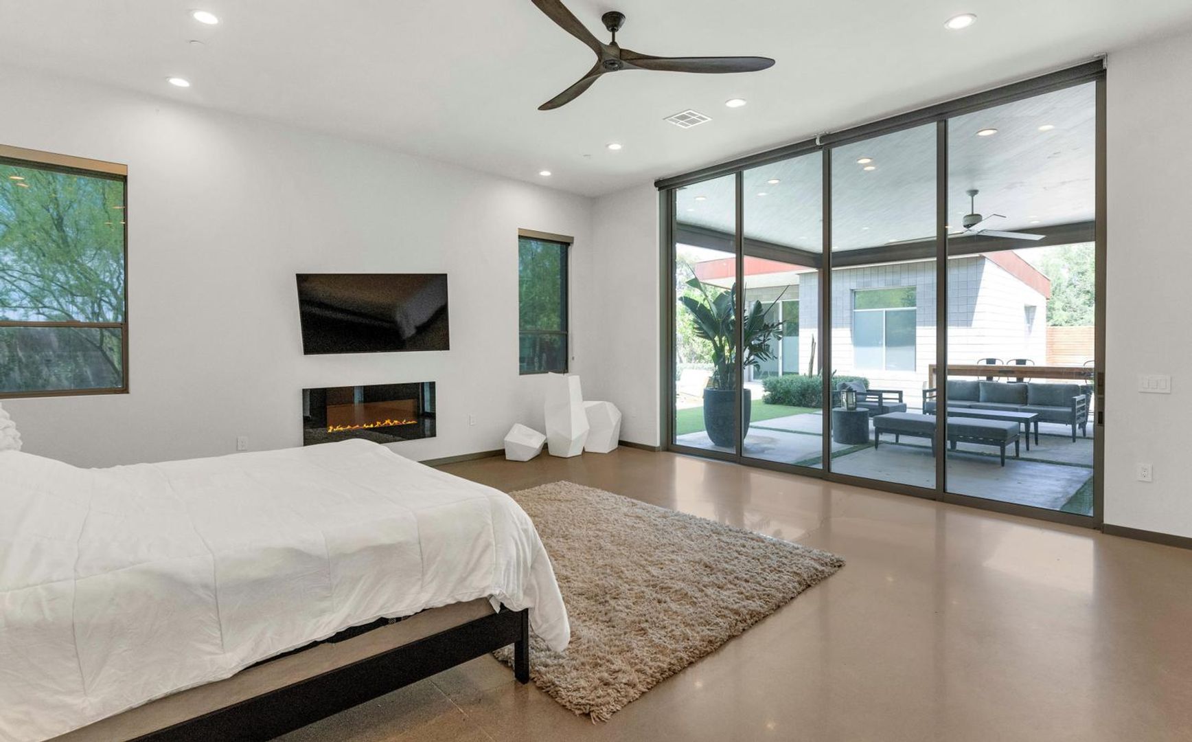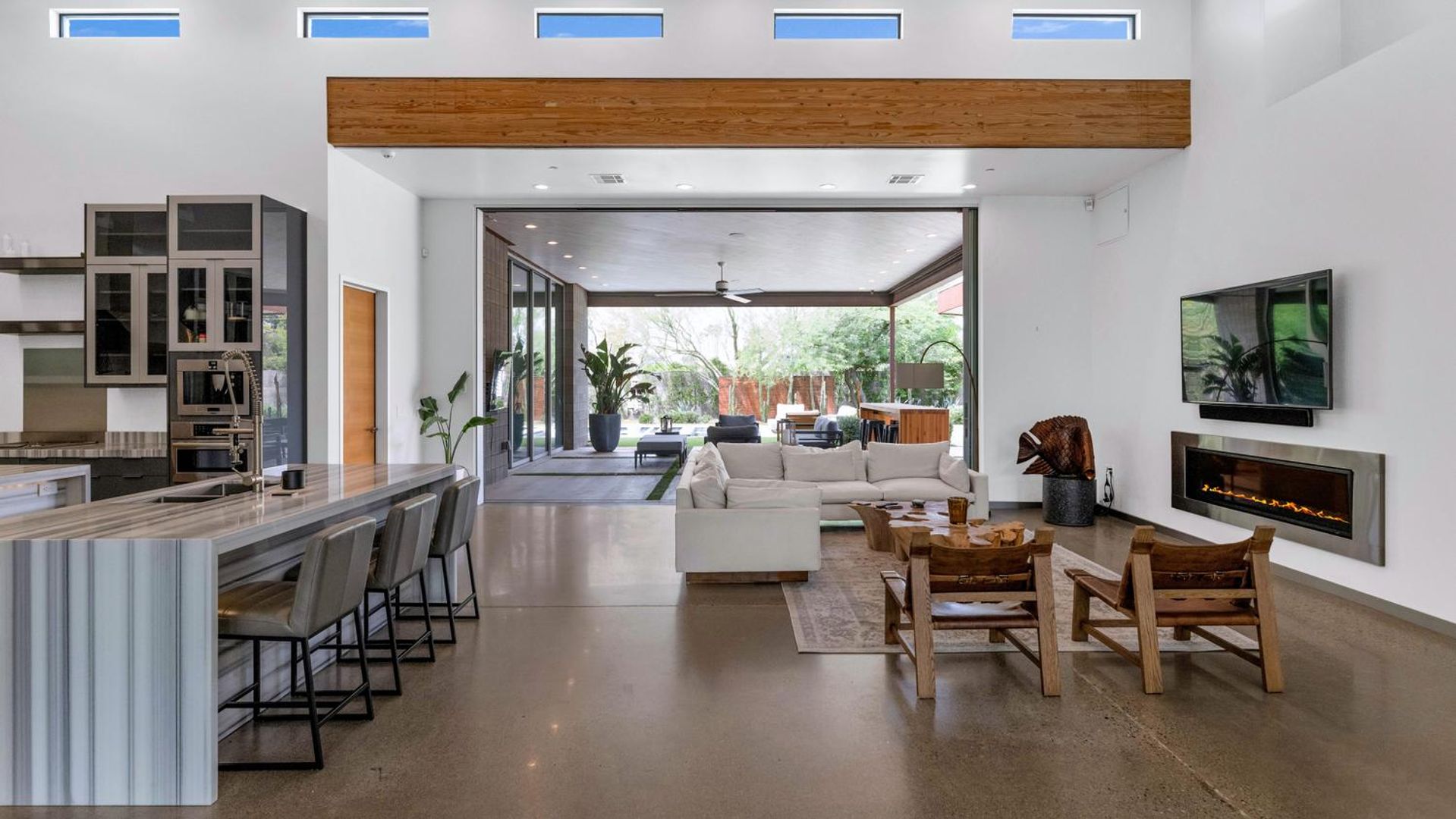 Arrive at this secure gated enclave and step into a private visitors courtyard that opens to a breathtaking oasis. The dramatic 10-foot-tall glass pivot front door welcomes you into a home defined by volume, light, and effortless sophistication. Soaring 17-foot ceilings sweep through the main living spaces, while sweeping, unobstructed views of Camelback Mountain frame nearly every window. A direct sightline from the entry draws your eye through a massive 19-foot-wide automatic Western Glass Systems pocket door to an expansive suspended covered patio, a meticulously landscaped backyard featuring a sleek linear pool and inviting firepit. A fully self-contained 676-square-foot detached guesthouse provides complete privacy for visitors without compromise. The chefs kitchen serves as the heart of the home, anchored by dual zebra marble waterfall islands and outfitted with top-tier Wolf and Bosch commercial-grade appliances. The master suite is a true private retreat, complete with a luxurious spa bathroom featuring an Eago air tub, steam shower, and generous dual closets. A completely separate guest wing includes three bedrooms, a media room, private laundry, and a secondary kitchen area ideal for guests or multigenerational living. Over $100,000 in premium audio-visual equipment integrates seamlessly with the smart home system, controllable via iPad for lighting, sound, climate, automated doors, security, and more. Car enthusiasts will appreciate the air-conditioned 4+ car garage with 17-foot ceilings and HVAC, plus a massive secure motor court with RV/boat hookup already in place plenty of room for a collection, projects, or extra vehicles. Enjoy an unbeatable location moments from The Henry, Village Racquet Club, AJs Fine Foods, Steak 44, and the Global Ambassador - all within a short walk. This residence delivers uncompromising quality, dramatic scale, enviable style, and everyday convenience at an exceptional value.