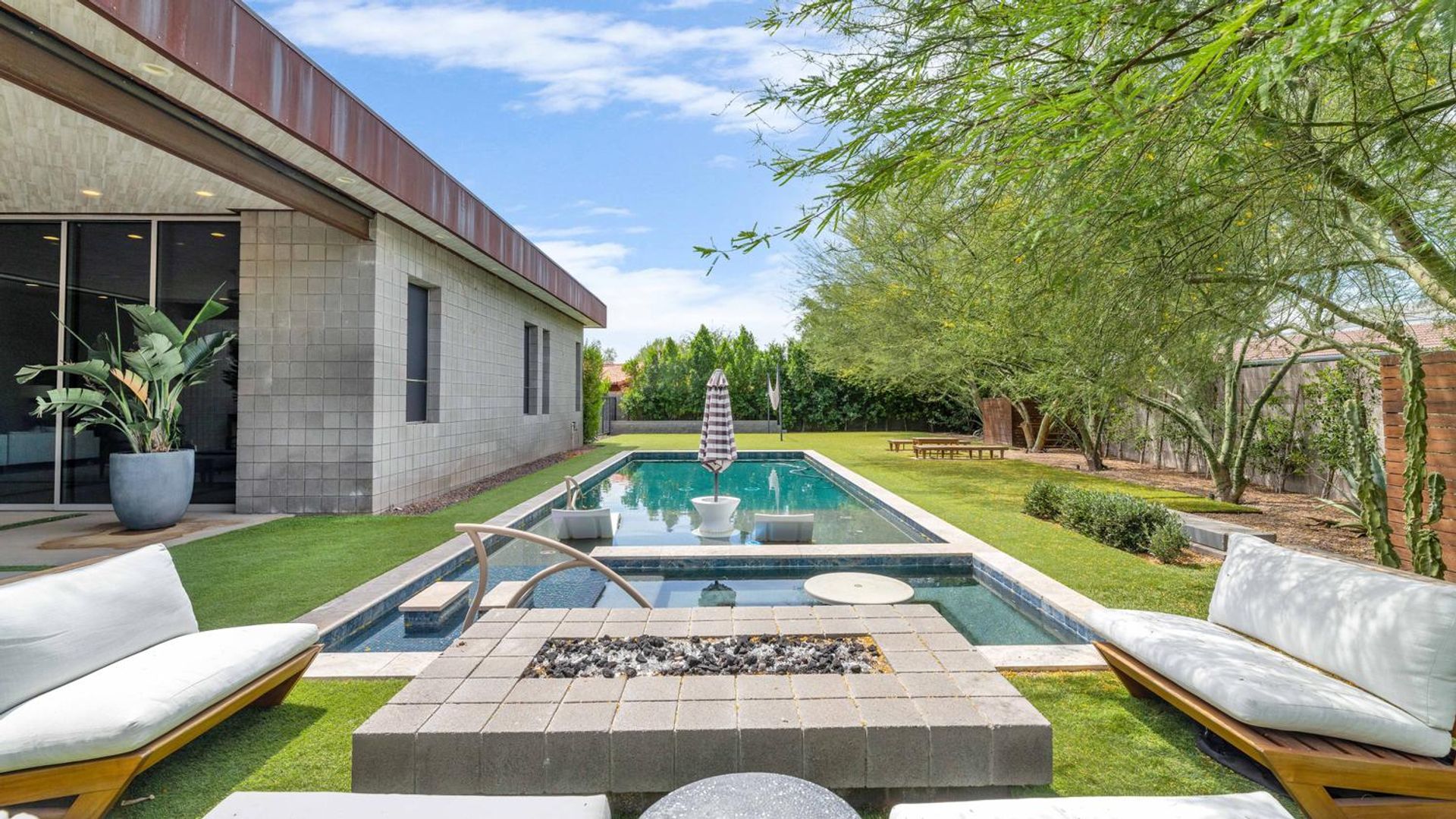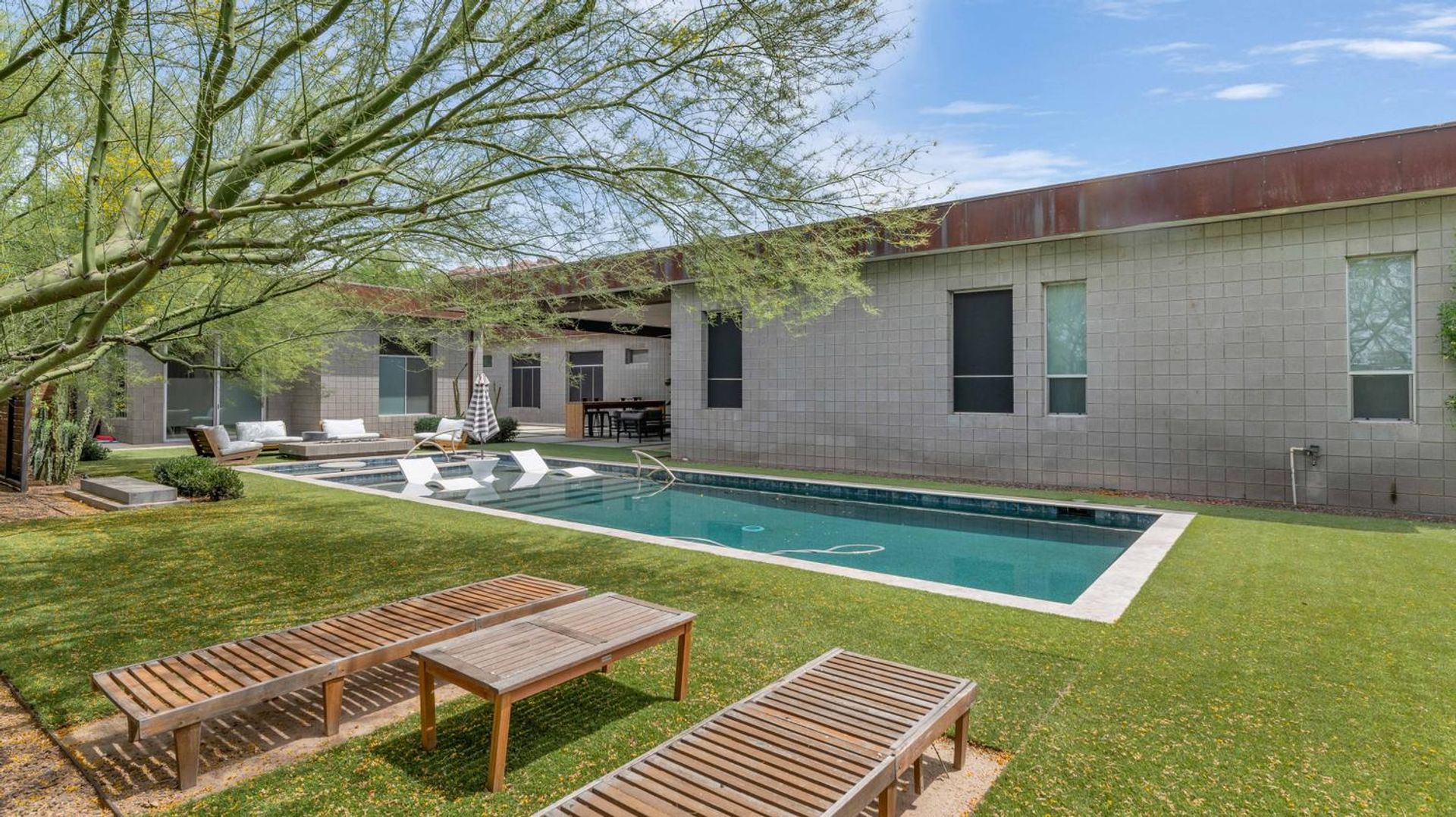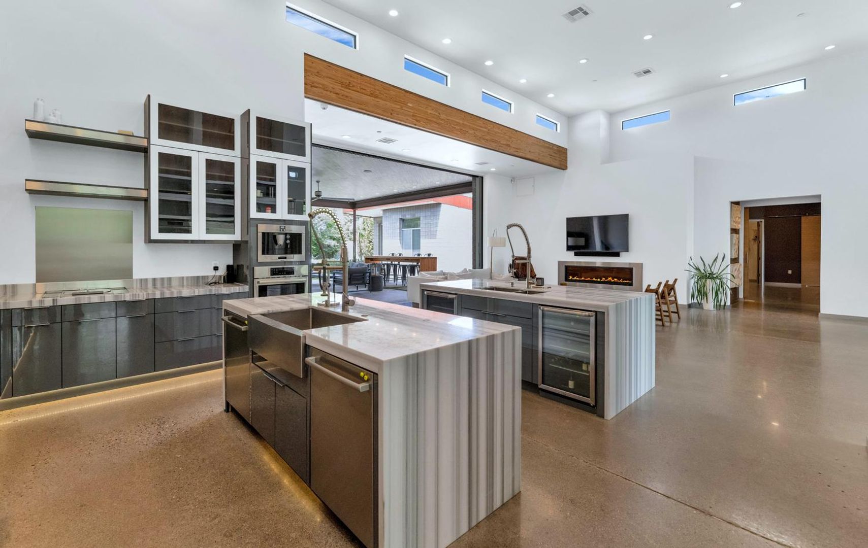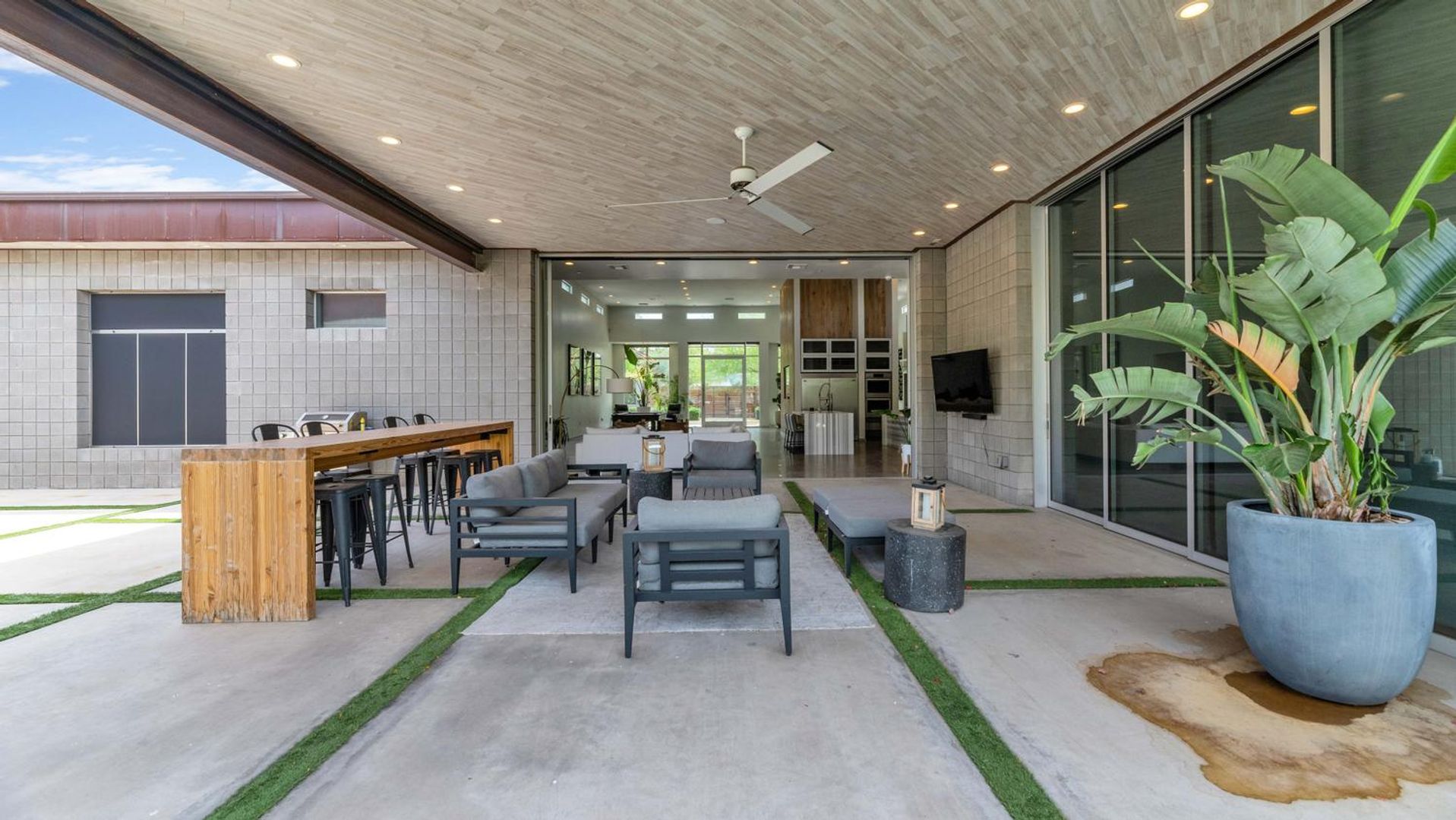 Arrive at this secure gated enclave and step into a private visitors courtyard that opens to a breathtaking oasis. The dramatic 10-foot-tall glass pivot front door welcomes you into a home defined by volume, light, and effortless sophistication. Soaring 17-foot ceilings sweep through the main living spaces, while sweeping, unobstructed views of Camelback Mountain frame nearly every window. A direct sightline from the entry draws your eye through a massive 19-foot-wide automatic Western Glass Systems pocket door to an expansive suspended covered patio, a meticulously landscaped backyard featuring a sleek linear pool and inviting firepit. A fully self-contained 676-square-foot detached guesthouse provides complete privacy for visitors without compromise. The chefs kitchen serves as the heart of the home, anchored by dual zebra marble waterfall islands and outfitted with top-tier Wolf and Bosch commercial-grade appliances. The master suite is a true private retreat, complete with a luxurious spa bathroom featuring an Eago air tub, steam shower, and generous dual closets. A completely separate guest wing includes three bedrooms, a media room, private laundry, and a secondary kitchen area ideal for guests or multigenerational living. Over $100,000 in premium audio-visual equipment integrates seamlessly with the smart home system, controllable via iPad for lighting, sound, climate, automated doors, security, and more. Car enthusiasts will appreciate the air-conditioned 4+ car garage with 17-foot ceilings and HVAC, plus a massive secure motor court with RV/boat hookup already in place plenty of room for a collection, projects, or extra vehicles. Enjoy an unbeatable location moments from The Henry, Village Racquet Club, AJs Fine Foods, Steak 44, and the Global Ambassador - all within a short walk. This residence delivers uncompromising quality, dramatic scale, enviable style, and everyday convenience at an exceptional value.