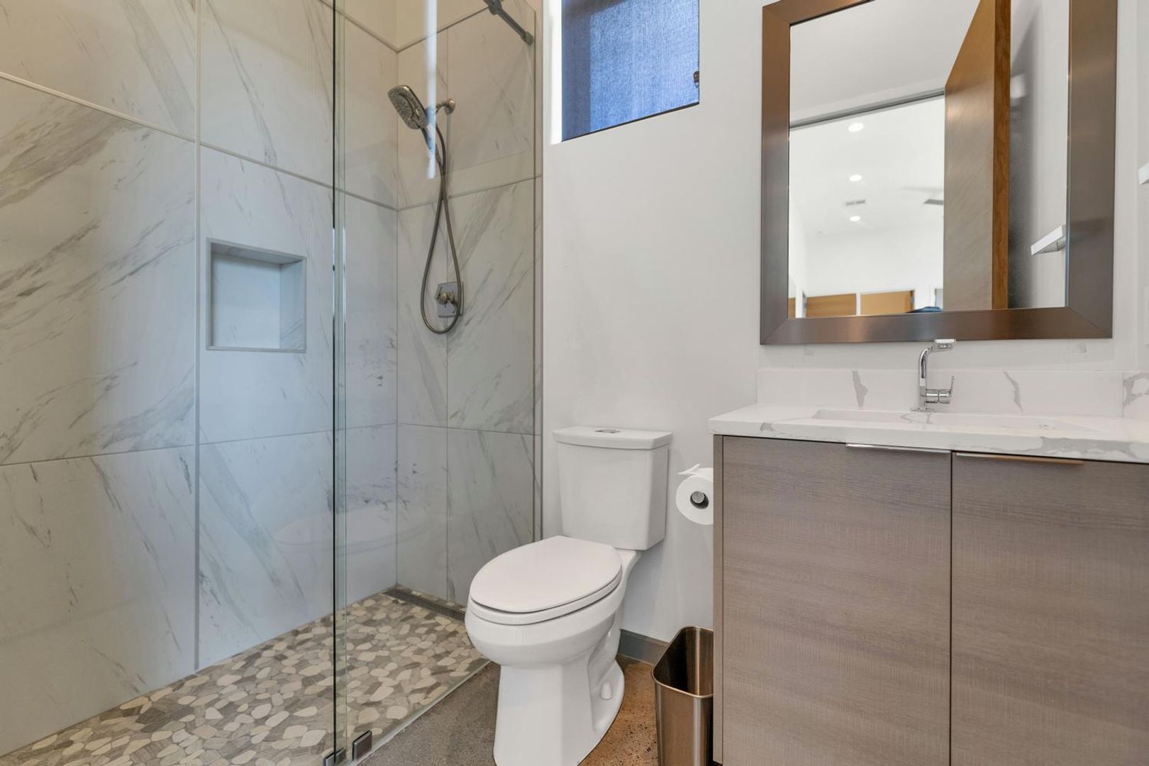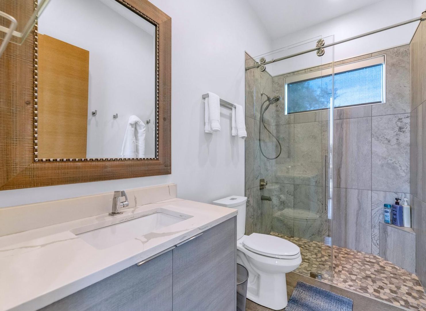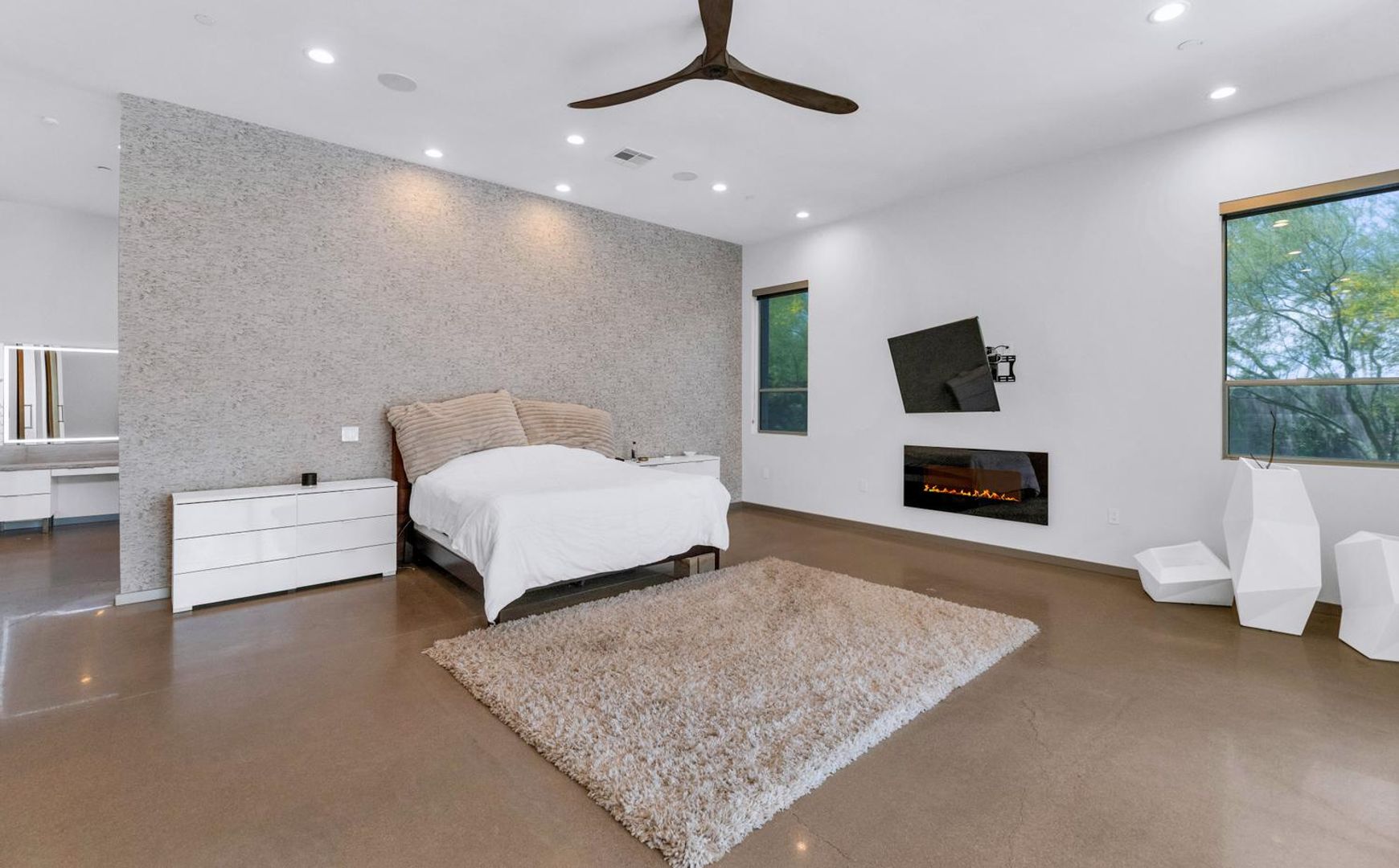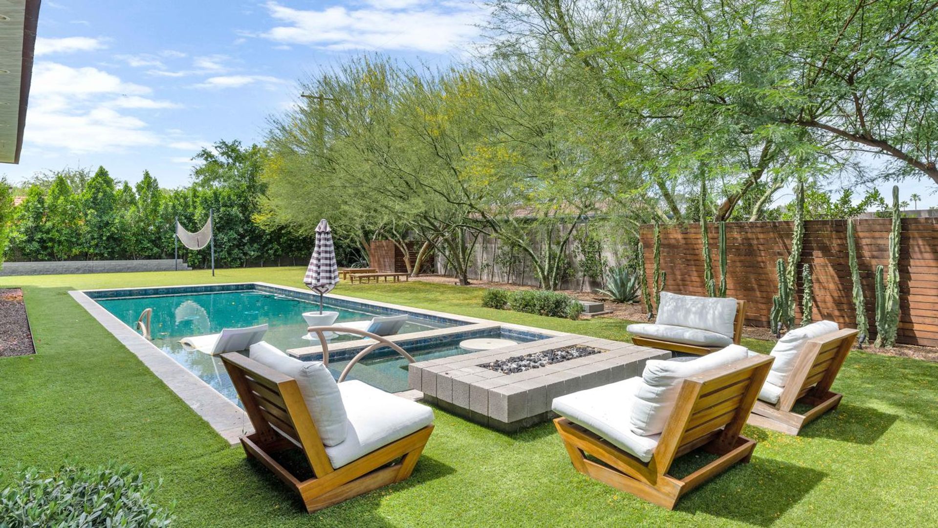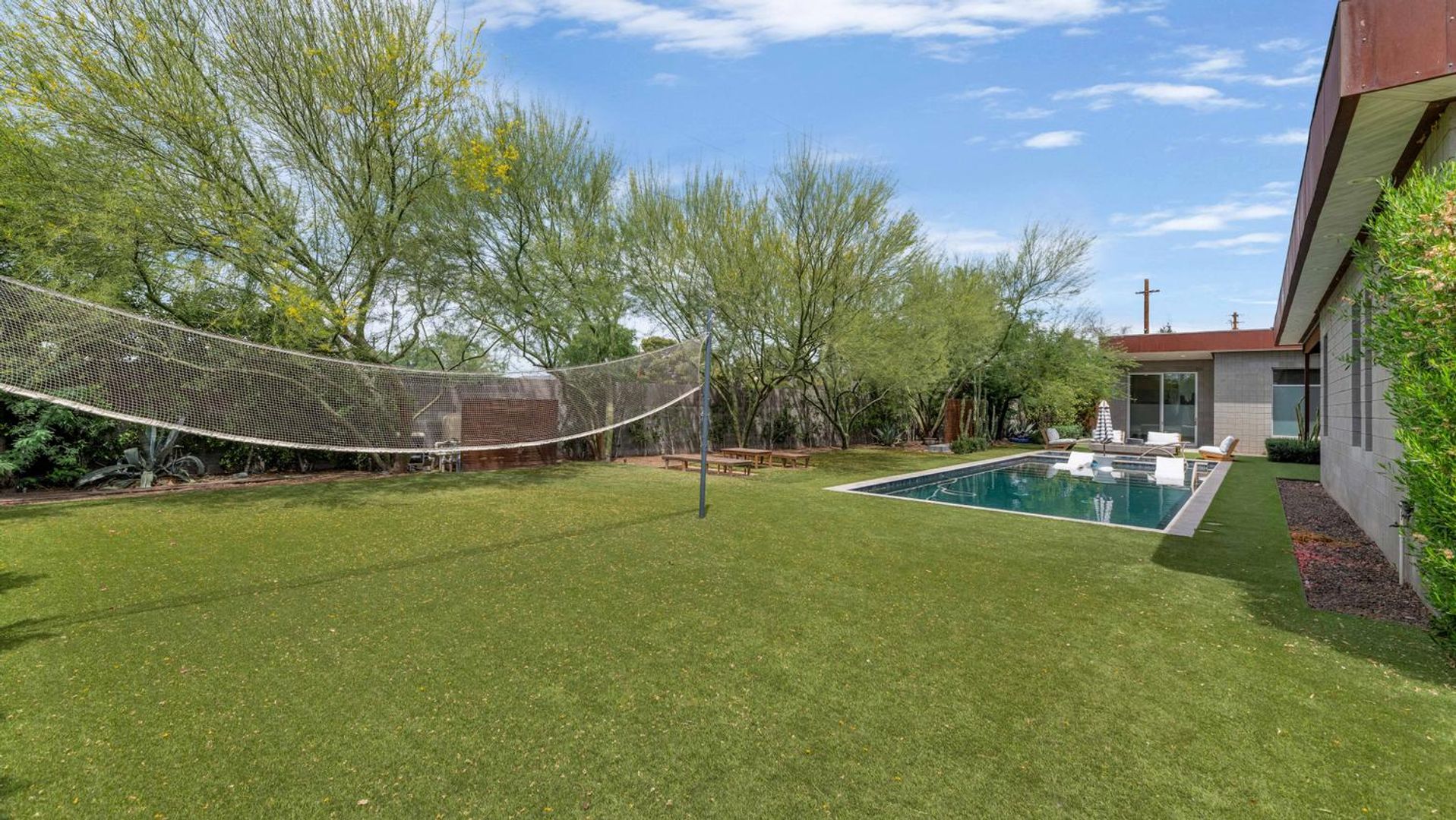 Arrive at this secure gated enclave and step into a private visitors courtyard that opens to a breathtaking oasis. The dramatic 10-foot-tall glass pivot front door welcomes you into a home defined by volume, light, and effortless sophistication. Soaring 17-foot ceilings sweep through the main living spaces, while sweeping, unobstructed views of Camelback Mountain frame nearly every window. A direct sightline from the entry draws your eye through a massive 19-foot-wide automatic Western Glass Systems pocket door to an expansive suspended covered patio, a meticulously landscaped backyard featuring a sleek linear pool and inviting firepit. A fully self-contained 676-square-foot detached guesthouse provides complete privacy for visitors without compromise. The chefs kitchen serves as the heart of the home, anchored by dual zebra marble waterfall islands and outfitted with top-tier Wolf and Bosch commercial-grade appliances. The master suite is a true private retreat, complete with a luxurious spa bathroom featuring an Eago air tub, steam shower, and generous dual closets. A completely separate guest wing includes three bedrooms, a media room, private laundry, and a secondary kitchen area ideal for guests or multigenerational living. Over $100,000 in premium audio-visual equipment integrates seamlessly with the smart home system, controllable via iPad for lighting, sound, climate, automated doors, security, and more. Car enthusiasts will appreciate the air-conditioned 4+ car garage with 17-foot ceilings and HVAC, plus a massive secure motor court with RV/boat hookup already in place plenty of room for a collection, projects, or extra vehicles. Enjoy an unbeatable location moments from The Henry, Village Racquet Club, AJs Fine Foods, Steak 44, and the Global Ambassador - all within a short walk. This residence delivers uncompromising quality, dramatic scale, enviable style, and everyday convenience at an exceptional value.