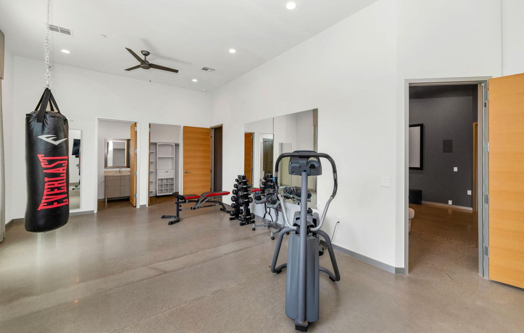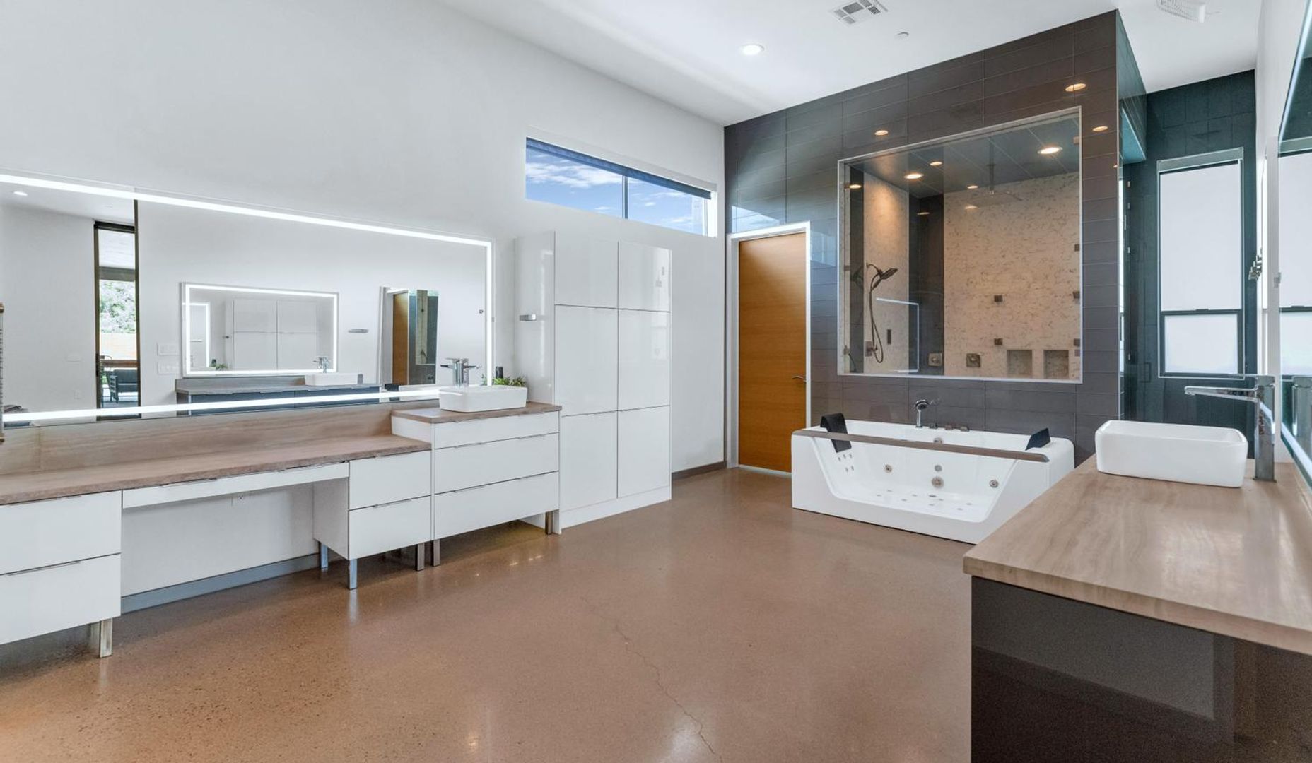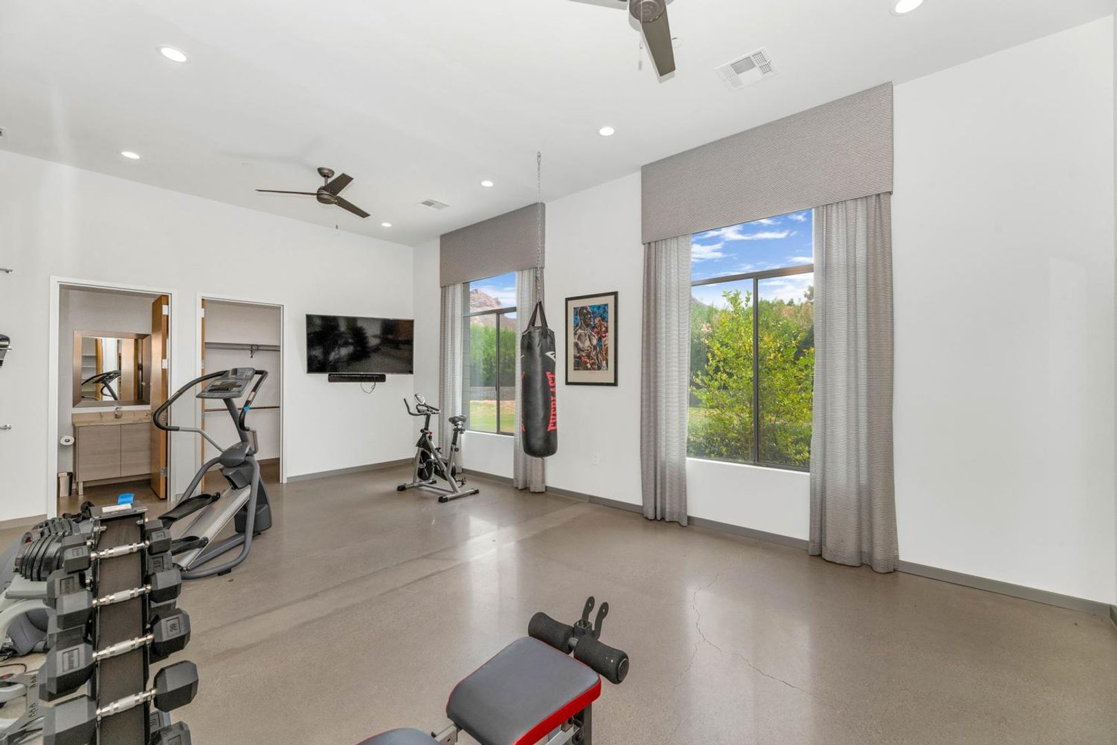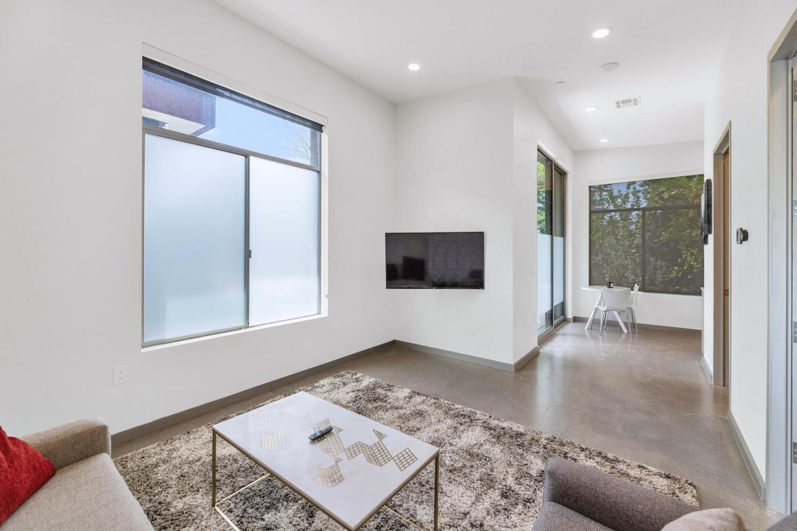 Arrive at this secure gated enclave and step into a private visitors courtyard that opens to a breathtaking oasis. The dramatic 10-foot-tall glass pivot front door welcomes you into a home defined by volume, light, and effortless sophistication. Soaring 17-foot ceilings sweep through the main living spaces, while sweeping, unobstructed views of Camelback Mountain frame nearly every window. A direct sightline from the entry draws your eye through a massive 19-foot-wide automatic Western Glass Systems pocket door to an expansive suspended covered patio, a meticulously landscaped backyard featuring a sleek linear pool and inviting firepit. A fully self-contained 676-square-foot detached guesthouse provides complete privacy for visitors without compromise. The chefs kitchen serves as the heart of the home, anchored by dual zebra marble waterfall islands and outfitted with top-tier Wolf and Bosch commercial-grade appliances. The master suite is a true private retreat, complete with a luxurious spa bathroom featuring an Eago air tub, steam shower, and generous dual closets. A completely separate guest wing includes three bedrooms, a media room, private laundry, and a secondary kitchen area ideal for guests or multigenerational living. Over $100,000 in premium audio-visual equipment integrates seamlessly with the smart home system, controllable via iPad for lighting, sound, climate, automated doors, security, and more. Car enthusiasts will appreciate the air-conditioned 4+ car garage with 17-foot ceilings and HVAC, plus a massive secure motor court with RV/boat hookup already in place plenty of room for a collection, projects, or extra vehicles. Enjoy an unbeatable location moments from The Henry, Village Racquet Club, AJs Fine Foods, Steak 44, and the Global Ambassador - all within a short walk. This residence delivers uncompromising quality, dramatic scale, enviable style, and everyday convenience at an exceptional value.