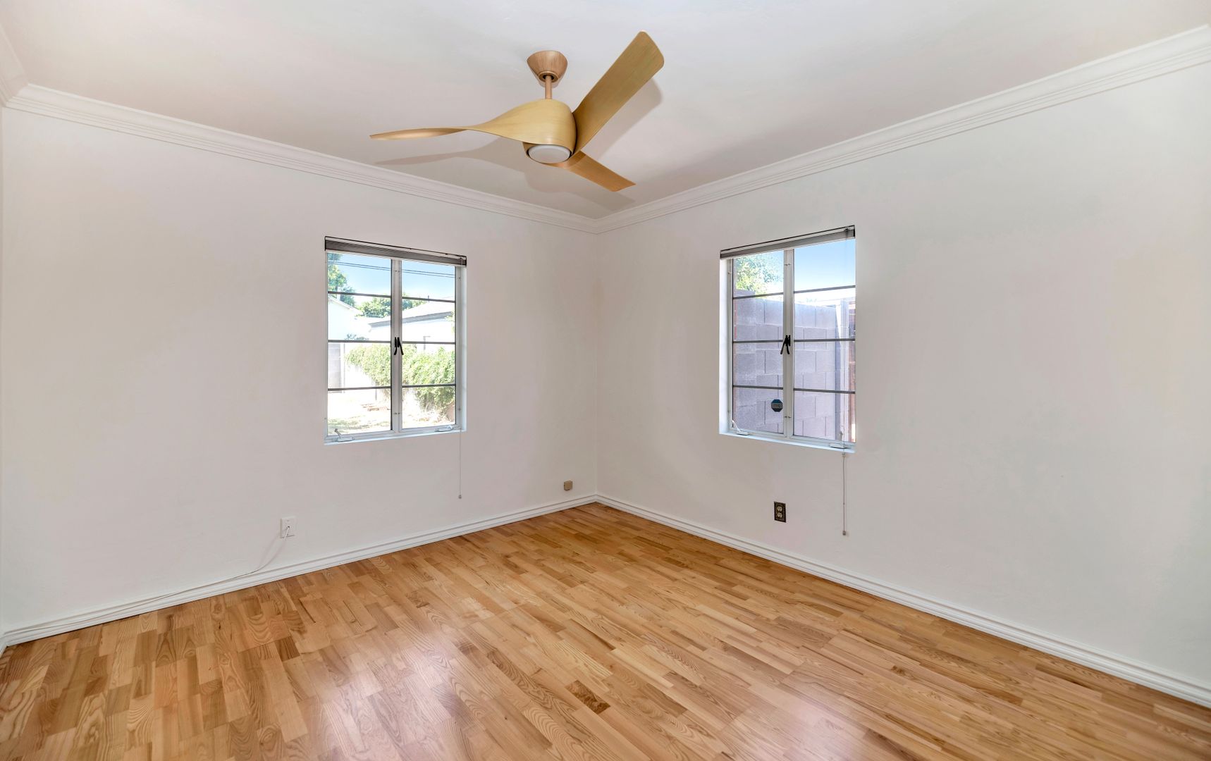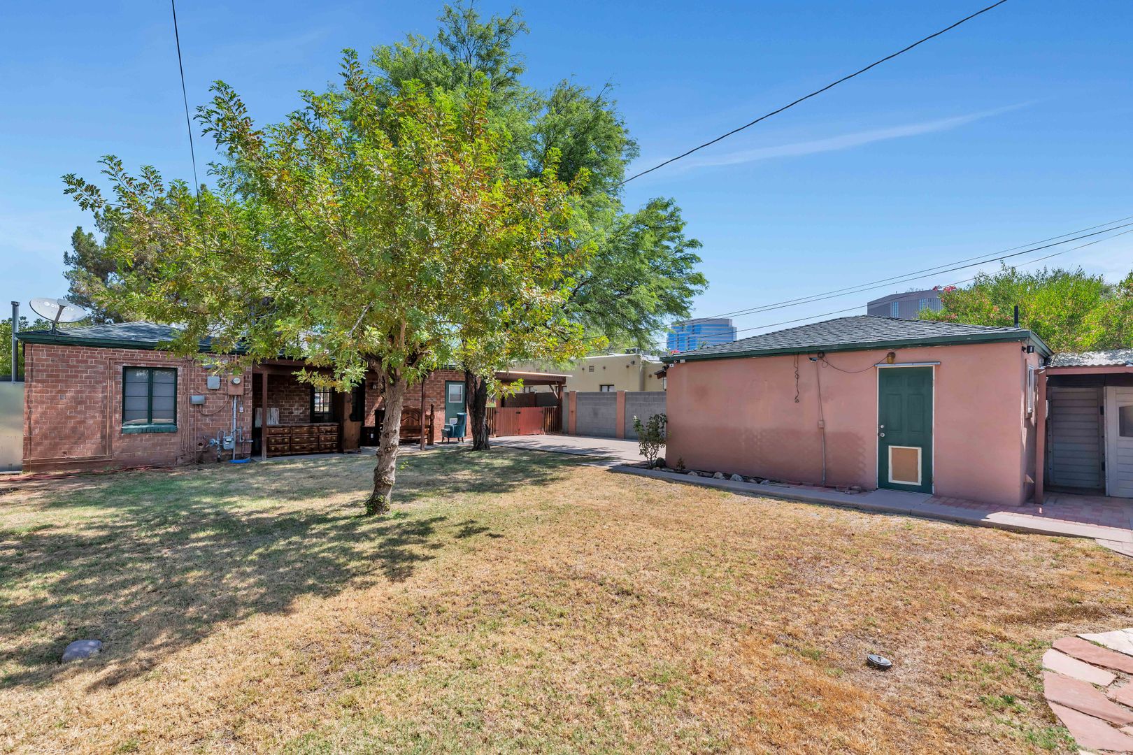 Discover a gem in the heart of Phoenix's historic Willow District! This meticulously restored 2-bed, 1-bath home, with a 360 sq. ft. detached bonus room/studio/office featuring its own full bath, blends timeless charm with modern upgrades. Freshly painted throughout, it boasts gleaming hardwood floors, a cozy breakfast nook, and sturdy double brick construction, offering both elegance and durability in the vibrant Downtown Phoenix scene.