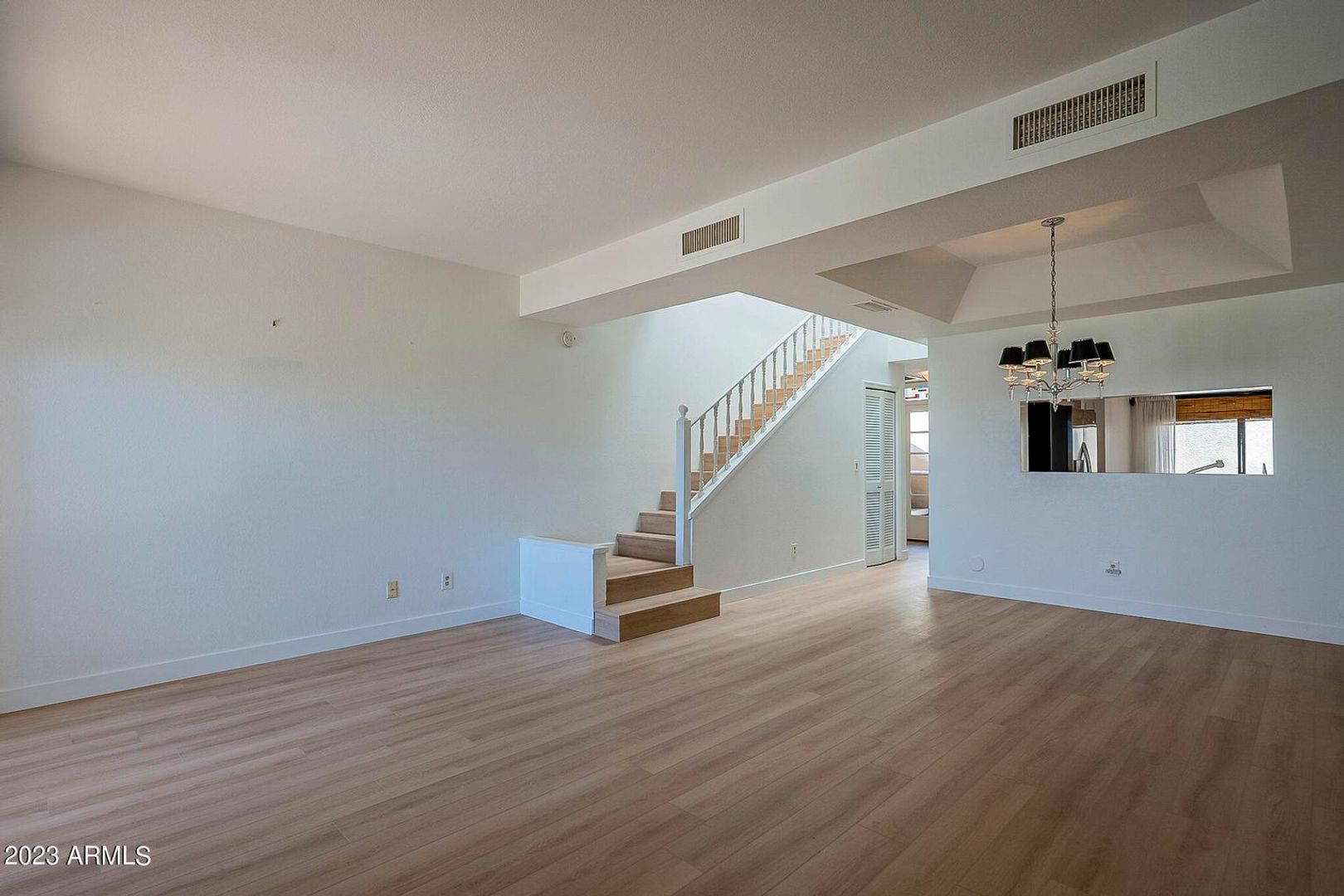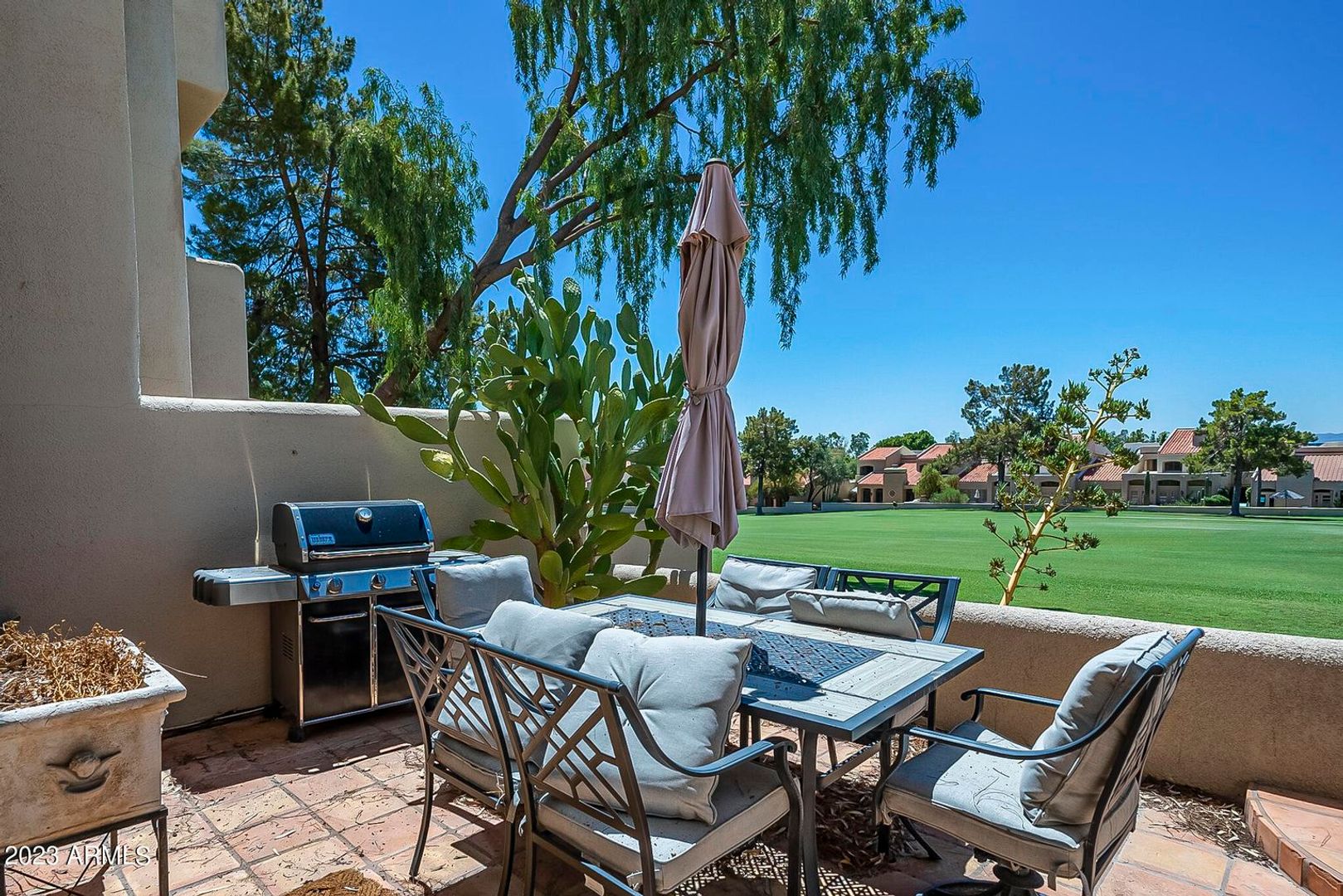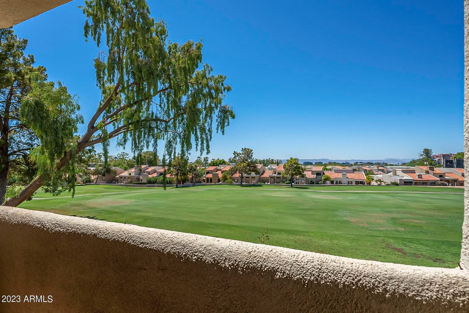 Nestled on the 13th fairway of the prestigious Biltmore Links golf course, this impeccably upgraded and meticulously maintained home boasts breathtaking panoramic views of the serene lake, majestic mountains, and twinkling downtown city lights. Step into the inviting open-concept living room, seamlessly flowing onto a spacious covered patio that borders the lush, perfectly manicured greens—ideal for relaxing or entertaining amid the scenery. Adjacent to the gourmet eat-in kitchen, discover a charming front patio, perfect for al fresco dining throughout the cooler fall, winter, and spring months. Upstairs, the luxurious master retreat awaits with its own private covered balcony, offering uninterrupted vistas of the golf course and vibrant downtown Phoenix skyline. Designed with views in mind, this exceptional home also provides abundant storage and a pristine garage.