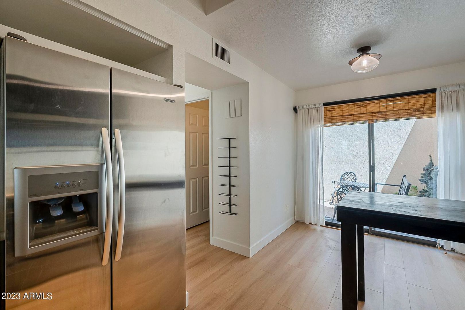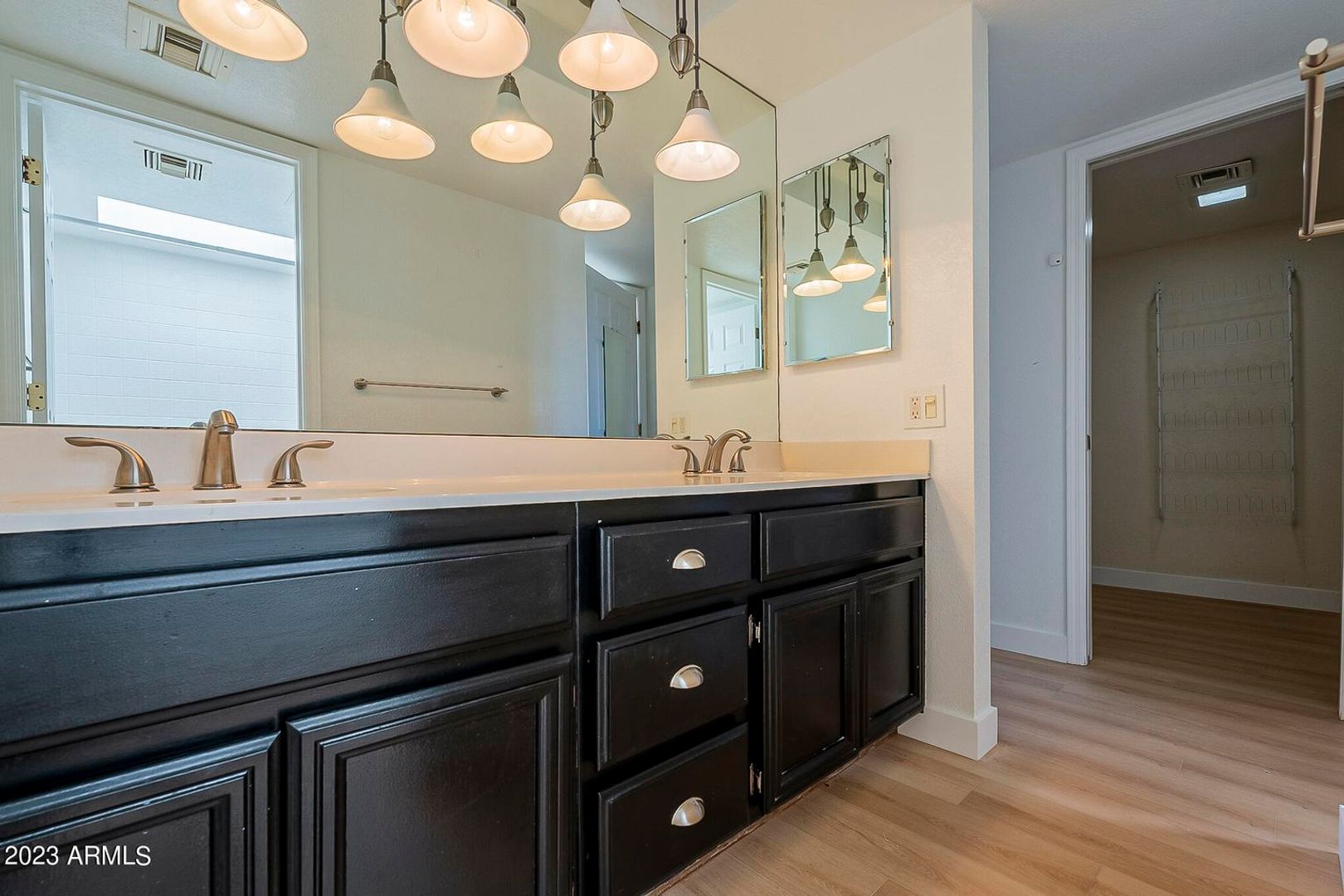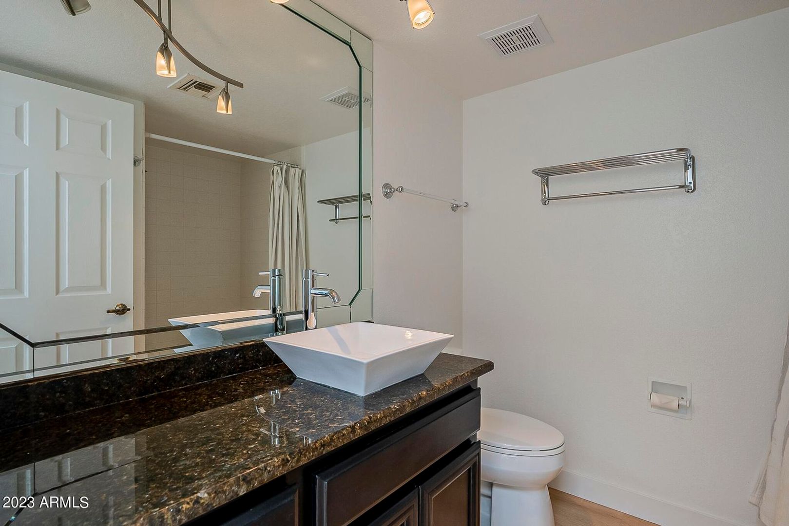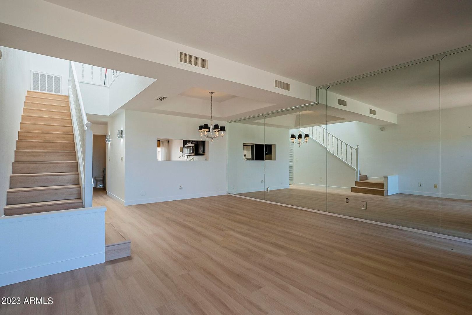 Nestled on the 13th fairway of the prestigious Biltmore Links golf course, this impeccably upgraded and meticulously maintained home boasts breathtaking panoramic views of the serene lake, majestic mountains, and twinkling downtown city lights. Step into the inviting open-concept living room, seamlessly flowing onto a spacious covered patio that borders the lush, perfectly manicured greens—ideal for relaxing or entertaining amid the scenery. Adjacent to the gourmet eat-in kitchen, discover a charming front patio, perfect for al fresco dining throughout the cooler fall, winter, and spring months. Upstairs, the luxurious master retreat awaits with its own private covered balcony, offering uninterrupted vistas of the golf course and vibrant downtown Phoenix skyline. Designed with views in mind, this exceptional home also provides abundant storage and a pristine garage.