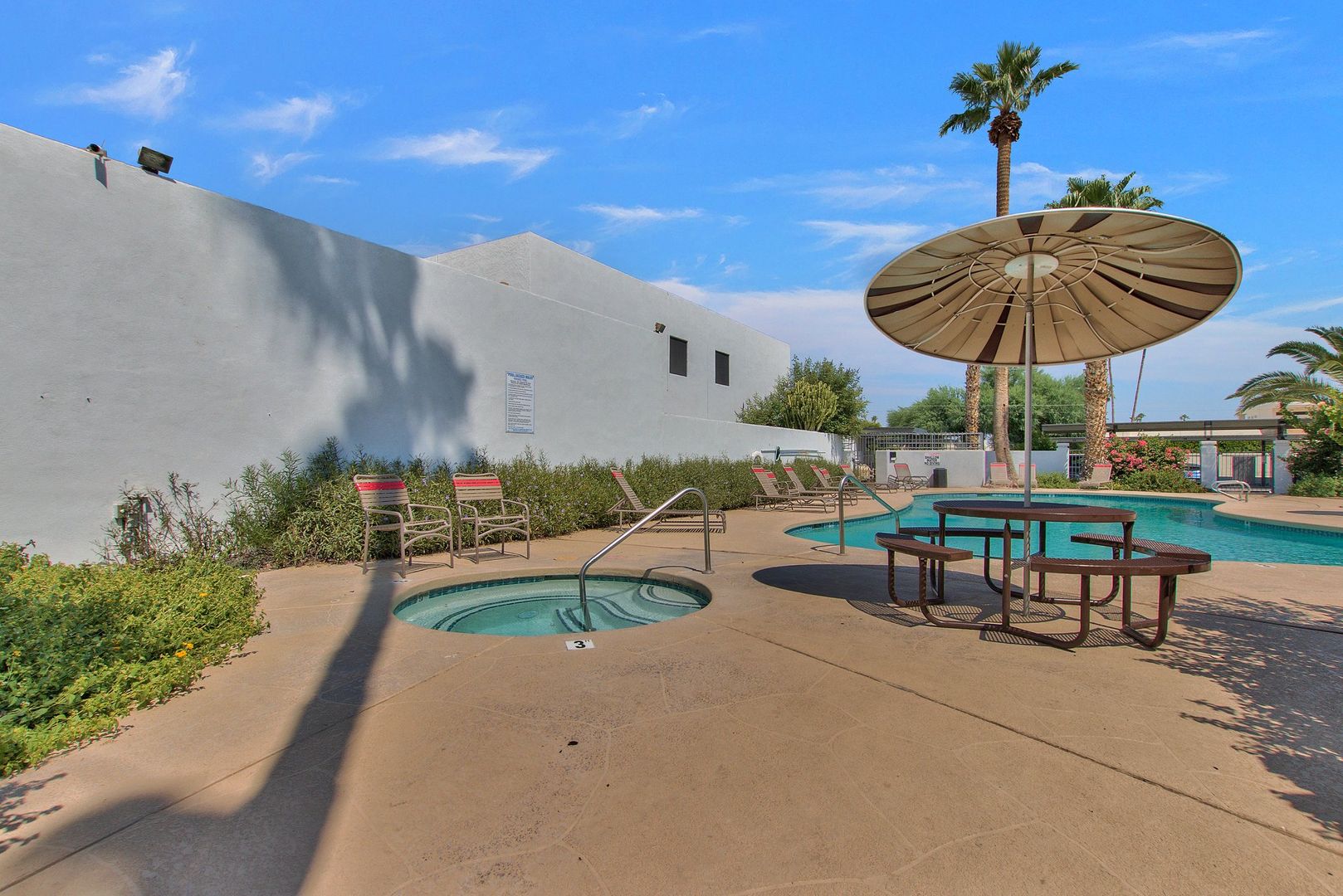 This popular three-bedroom floor plan features a private master suite upstairs with spa-like En suite and ample closet space. 2 Bedrooms and a bathroom downstairs. Charming private patio with stylish pavers allow you to relax in your own outdoor space. This townhome offers two covered parking spots near the heart of Old Town Scottsdale! The community pool and spa, surrounded by green grass and well-manicured landscaping is a great place to unwind and escape the summer heat.