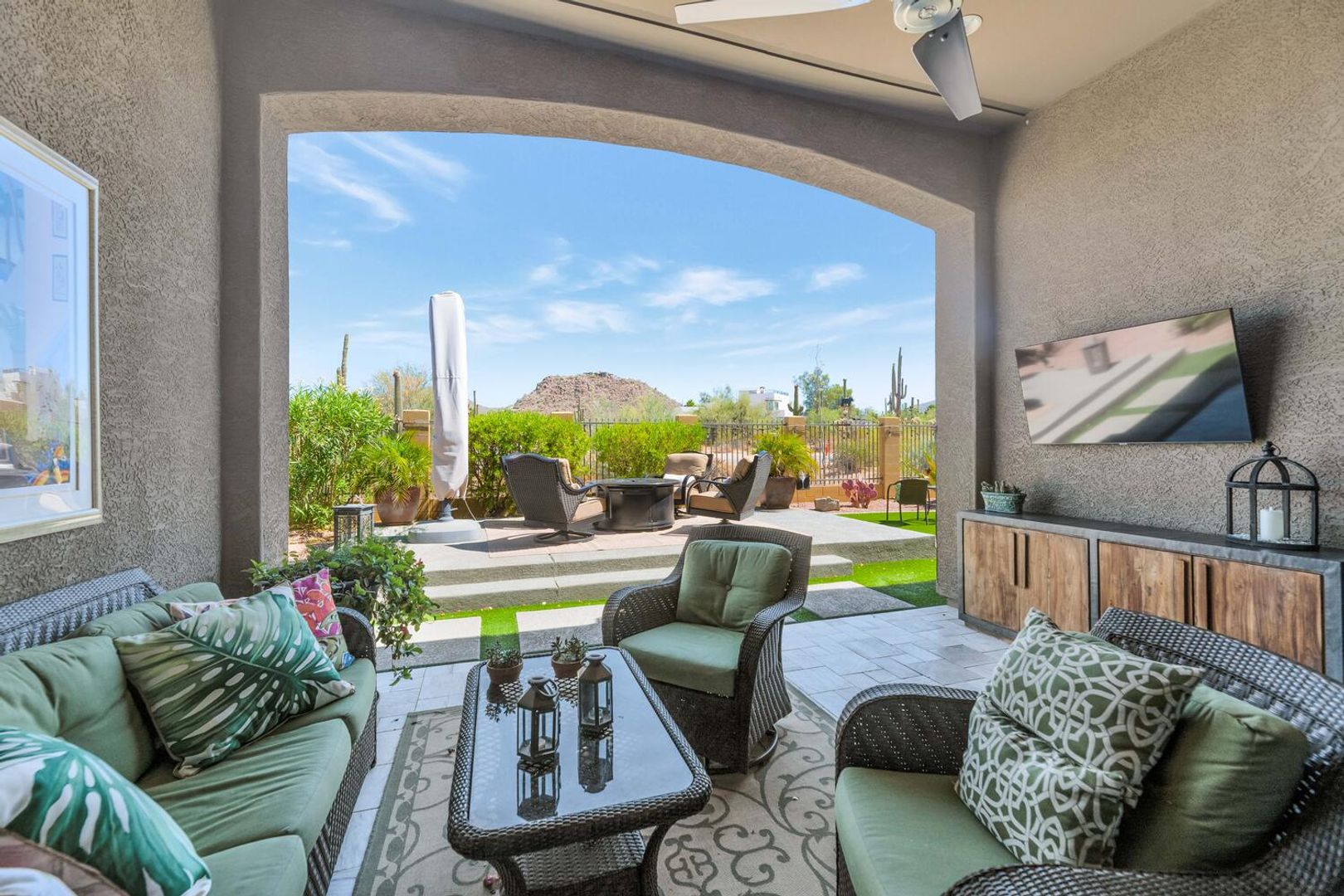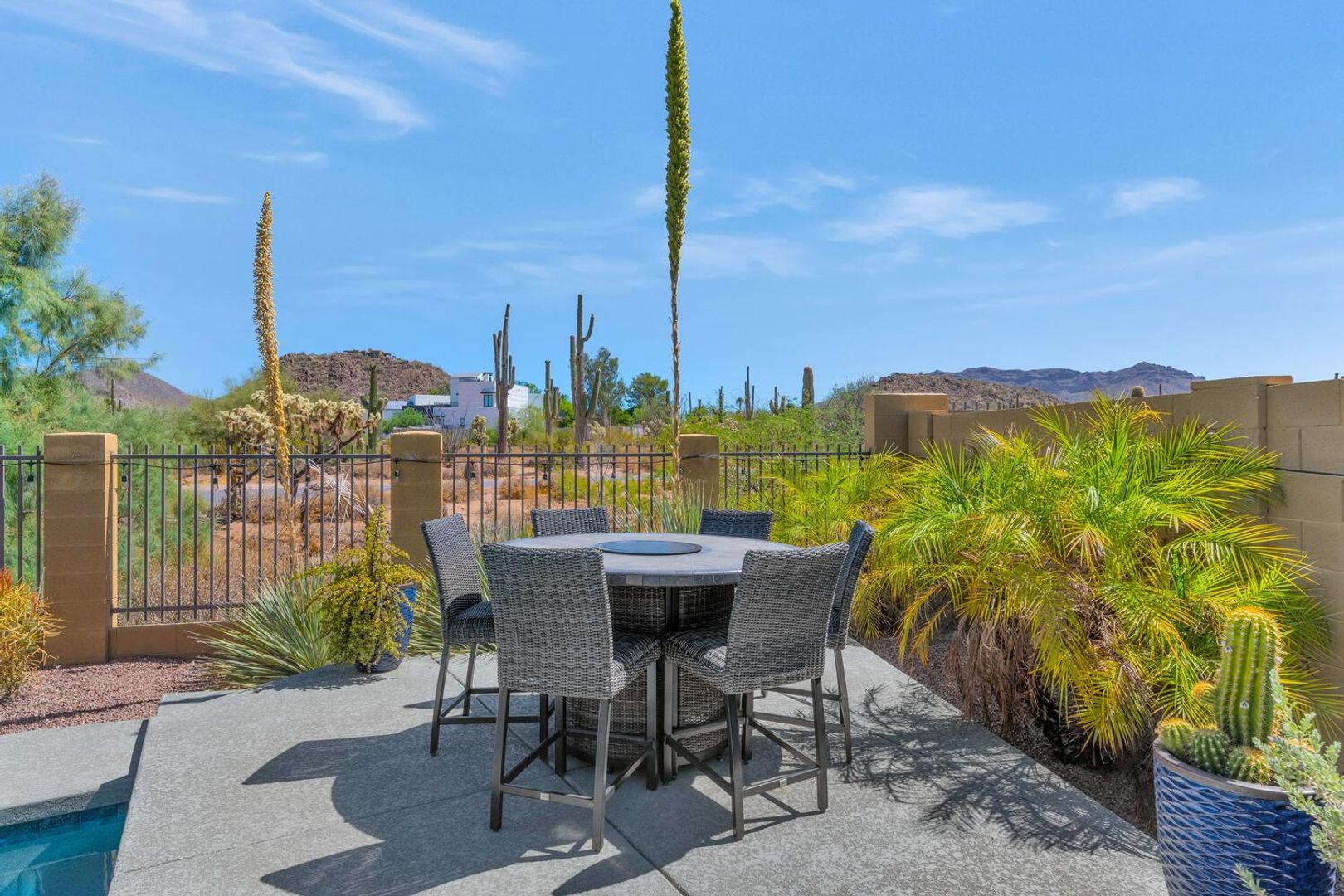 THIS IS A FURNISHED RENTAL THAT IS AVAILABLE SEASONALLY, LONG TERM PRICING, PLEASE CALL FOR BLENDED RATE!! (Jan-Mar $9,495) (Apr, Oct - Dec $6,995) (May - Sept $5,995). This home will truly exceed expectations inside and out. A huge lot at the end of the cul-de-sac with panoramic mountain views at every turn, the setting is truly incomparable with many desired amenities for stellar outdoor entertaining. French doors lead to infinity spa and salt water pool, pergola with built-in bar/island, expansive patio areas with travertine tile, elevated entertaining area with dining table with fire pit and full view wall. The west side of the outdoors offers an additional dining area with table and chairs. The pristine interior embodies high quality enhancements throughout and is immaculate with bright, open floor plan, designer kitchen with long island and upgraded cabinetry and appliances. The Dining Area has custom built-in bar buffet with beverage and wine refrigerators and kegerator. The Expanded Wall of glass in the Great Room introduces the idyllic rear yard backdrop to a fire pit and comfortable chairs for stargazing. Each of the four bedrooms have an ensuite and television. Master suite has two custom closets, large shower and tub.