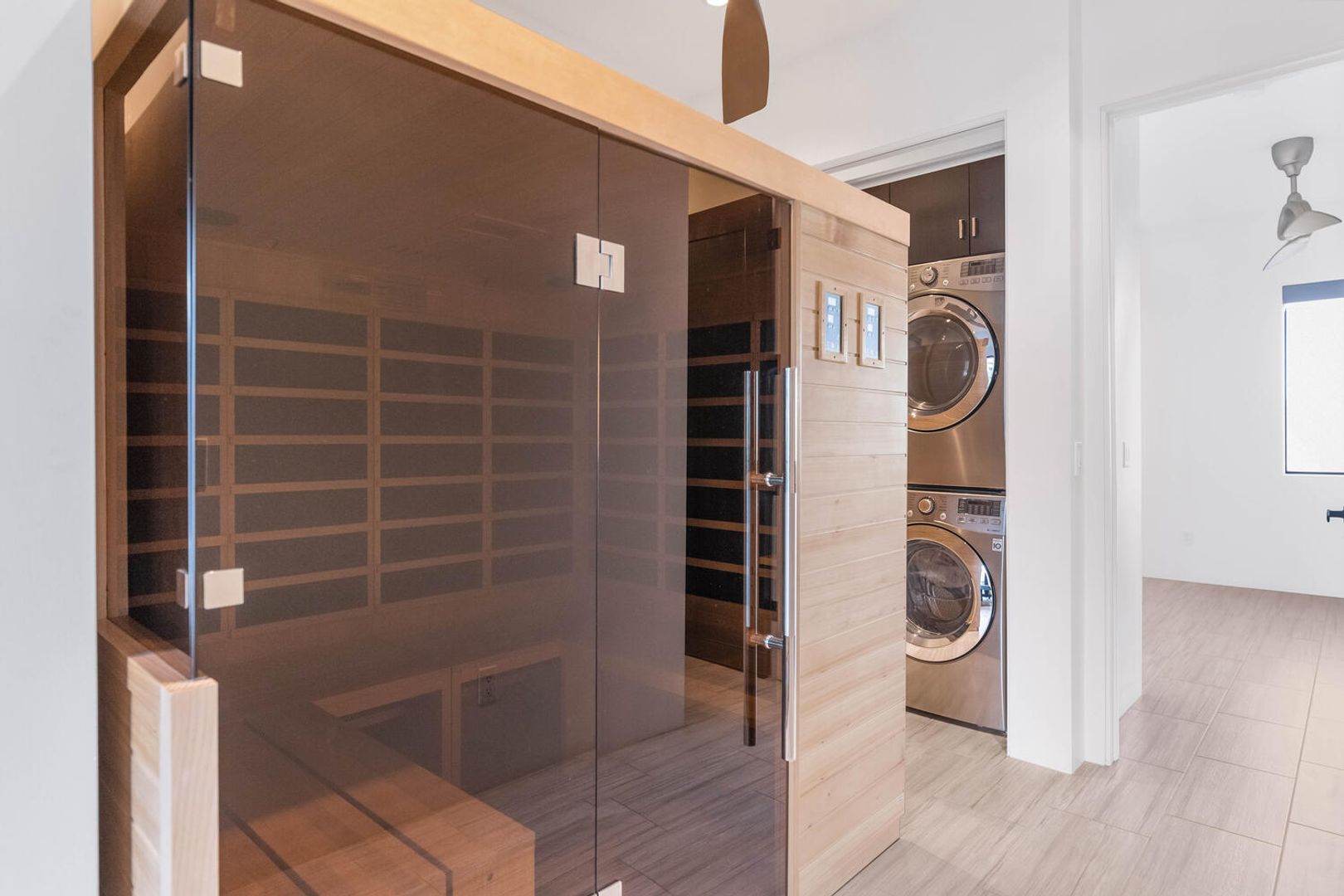 THIS IS A FURNISHED RENTAL THAT IS AVAILABLE SEASONALLY, LONG TERM PRICING, PLEASE CALL FOR BLENDED RATE!! (Jan - Mar $24,995) (Apr, Oct - Dec $19,995) (May - Sept $16,495). Elevate your living experience with this stunning furnished Contemporary rental in the exclusive guard-gated Clearwater Hills community. This stylish residence beckons with a breathtaking wall of glass, seamlessly weaving panoramic mountain vistas, a mesmerizing negative-edge pool, and twinkling city lights into your daily life. The grand living area dazzles with wide-open space, Australian wood floors, and soaring 20' ceilings, creating an expansive, inviting ambiance you'll be eager to call home. The gourmet kitchen is a chef's dream, featuring sleek quartz countertops, rich Alder cabinetry, a La Cornue five-burner gas range, and premium Miele appliances. Retreat to the lavish master suite, a sanctuary of indulgence with a spa-inspired bathroom adorned with top-tier finishes, a walk-through closet, an outdoor shower, and a private laundry. The expanded three-car garage offering two stalls for vehicles and a third transformed into your personal gym-followed by relaxation in your very own sauna. With three ensuite bedrooms and a private office, this home delivers luxury at every turn. If opulence is your desire, your search ends here!