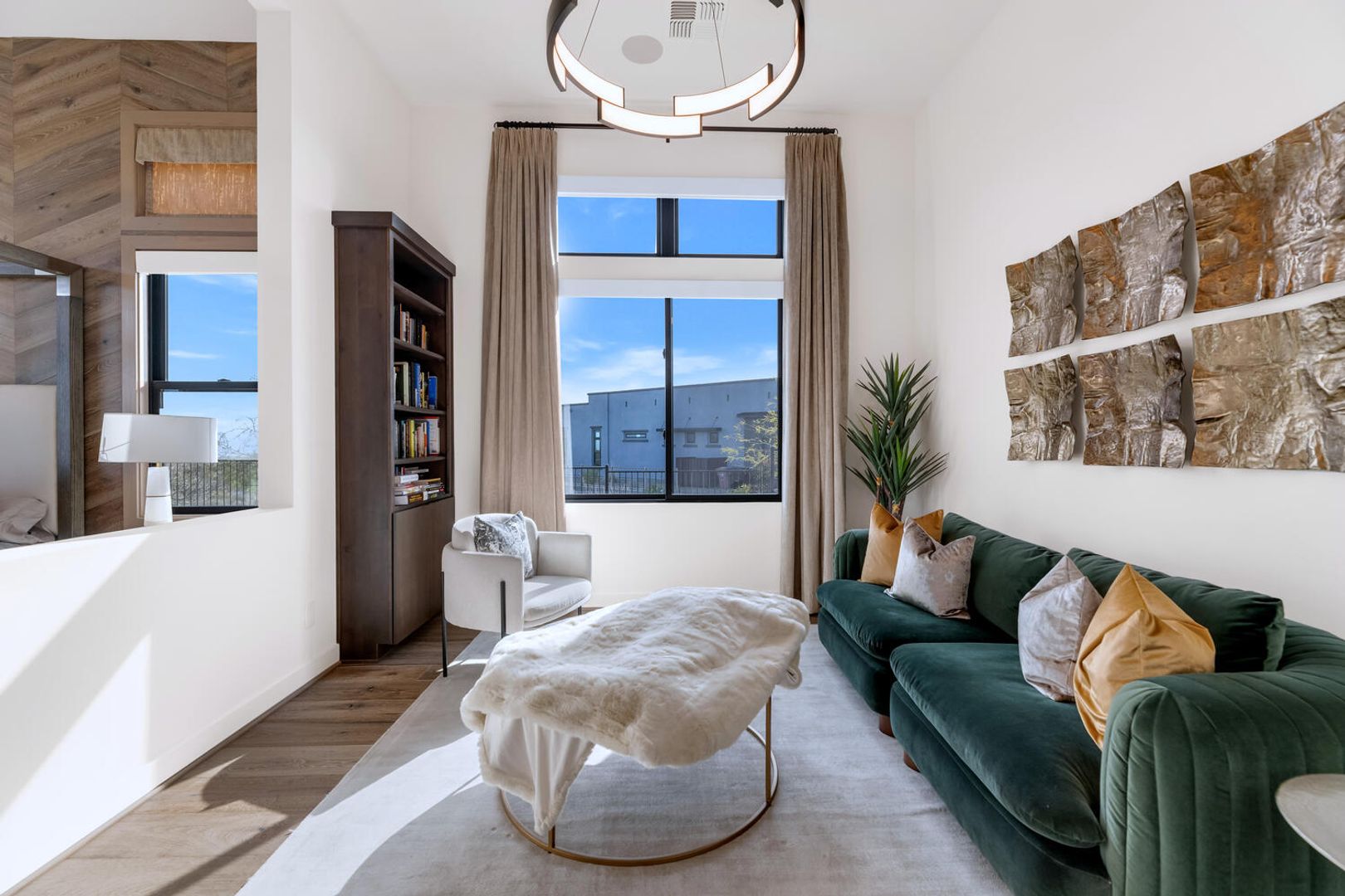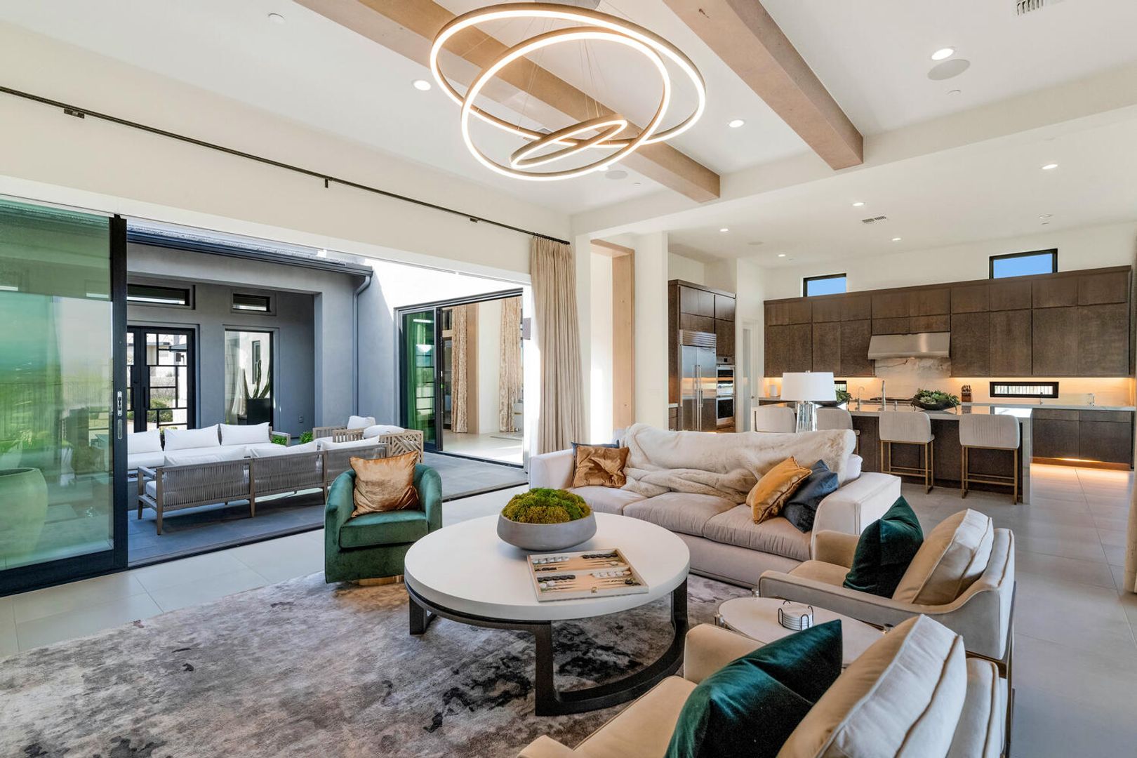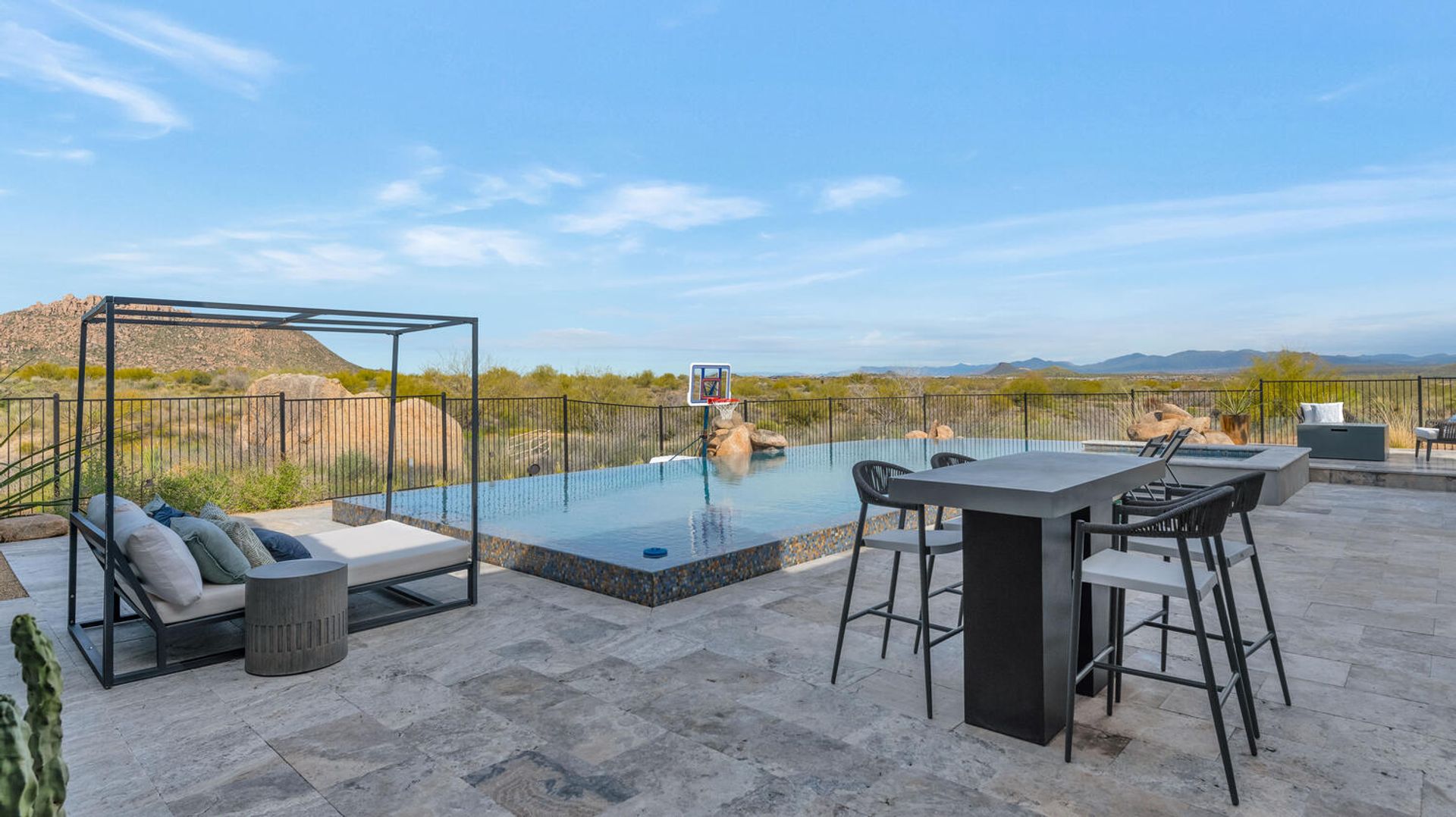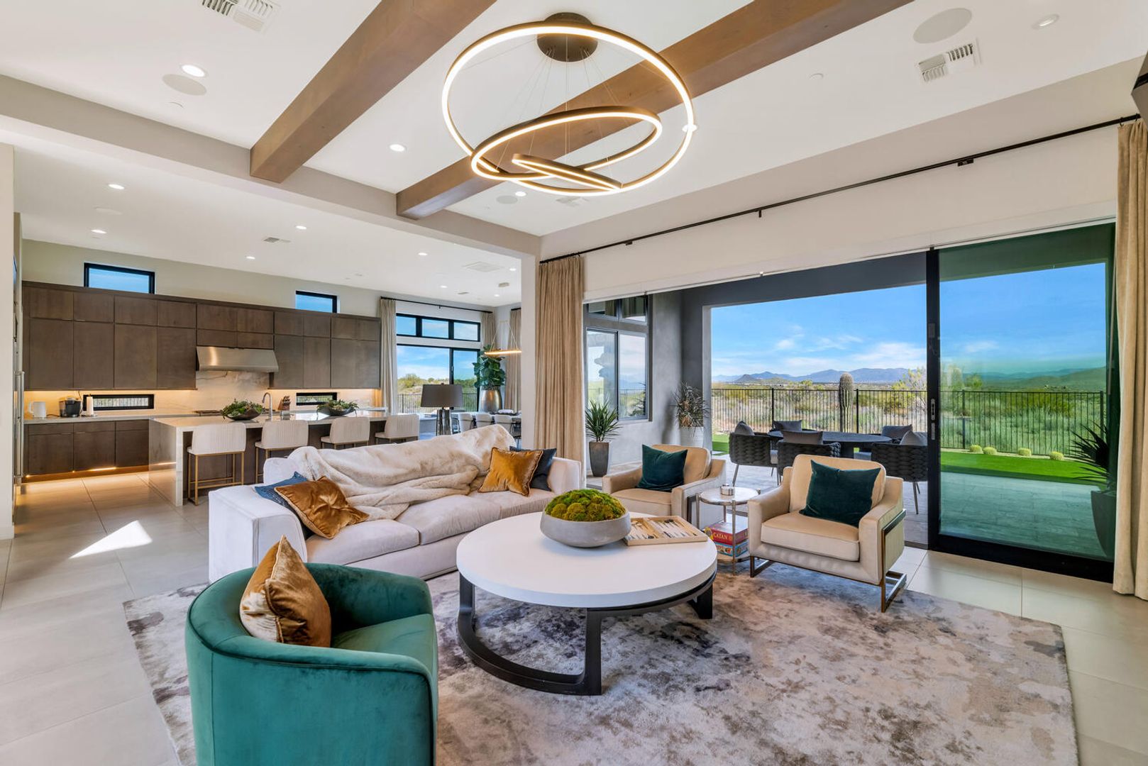 Nestled within the prestigious, guard-gated enclave of Sereno Canyon in North Scottsdale, this contemporary single-level residence embodies the pinnacle of modern desert luxury. Dramatically framed by the iconic McDowell Mountains and enveloped in pristine Sonoran Desert vistas, the home masterfully fuses sleek architectural lines with timeless elegance, offering a peaceful sanctuary mere moments from Scottsdale's premier dining, upscale shopping, and championship golf courses. Upon entry, soaring ceilings and walls of expansive glass dissolve boundaries between indoors and out, bathing the open-concept living spaces in abundant natural light. The expansive great room effortlessly transitions into a state-of-the-art chef's kitchen, complete with premium appliances, custom cabinetry, and a substantial island perfect for seamless entertaining. Versatile living and dining areas accommodate everything from lavish gatherings to quiet, intimate evenings. The luxurious master suite serves as a private oasis, boasting spa-like finishes, dual vanities, and generous walk-in closet space. Additional guest bedrooms, along with adaptable flex rooms, provide ample comfort and versatility—ideal for family, guests, or a sophisticated home office. Outdoors, resort-style living reaches new heights with a shimmering pool, integrated spa, and expansive covered patios crafted for year-round enjoyment amid Arizona's glorious climate. Residents enjoy exclusive access to Sereno Canyon's acclaimed Mountain House Lodge amenities, including a state-of-the-art fitness center, resort pools, spa services, clubhouse, and more—delivering an elevated lifestyle immersed in natural beauty.