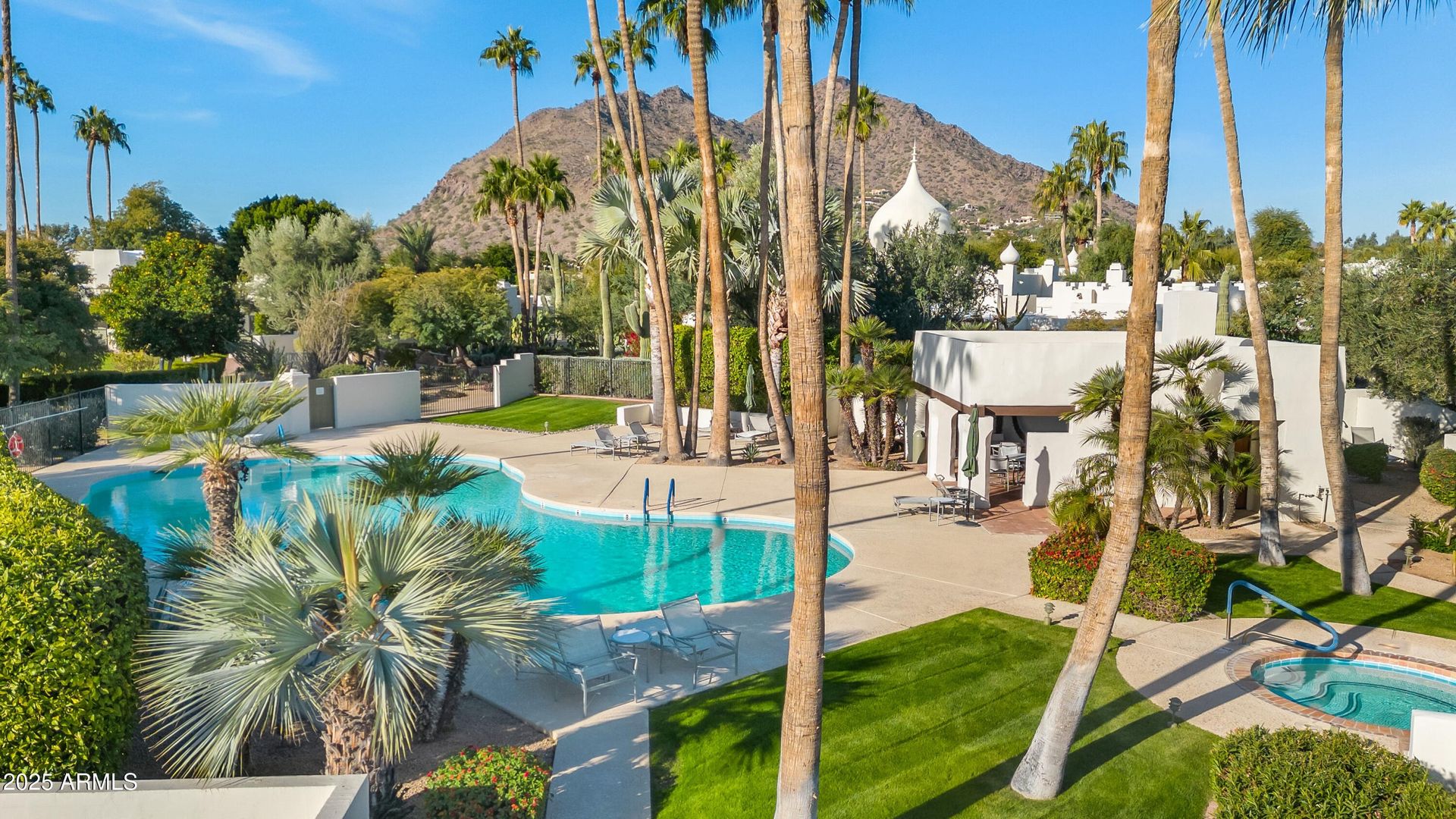 THIS IS A FURNISHED RENTAL THAT IS AVAILABLE SEASONALLY, LONG TERM PRICING, PLEASE CALL FOR BLENDED RATE!! (Jan - Mar $6,495) (Apr, Oct - Dec $4,995) (May - Sept $4,495)! Tucked within this exclusive, guard-gated enclave, this impeccably appointed residence blends sophisticated luxury with effortless elegance. Every detail has been thoughtfully curated — from the high-end designer furnishings to the premium finishes throughout. Simply arrive with your suitcase and step into a turnkey desert retreat that feels uniquely yours. Unwind on your secluded balcony overlooking lush grounds after a morning on the golf course, or spend the day at one of the community's three sparkling pools, on the tennis courts, or hiking the iconic trails of Camelback Mountain just moments away. Evenings are made for gathering: savor al fresco dining on the charming covered patio, then cozy up around the fireplace with friends as the desert stars come out. Whether you're escaping winter's chill or embracing Scottsdale's endless sunshine, this rare gem offers the perfect backdrop for every season. Perfectly positioned near Scottsdale's world-class dining, boutique shopping, and vibrant Old Town, yet serenely removed from the bustle - this is Paradise Valley living at its absolute finest.