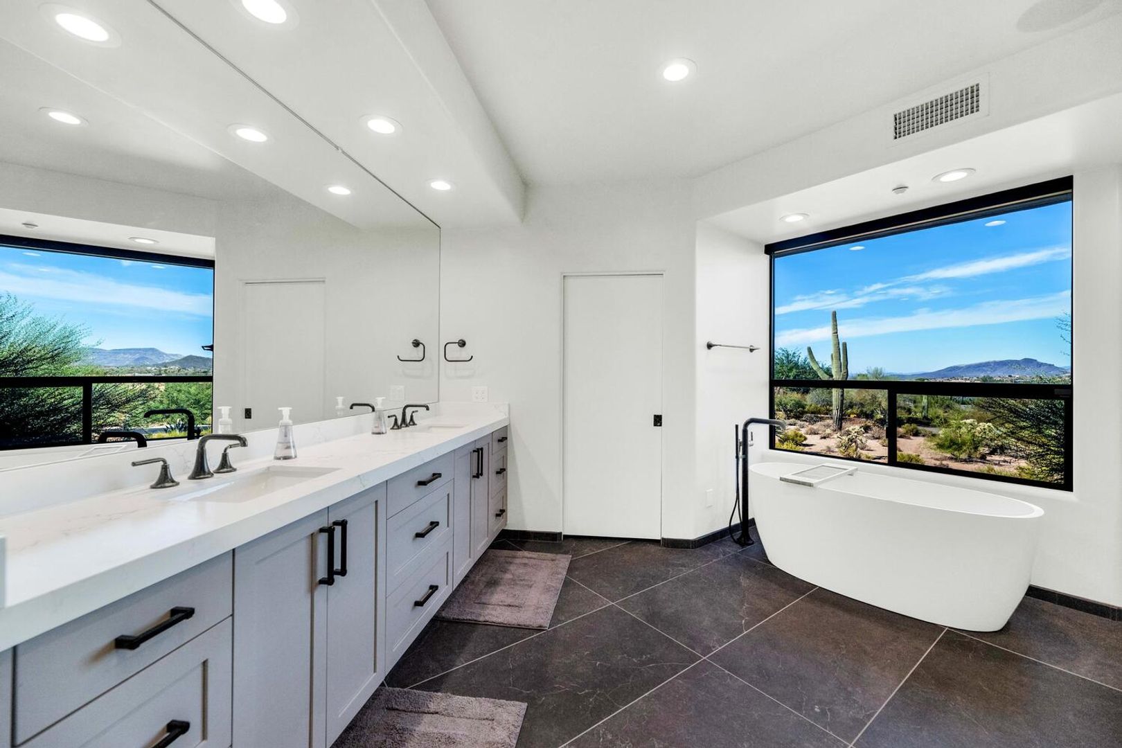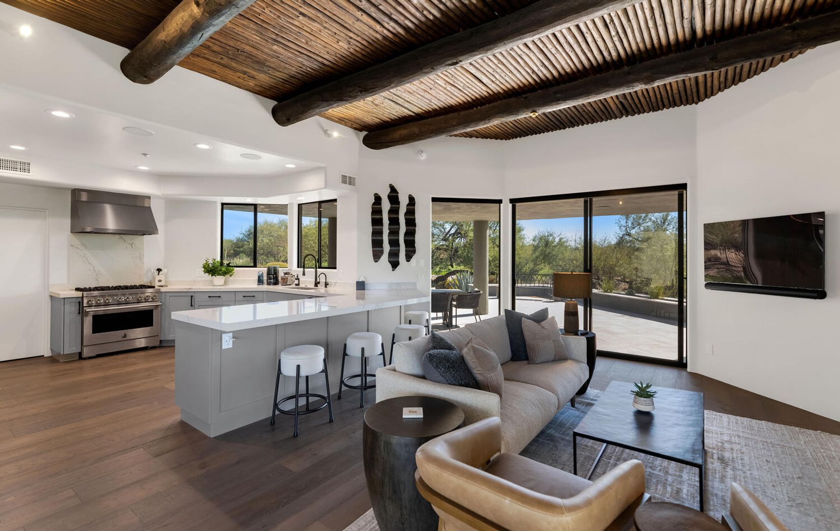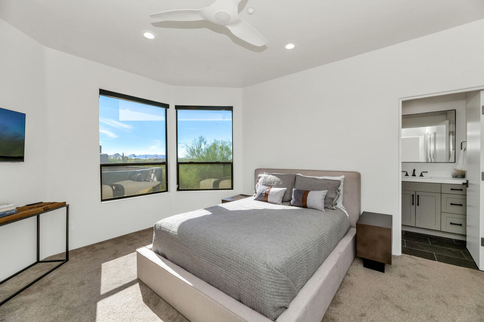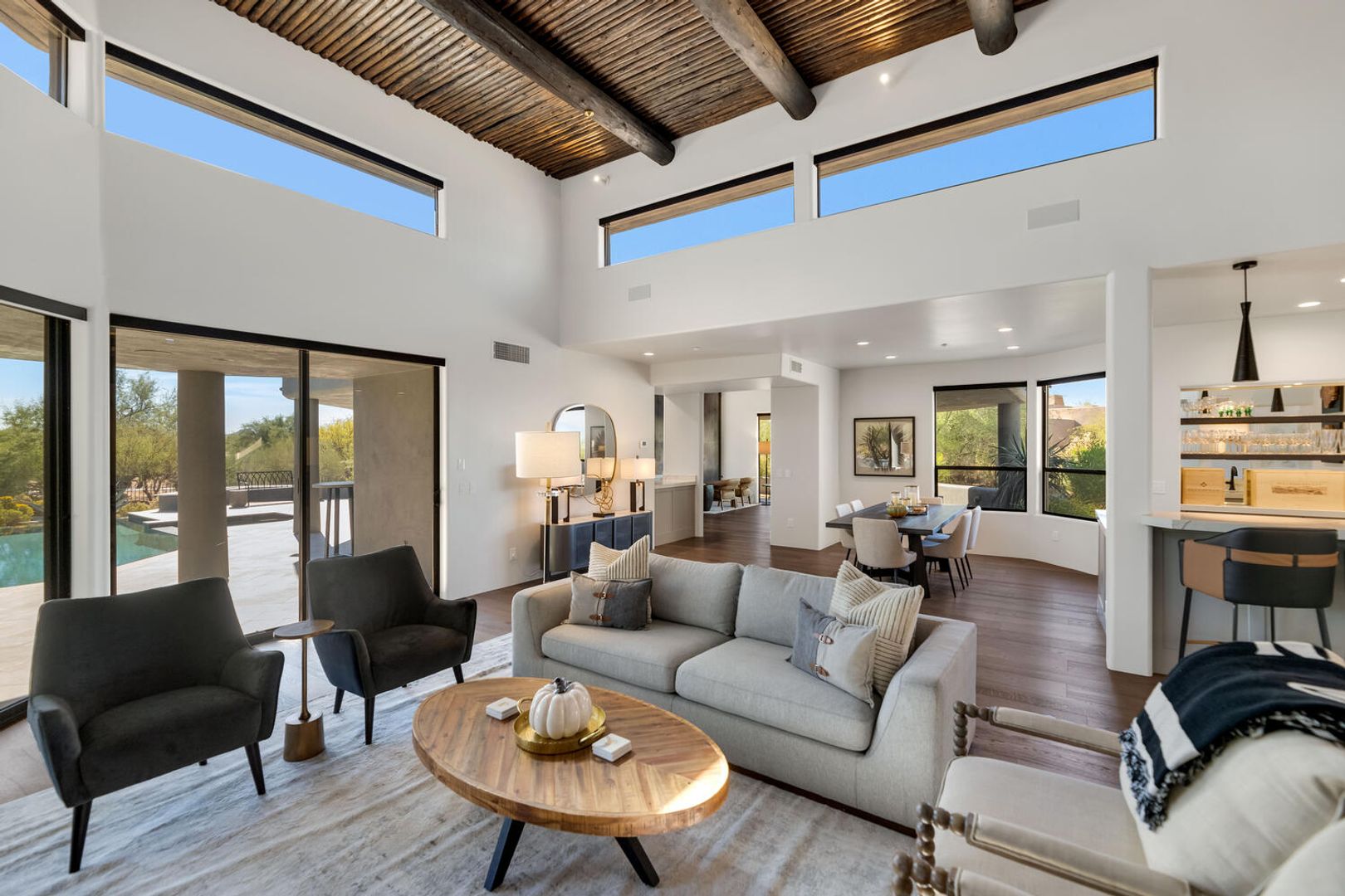 THIS IS A FURNISHED RENTAL THAT IS AVAILABLE SEASONALLY, LONG TERM PRICING, PLEASE CALL FOR BLENDED RATE!! (Jan - Mar $19,995) (Apr, Oct - Dec $14,995) (May - Sept $12,495)!! Located within the prestigious Desert Mountain Golf Community in North Scottsdale, this modern home is luxury living at its finest! With panoramic views of the lush landscape and the 10th fairway of the Renegade Golf Course, this meticulously updated home offers an unparalleled blend of elegance and tranquility. Step into modern sophistication, with hardwood floors, quartz countertops, and large picture windows. With 4 bedrooms and 4.5 bathrooms, including a lavish master suite, this residence provides ample space for both relaxation and entertainment.