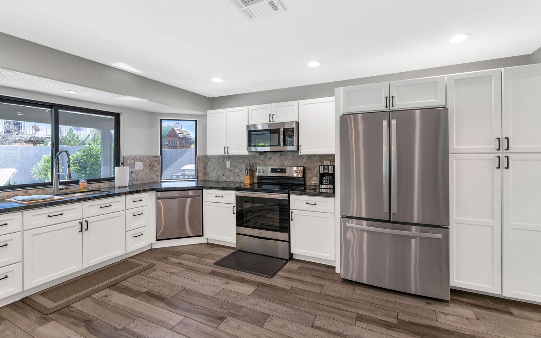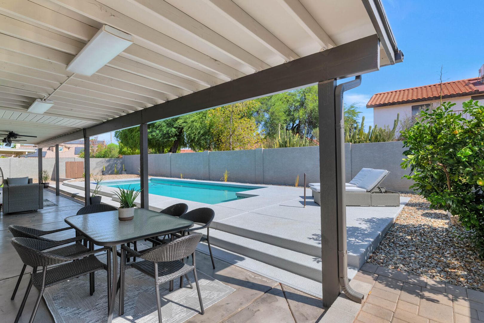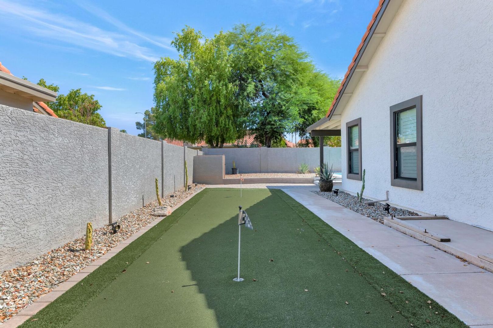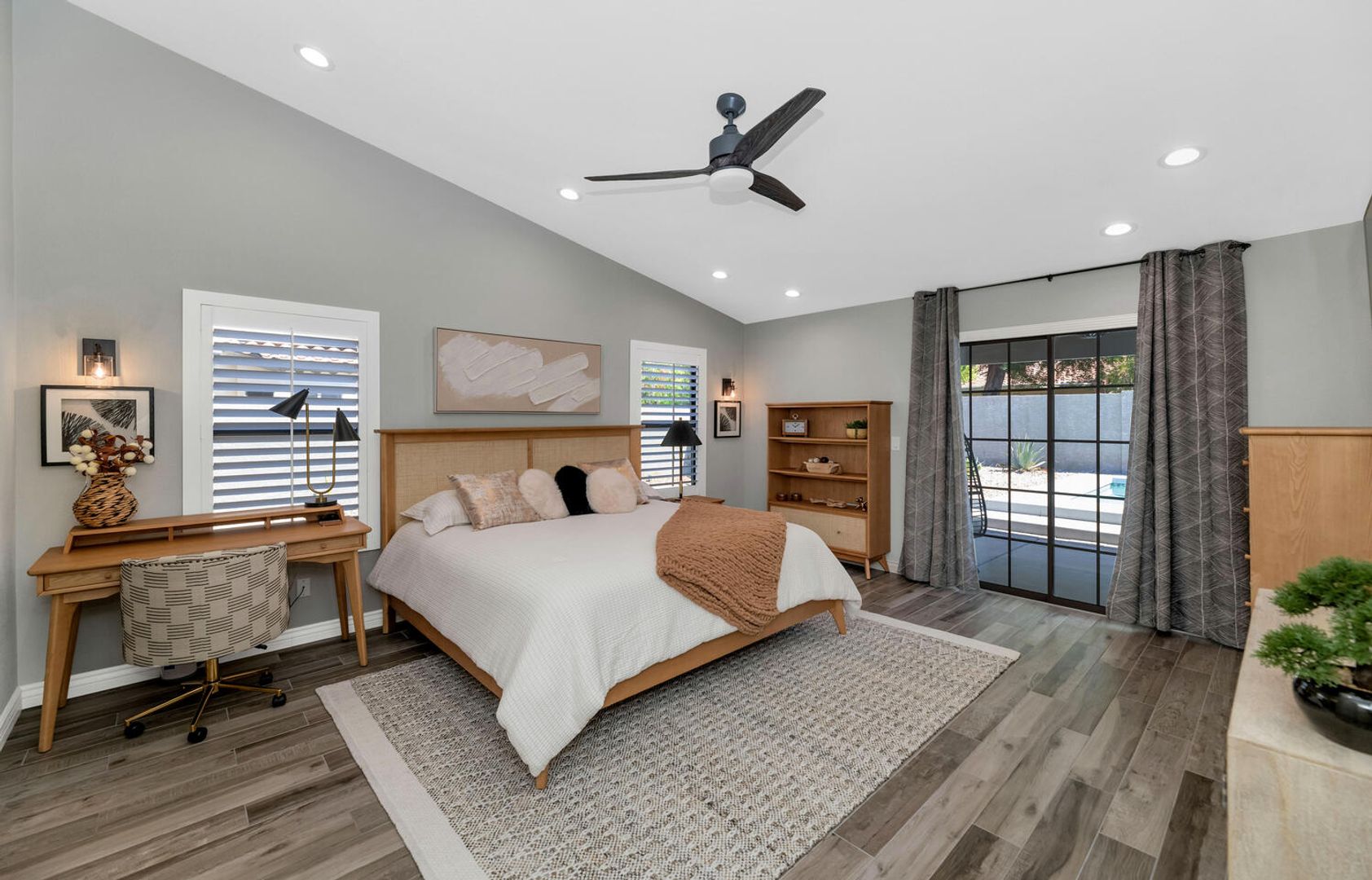 THIS IS A FURNISHED RENTAL THAT IS AVAILABLE SEASONALLY, LONG TERM PRICING, PLEASE CALL FOR BLENDED RATE!!! (Jan - Mar $4,995) (Apr, Oct - Dec $3,995) (May - Sep $3,495)!! Move-In Ready! Conveniently nestled near Fwy 60, shopping spots, & restaurants. Offering attractive curb appeal w/a 3 car-garage. Discover a charming living & dining room upon entrance, filled w/so much natural light, gorgeous wood-look flooring, vaulted ceilings, & backyard access. Gather around the fireplace on those chilly AZ nights! Well-kept eat-in kitchen is a cooker's delight, SS appliances, plenty of cabinet space, & bay window w/backyard views. Enjoy your gatherings in this serene backyard w/covered patio, putting green & refreshing blue pool. A must-see home you don't want to miss!