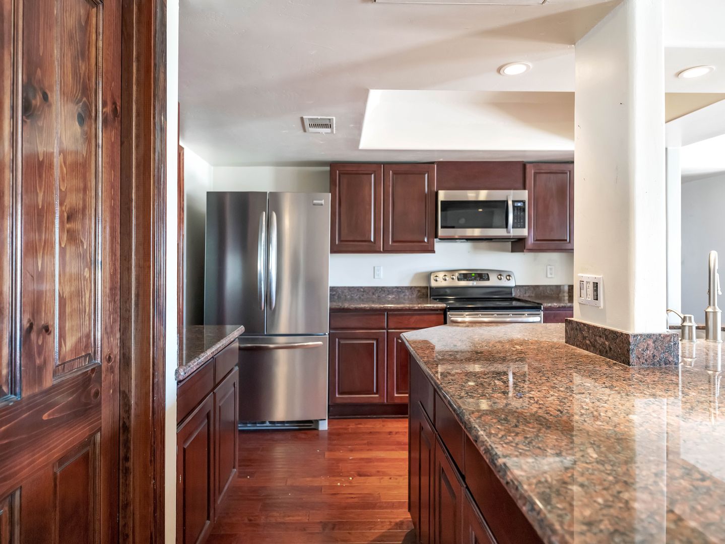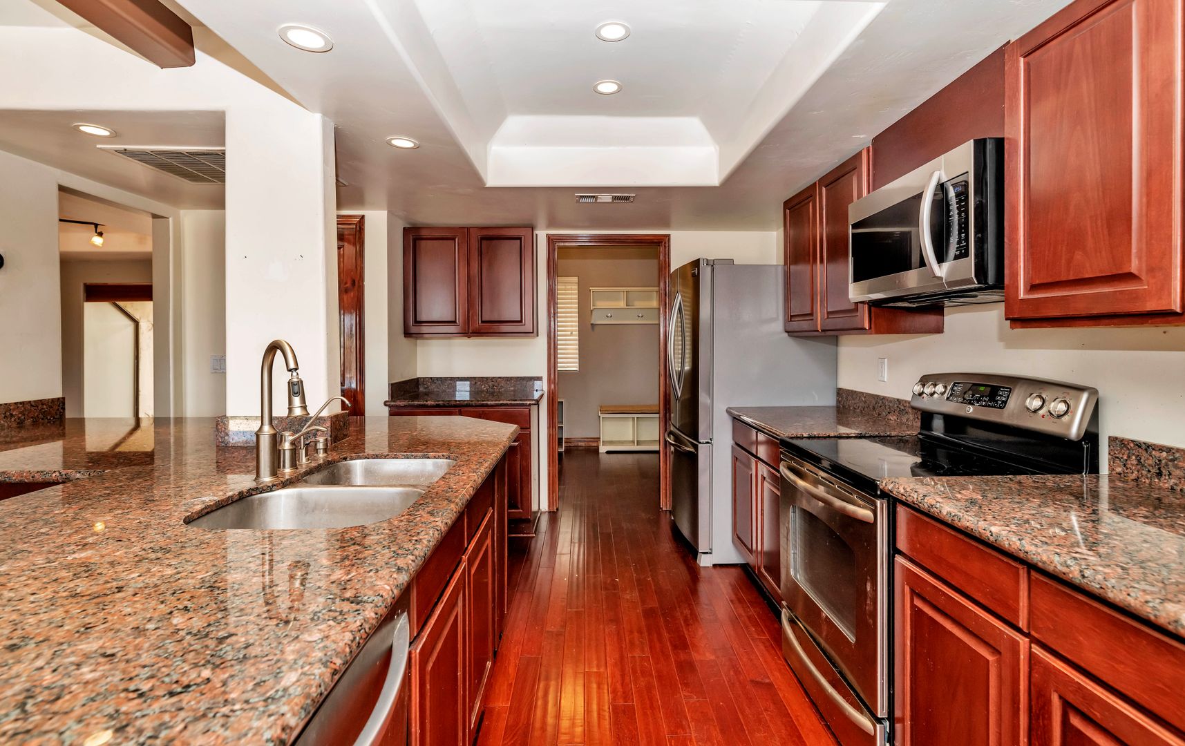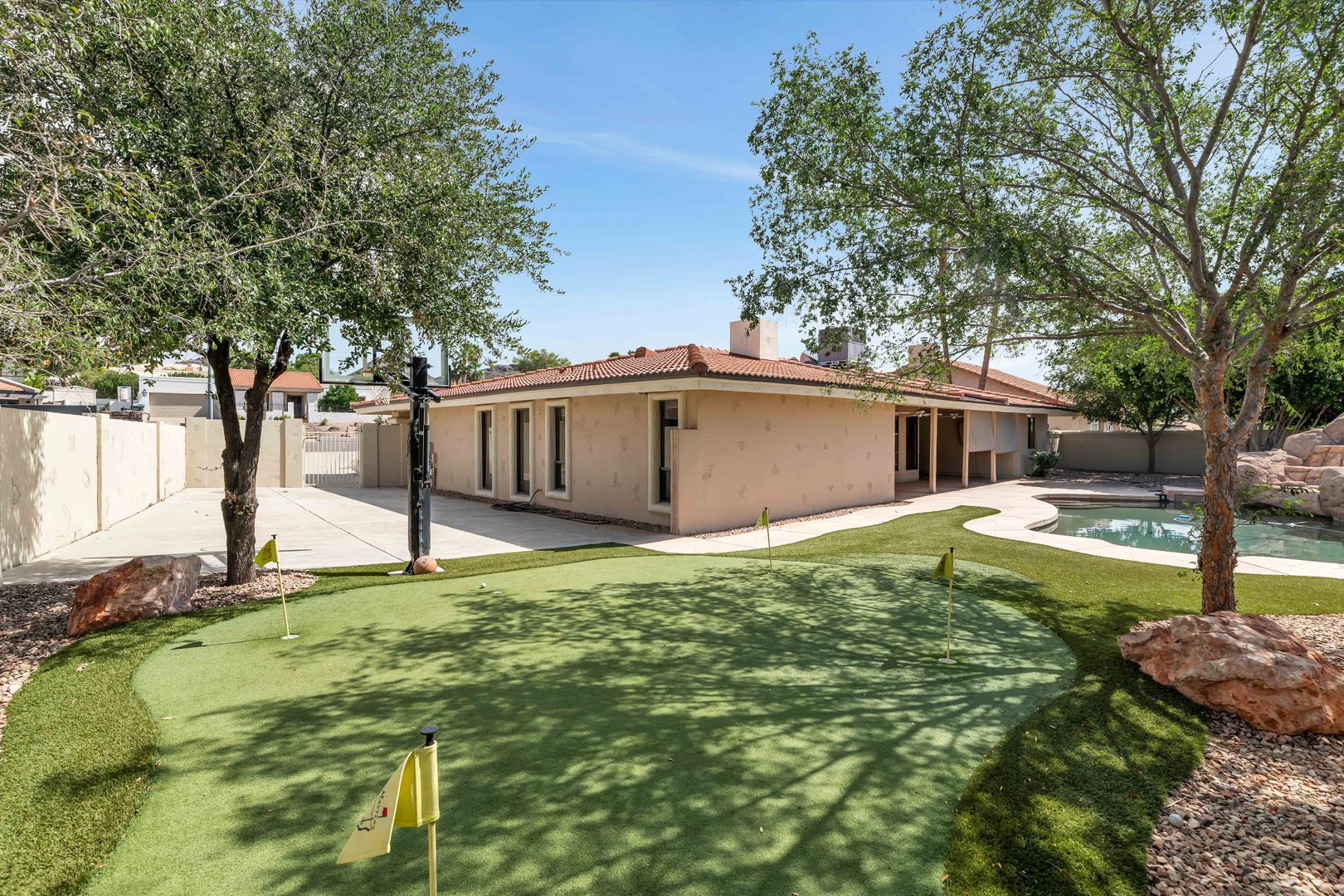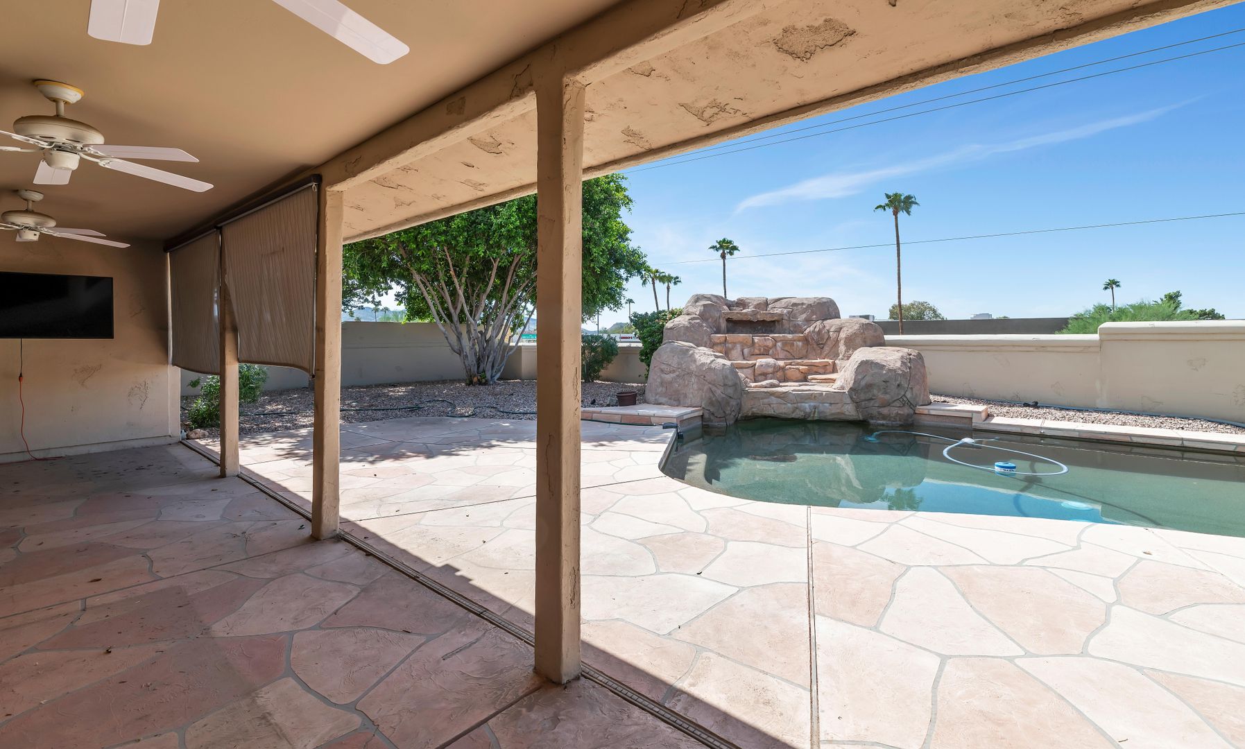 Beautiful completely updated family home in well-established neighborhood. Grand entrance with formal front room, huge family room with wood beamed ceiling. Highly upgraded remodeled kitchen with stainless steel appliances and luxury granite slab counters. Large open and bright family room with cozy fireplace. Neutral travertine flooring and designer interior paint perfect for any decorating style. Park like back yard with flagstone patio, cool refreshing pool with huge waterfall. Luxurious touches throughout. Very clean and appealing. Home will not last long.