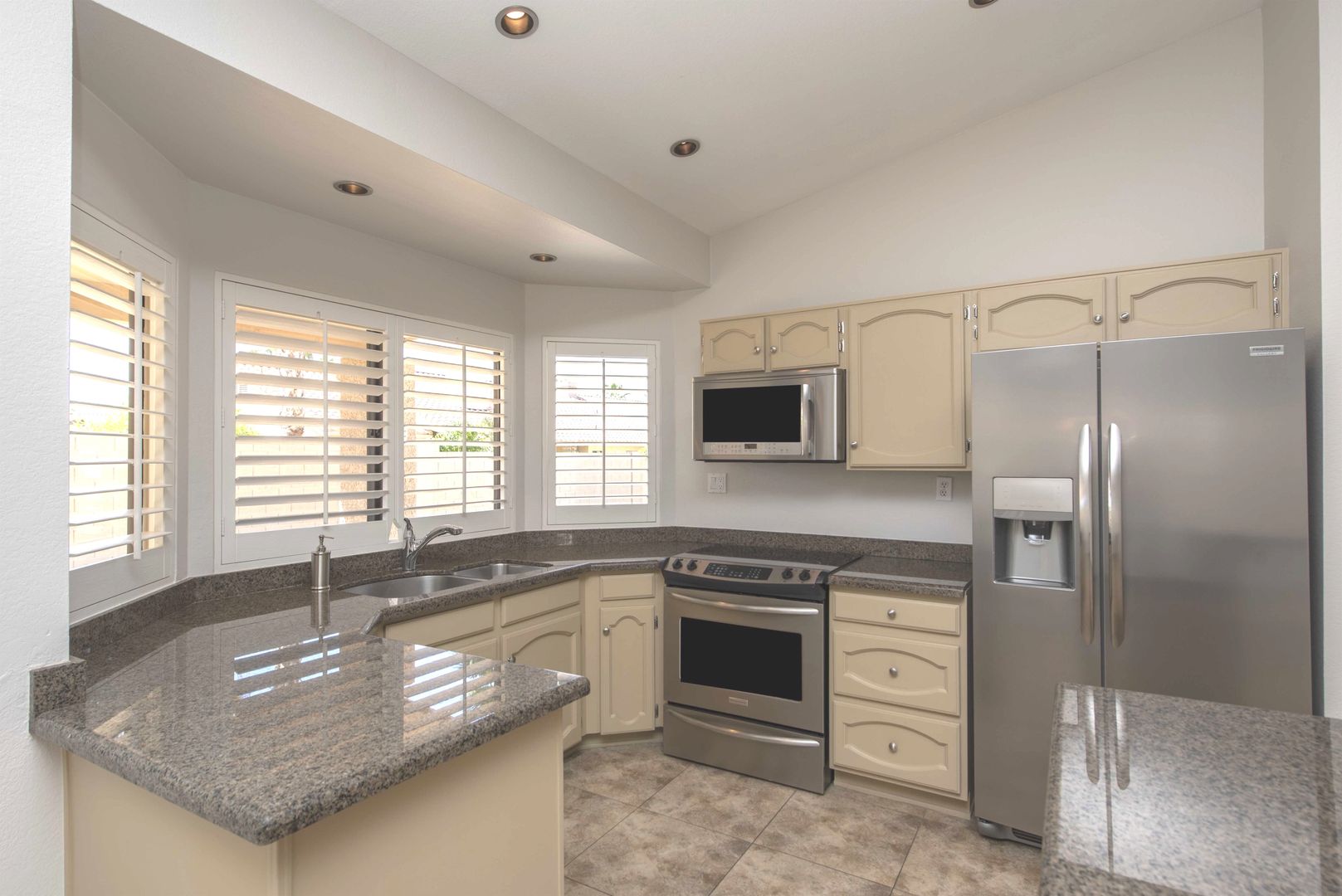THIS IS THE ONE!!!! LOCATION AND GORGEOUS!!! This home boasts 3 bedrooms, (master split), 2 bathrooms and a gourmet kitchen complete with upgraded appliances. Brand new interior paint and carpet throughout the home! Ample pantry storage in kitchen. Stainless appliances, including stunning refrigerator, complete this one-of-a-kind rental property. Landscape service is included for the professionally designed desert front and spacious grassed rear yard. NO PETS.