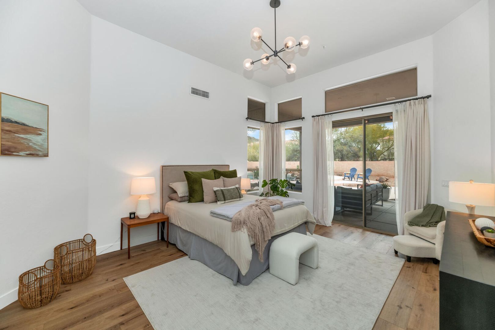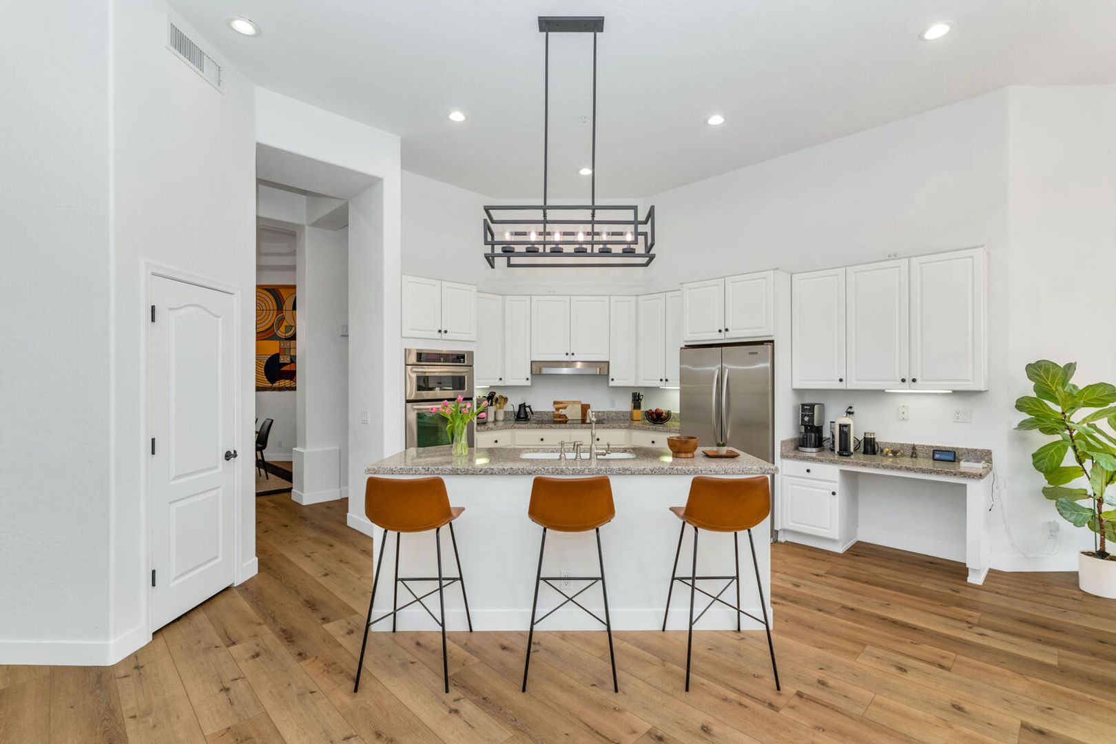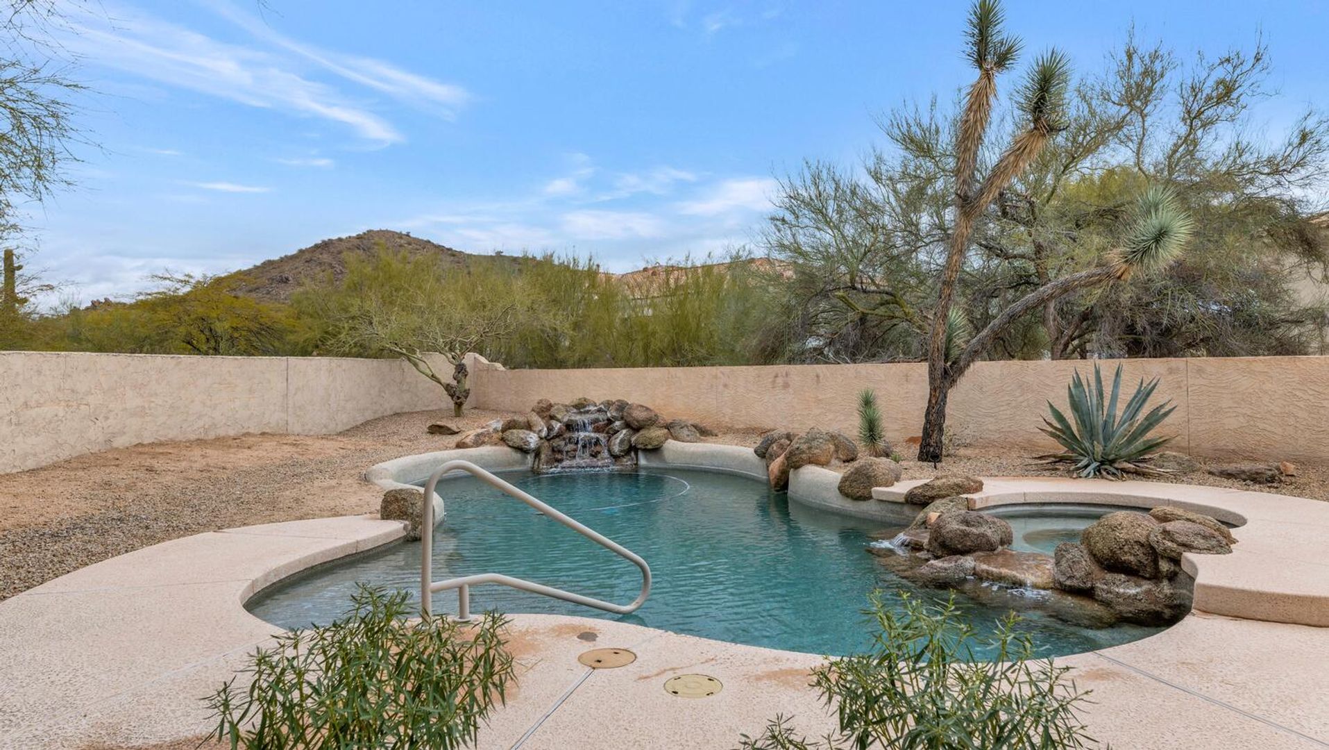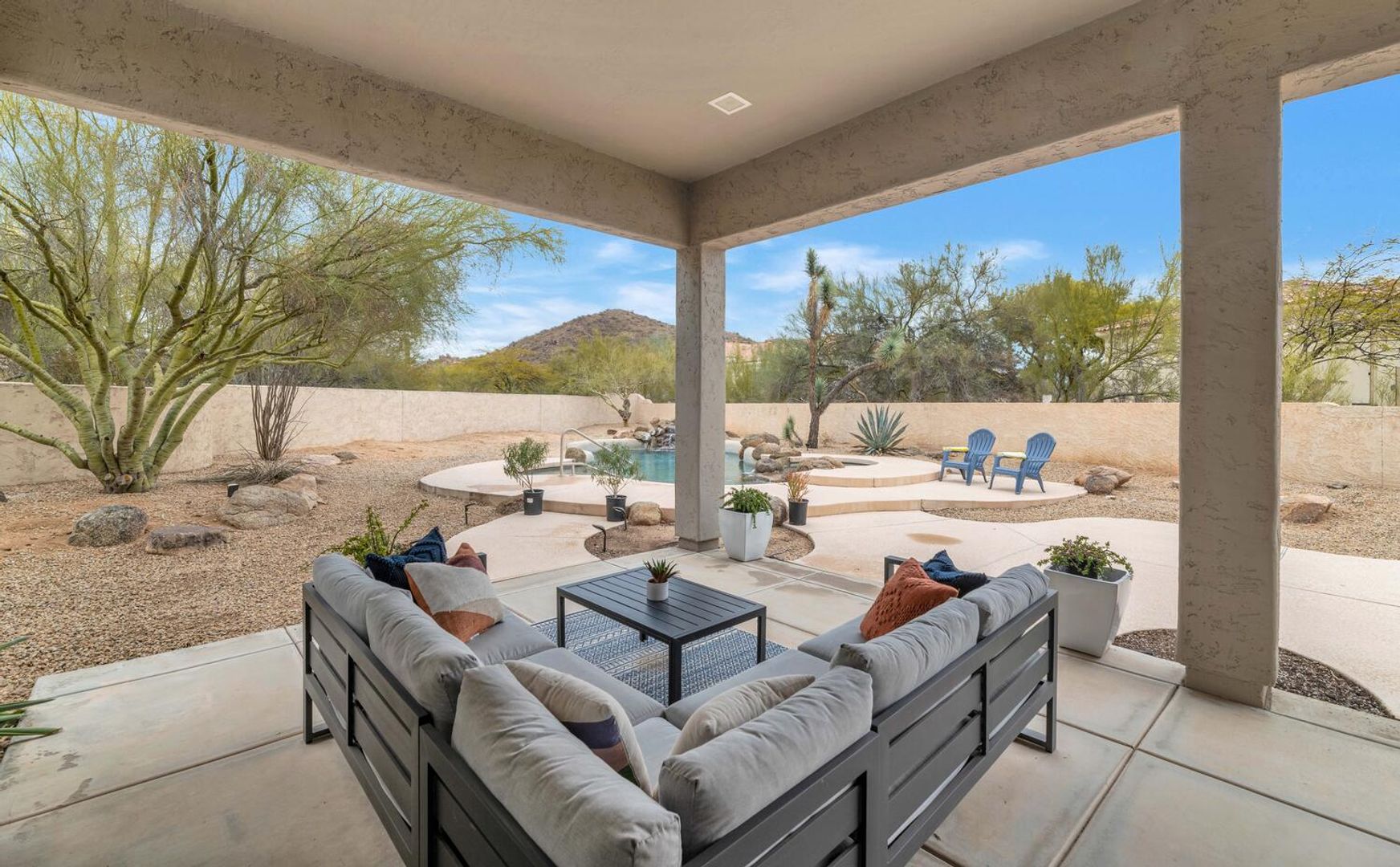4 bed, 2.5 bath residence with almost 75k in recent improvements! Nestled on a premium cul-de-sac lot w/fantastic mountain views & featuring great curb appeal, desert landscape, and a 3 car garage. Inside you will find a spacious open floor plan w/high ceilings, elegant new flooring, luxurious light fixtures, neutral palette throughout, and a cozy fireplace. The formal dining room is ideal for hosting a dinner party! Prepare delicious meals in this gorgeous kitchen, comprised of wood cabinetry w/granite counters, a pantry, SS appliances, and a lovely island. Double doors open up to the master bedroom, showcasing a walk-in closets, and a lavish ensuite w/dual vanities. Also Great Flex/Office/Den space. Lastly, the expansive backyard includes a covered patio and a sparkling blue pool/spa!