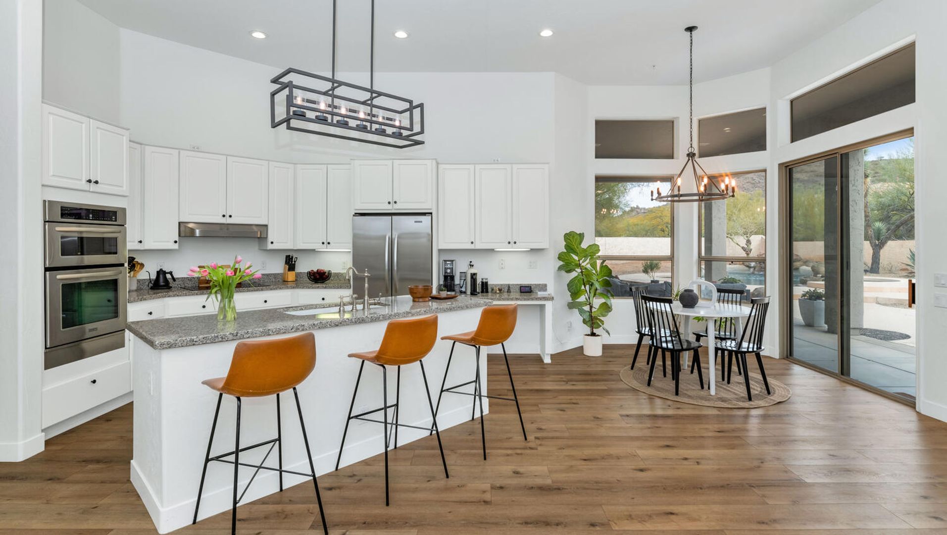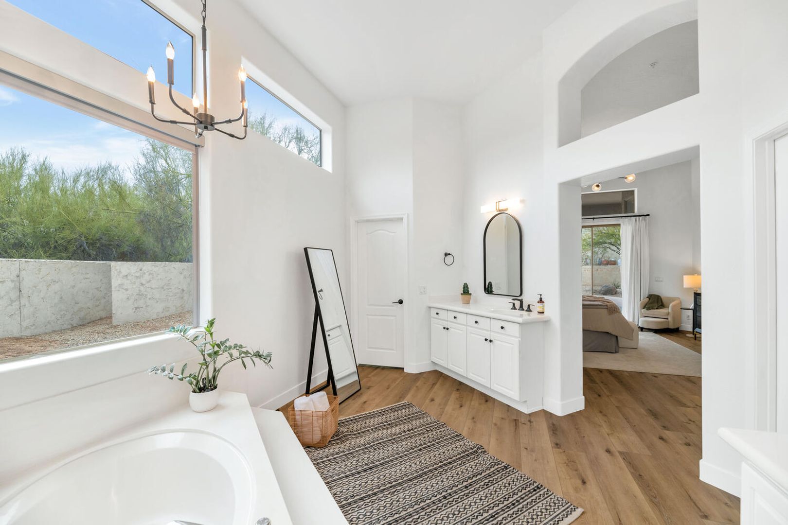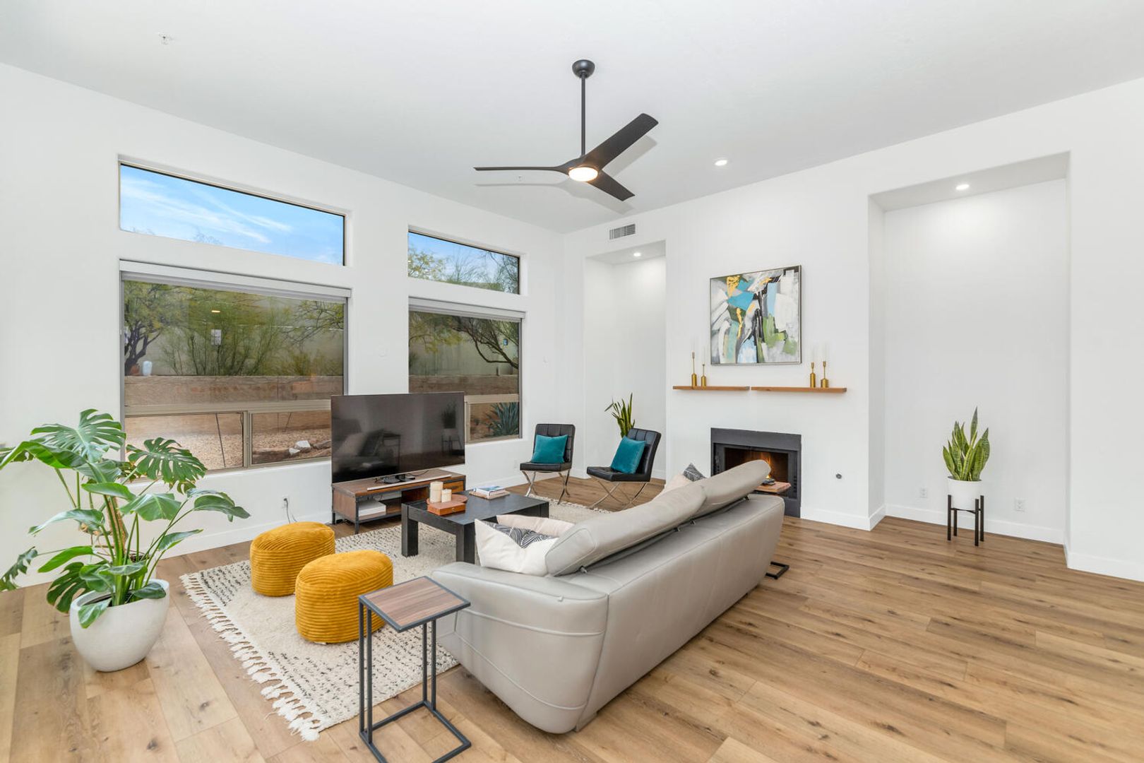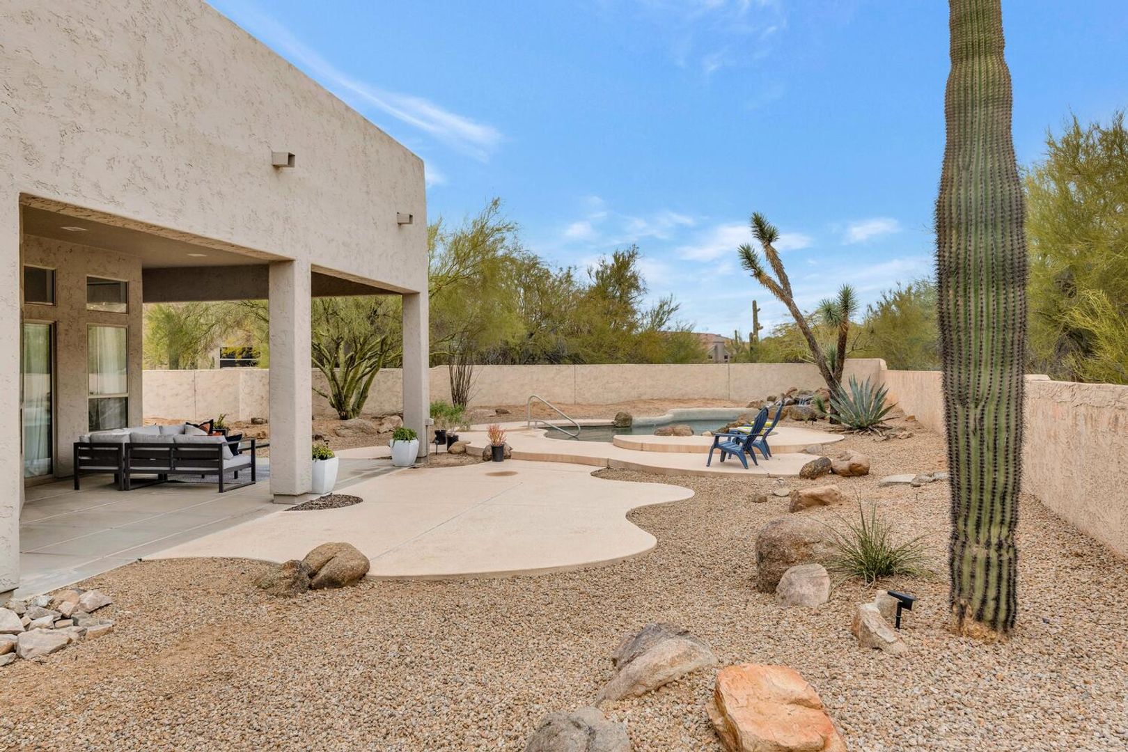 4 bed, 2.5 bath residence with almost 75k in recent improvements! Nestled on a premium cul-de-sac lot w/fantastic mountain views & featuring great curb appeal, desert landscape, and a 3 car garage. Inside you will find a spacious open floor plan w/high ceilings, elegant new flooring, luxurious light fixtures, neutral palette throughout, and a cozy fireplace. The formal dining room is ideal for hosting a dinner party! Prepare delicious meals in this gorgeous kitchen, comprised of wood cabinetry w/granite counters, a pantry, SS appliances, and a lovely island. Double doors open up to the master bedroom, showcasing a walk-in closets, and a lavish ensuite w/dual vanities. Also Great Flex/Office/Den space. Lastly, the expansive backyard includes a covered patio and a sparkling blue pool/spa!