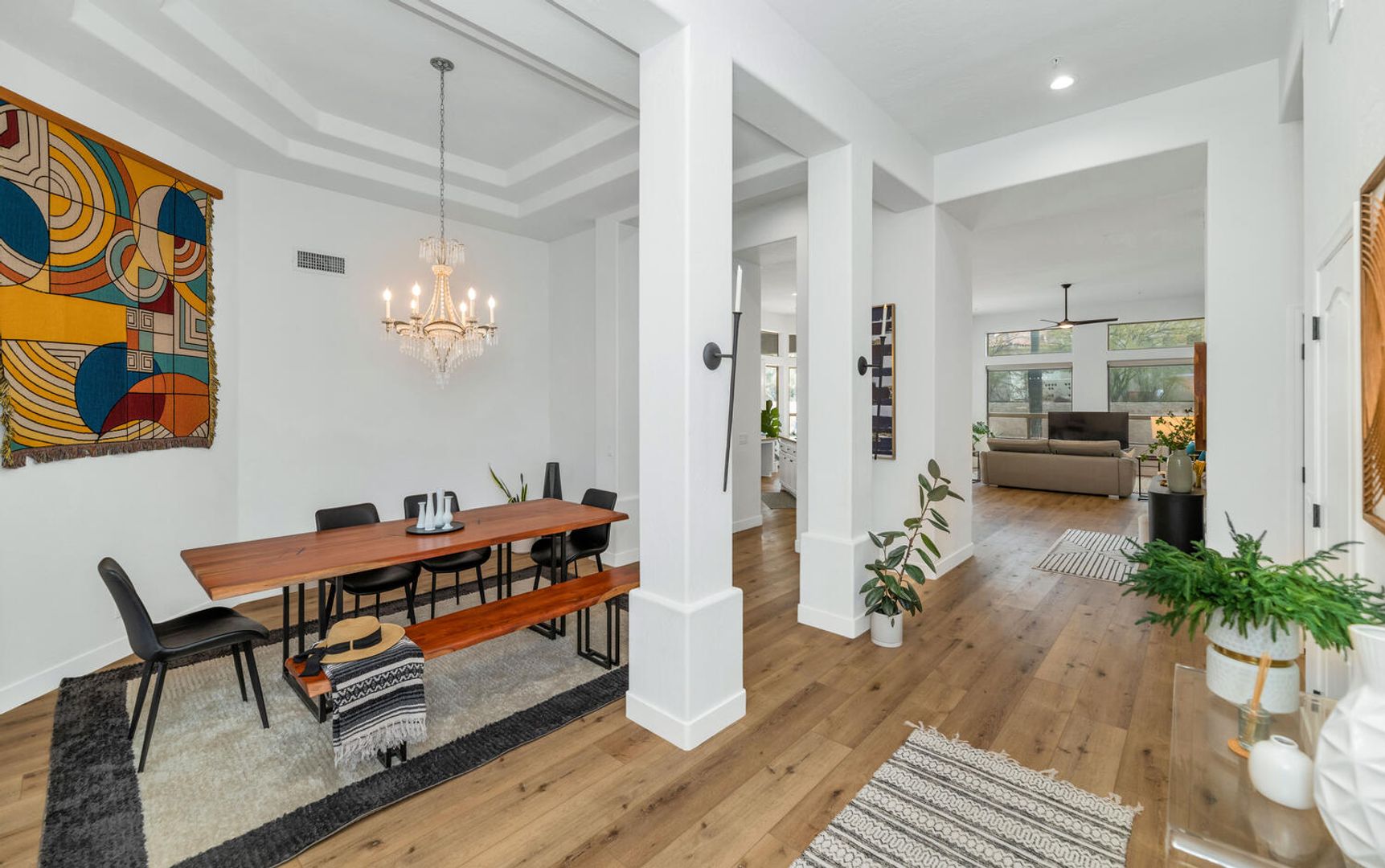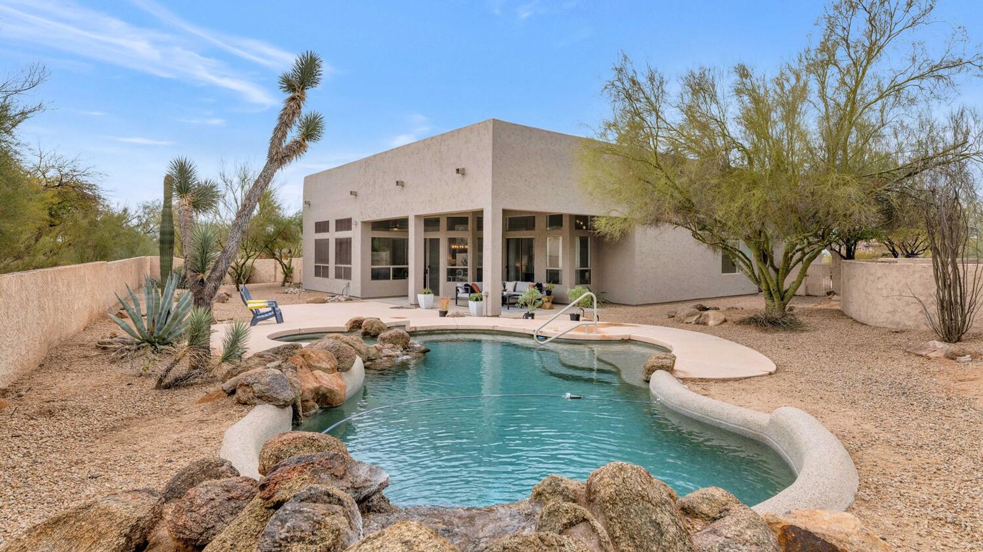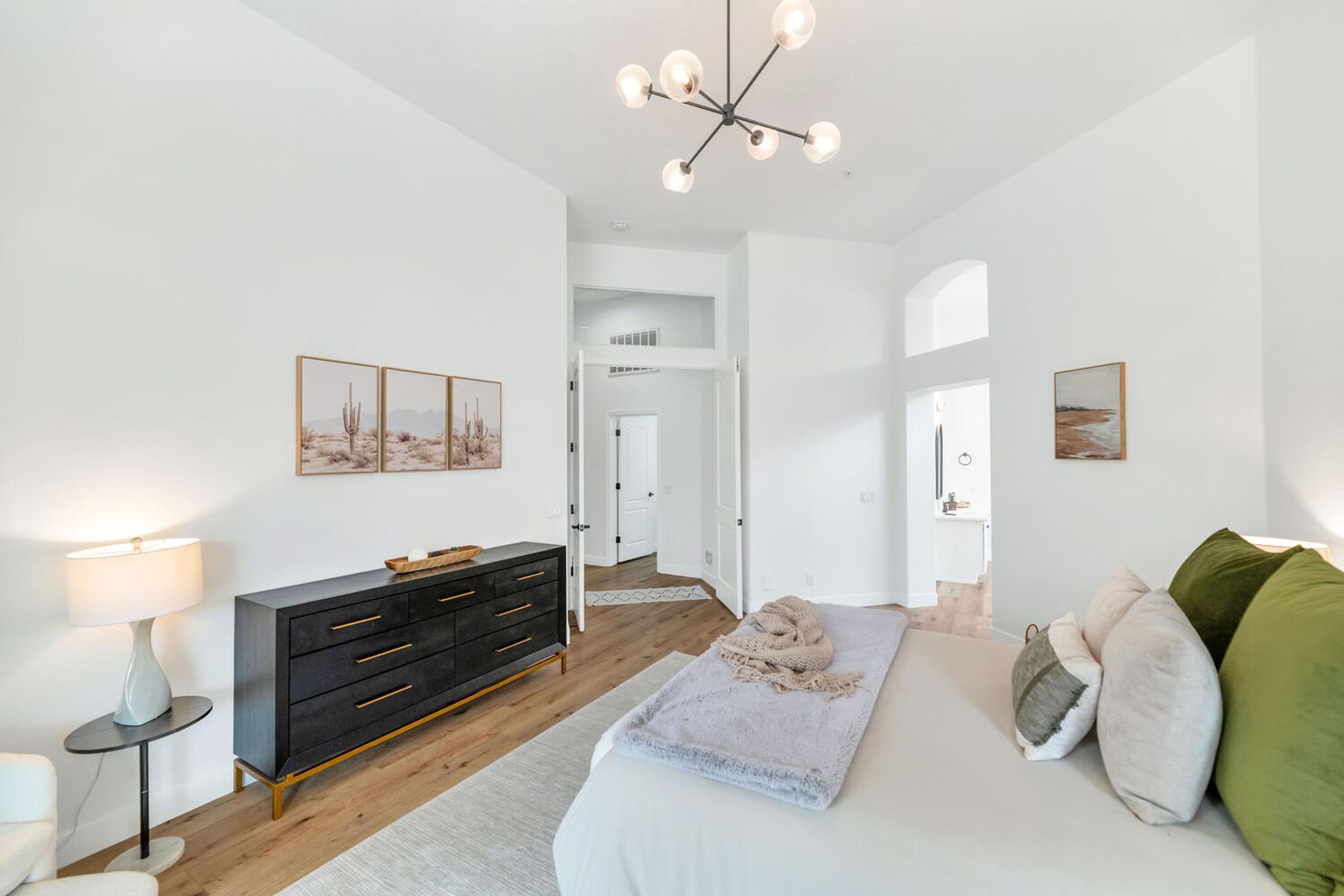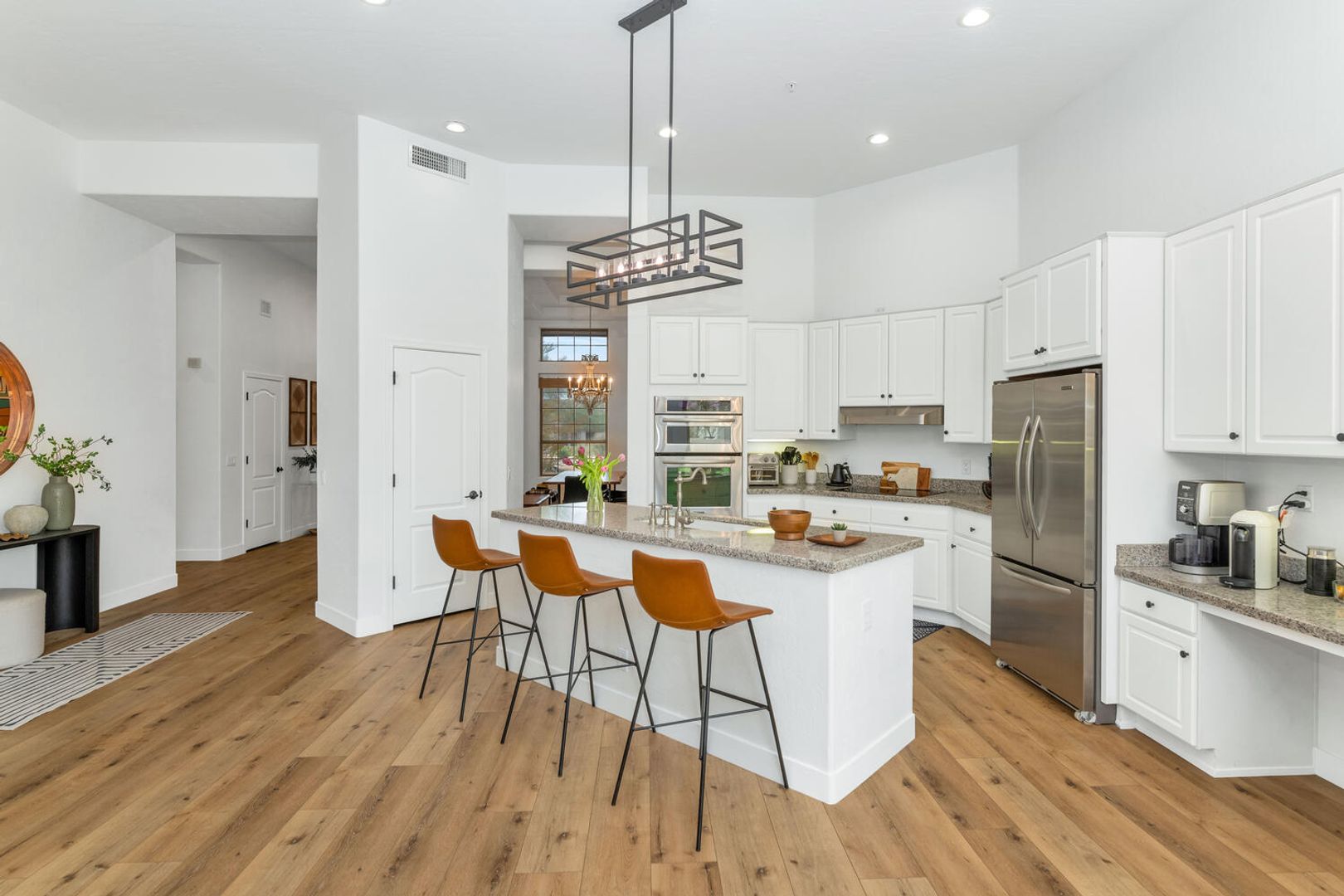 4 bed, 2.5 bath residence with almost 75k in recent improvements! Nestled on a premium cul-de-sac lot w/fantastic mountain views & featuring great curb appeal, desert landscape, and a 3 car garage. Inside you will find a spacious open floor plan w/high ceilings, elegant new flooring, luxurious light fixtures, neutral palette throughout, and a cozy fireplace. The formal dining room is ideal for hosting a dinner party! Prepare delicious meals in this gorgeous kitchen, comprised of wood cabinetry w/granite counters, a pantry, SS appliances, and a lovely island. Double doors open up to the master bedroom, showcasing a walk-in closets, and a lavish ensuite w/dual vanities. Also Great Flex/Office/Den space. Lastly, the expansive backyard includes a covered patio and a sparkling blue pool/spa!