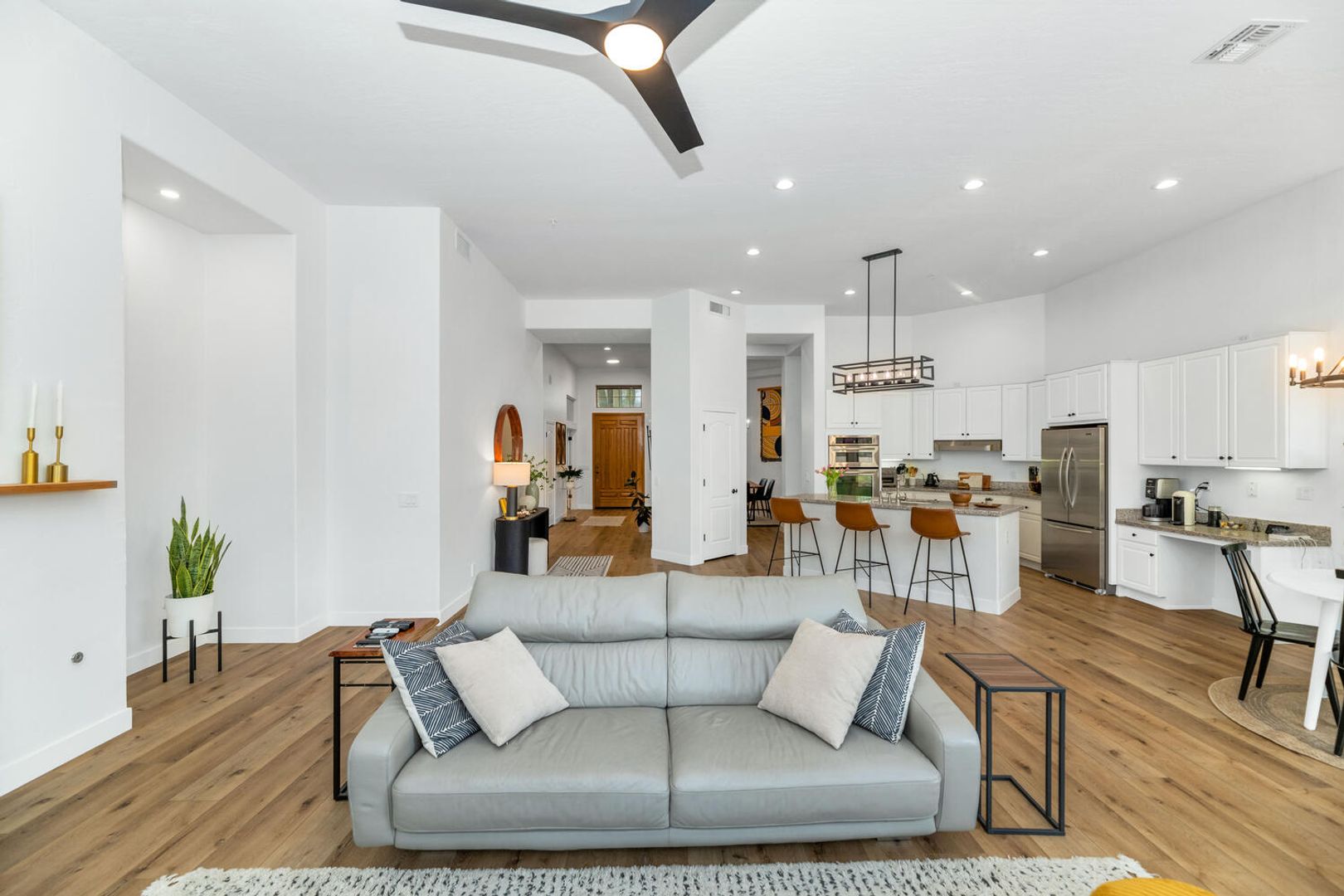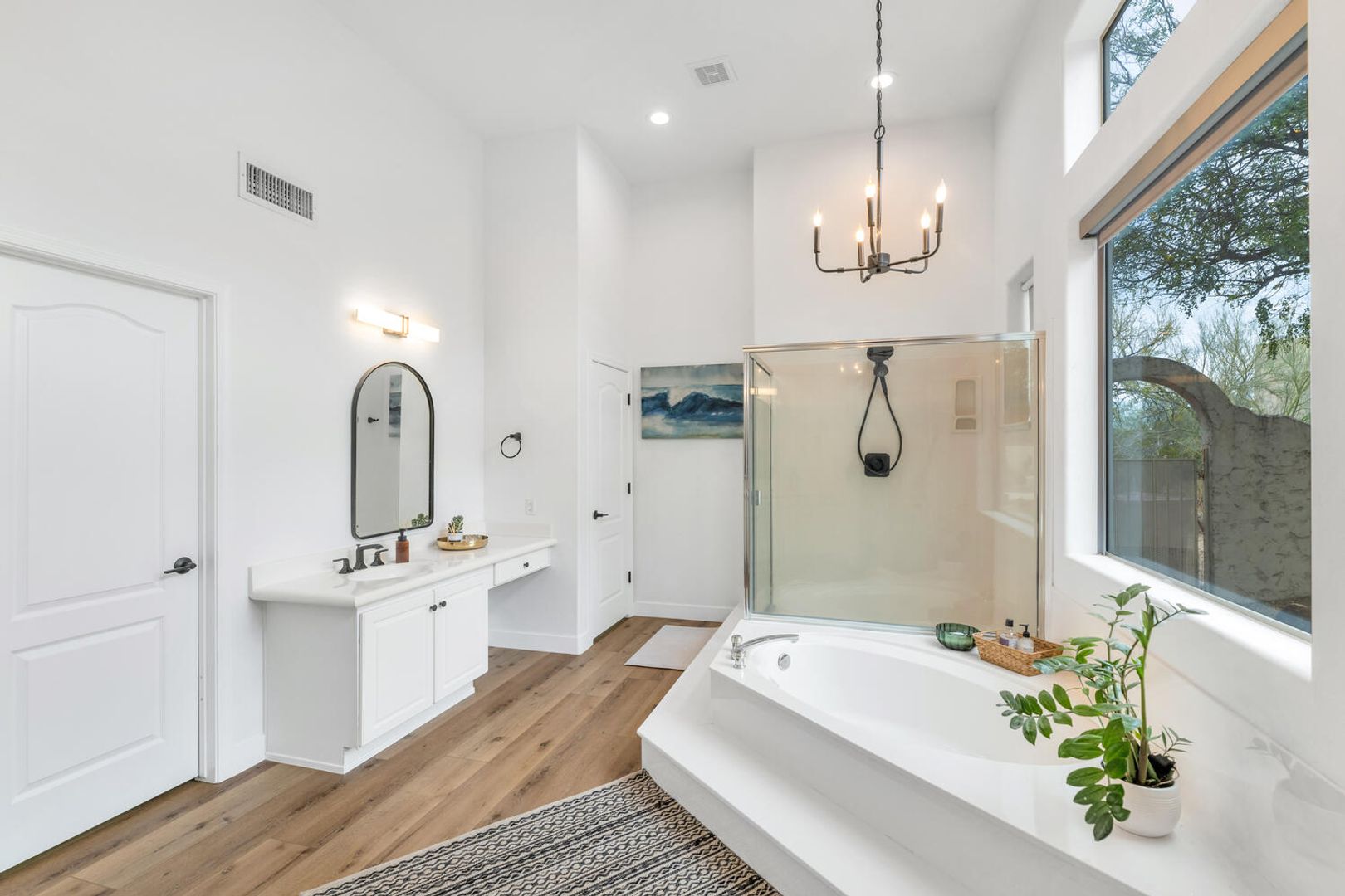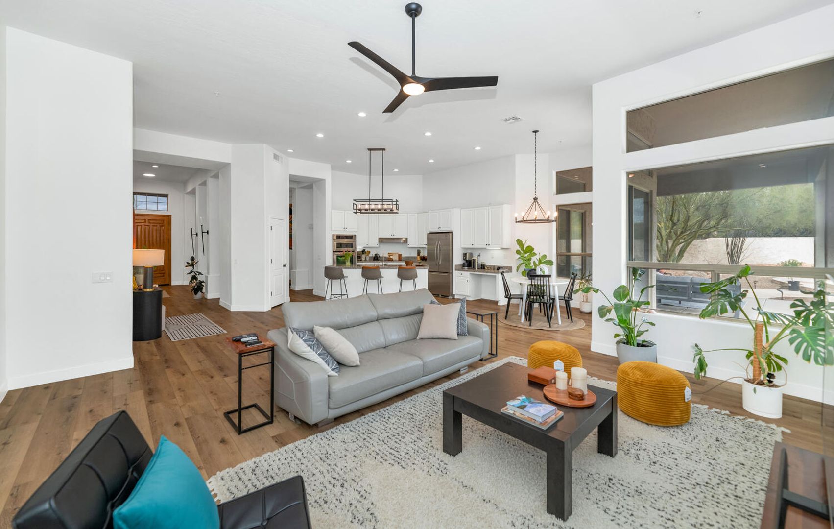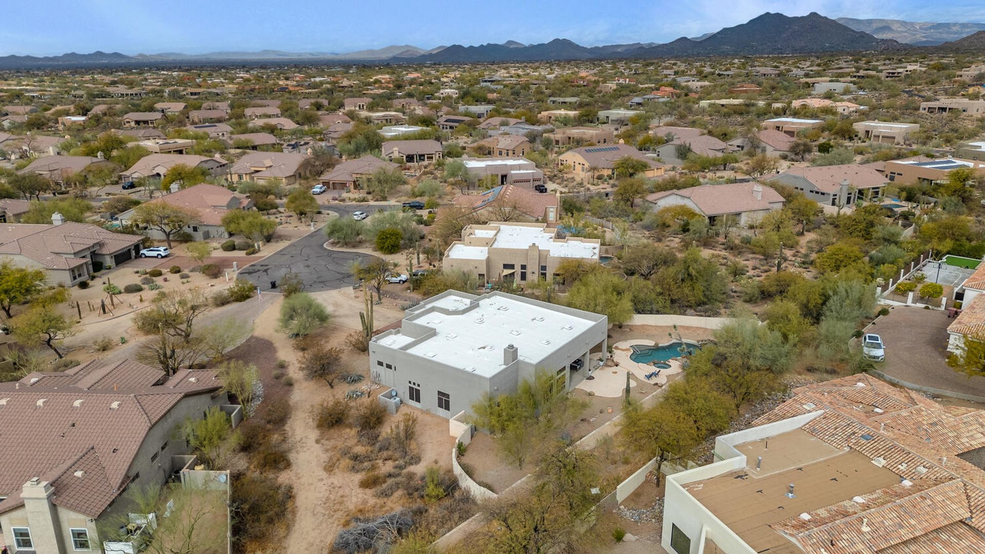 4 bed, 2.5 bath residence with almost 75k in recent improvements! Nestled on a premium cul-de-sac lot w/fantastic mountain views & featuring great curb appeal, desert landscape, and a 3 car garage. Inside you will find a spacious open floor plan w/high ceilings, elegant new flooring, luxurious light fixtures, neutral palette throughout, and a cozy fireplace. The formal dining room is ideal for hosting a dinner party! Prepare delicious meals in this gorgeous kitchen, comprised of wood cabinetry w/granite counters, a pantry, SS appliances, and a lovely island. Double doors open up to the master bedroom, showcasing a walk-in closets, and a lavish ensuite w/dual vanities. Also Great Flex/Office/Den space. Lastly, the expansive backyard includes a covered patio and a sparkling blue pool/spa!