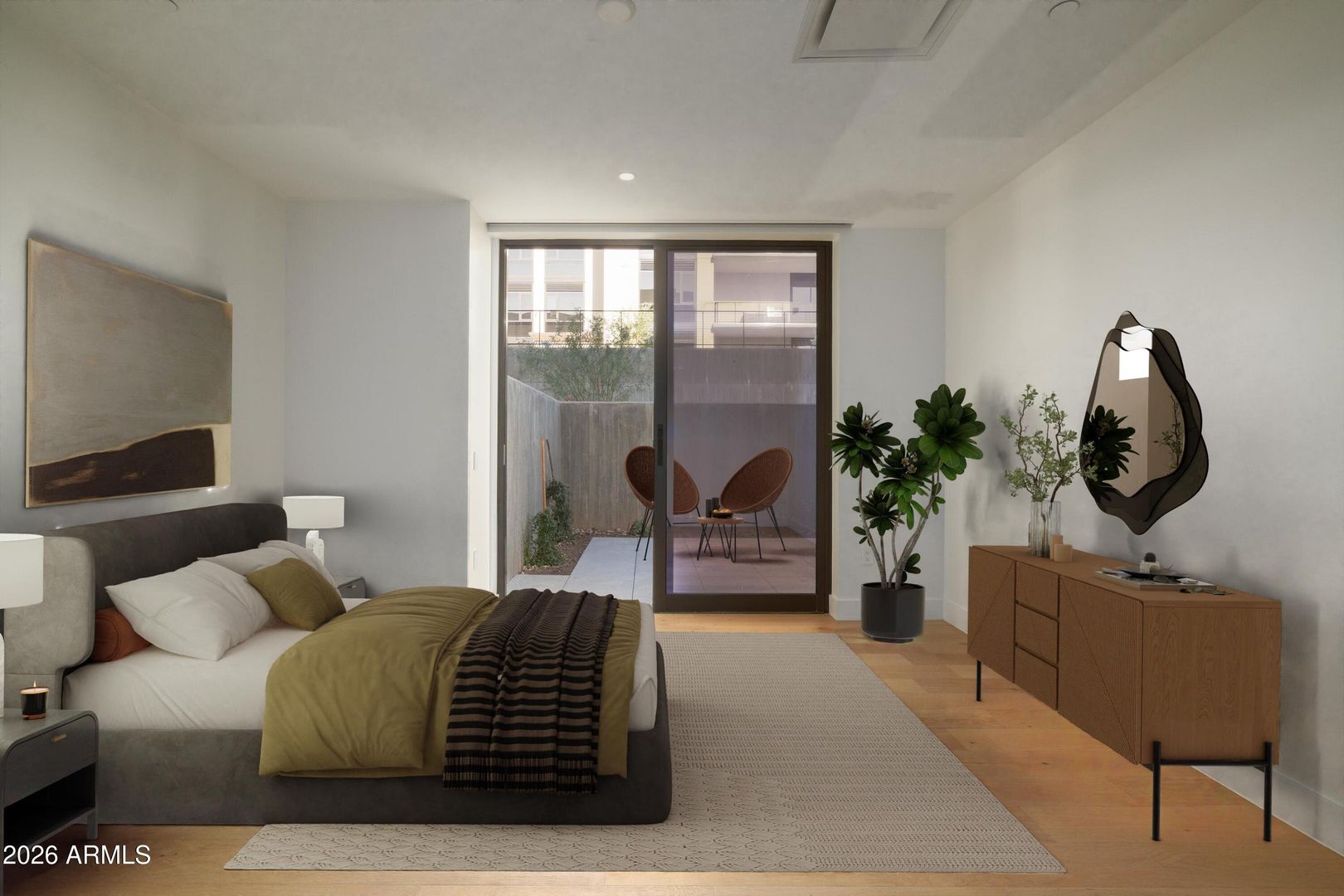 Experience world-class modern luxury at Unit 108 in the prestigious Ascent at The Phoenician, Scottsdale's premier gated community nestled at the base of Camelback Mountain. This brand-new, never-lived-in first-floor condominium residence offers 2 bedrooms, 3 bathrooms, plus a versatile den, delivering seamless sophistication and effortless flow. Floor-to-ceiling moving glass walls and doors effortlessly blend indoor and outdoor living, opening to a generous private terrace ideal for al fresco dining and relaxation. The open-concept design masterfully combines clean, contemporary lines with warm natural materials, reflecting the signature Vallone Design aesthetic. Highlights include a custom Bulthaup kitchen, wide-plank European oak flooring, premium Waterworks fixtures, top-tier Wolf and Sub-Zero gourmet appliances, and soaring 10-foot ceilings that create a serene, inviting ambiance. The luxurious master suite is a true retreat, featuring a spa-inspired, earth-toned bath with a deep soaking tub, an expansive walk-in closet, and direct access to your private terrace. A second bedroom with its own en-suite bath, along with the conveniently positioned den, ensures functional elegance for everyday living or guests. Exclusive to Ascent, The Mountain Club elevates resort-style living with a state-of-the-art fitness and movement studio, an elegant party room and kitchen, a sparkling private pool, and a stunning rooftop terrace offering breathtaking 360-degree views of Camelback Mountain and the Valley below. Residents also enjoy privileged access to the world-renowned amenities at the adjacent Phoenician Resort, embracing an active, refined desert lifestyle. Additional refinements include a secure private entry gate with 24/7 guardhouse, a beautifully crafted wood front door, abundant natural light through expansive glass windows, a custom gas fireplace in the living room, an outdoor gas fireplace paired with a stainless built-in BBQ and so much more. Secure parking for two vehicles in the garage. Discover unparalleled luxury in a home that perfectly marries modernist design with the timeless beauty of its iconic surroundings.