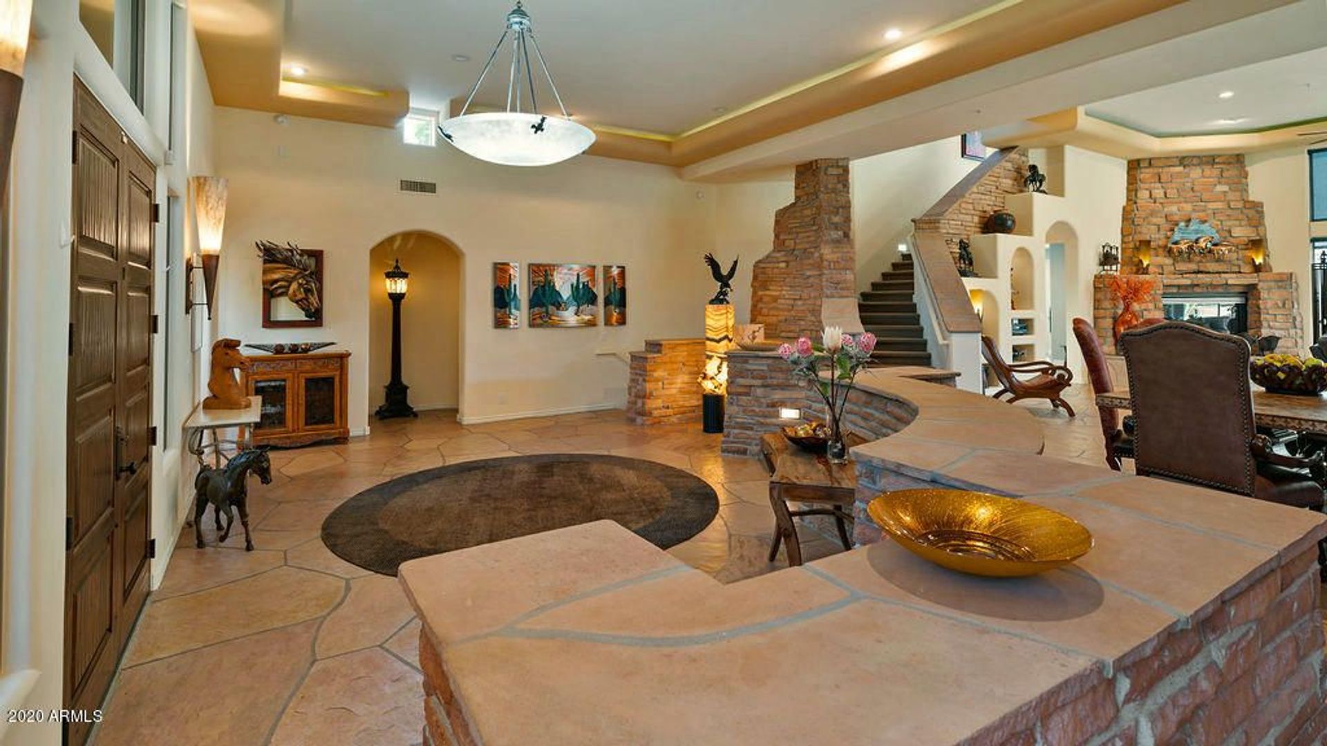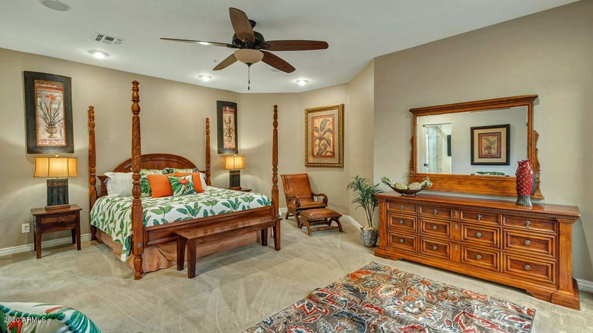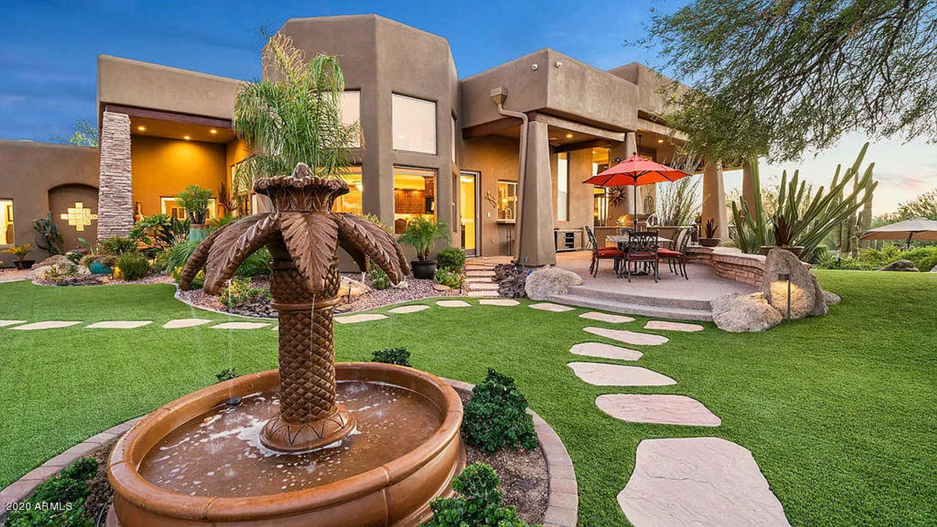 6 Month Minimum - OWNER WILL UNFURNISH OR PARTIALLY FURNISH HOME AS WELL for $10,995 per month! Exceptional home located on golf course w/views of Camelback, sunsets & city lights. Courtyard entry to ultimate private entertainers paradise. Main floor has a great room, dining room, gourmet kitchen, breakfast room, master suite all with views plus 3 additional bedrooms & 2.5 baths. Indoor to outdoor living is made easy with disappearing walls of glass to multiple patios with views! Upstairs is a large executive office with view deck & half bath. Downstairs leads to movie time in your private theatre! A family/game room with kitchen & guest suite. Exit to your own private patio downstairs. The resort grounds with waterfall cascading from spa into large into large pool; entertaining made easy with multiple decks to the spacious yard!