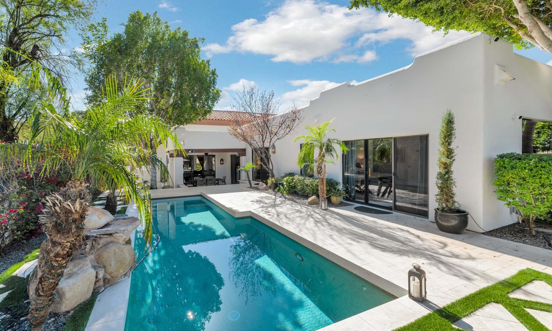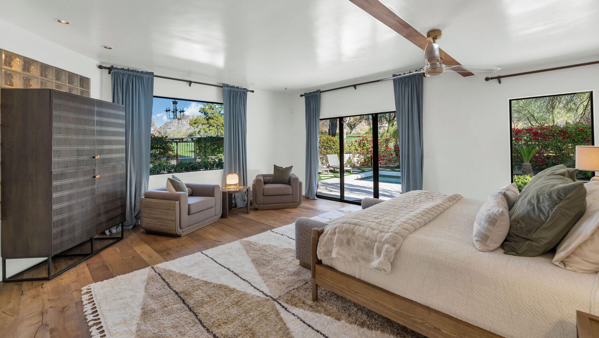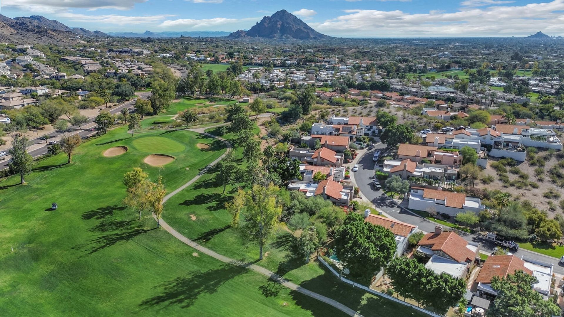 THIS IS A FURNISHED RENTAL THAT IS AVAILABLE SEASONALLY, LONG TERM PRICING, PLEASE CALL FOR BLENDED RATE (Jan - Mar $14,995) (Apr, Oct - Dec $8,995) (May - Sept $7,995)!! Experience resort-style living perched on the prestigious 14th hole of the Arizona Biltmore Links Course, where sweeping golf fairway and majestic mountain views create a breathtaking backdrop for your private backyard oasis—perfectly crafted for serene relaxation and effortless entertaining. This exquisite 3-bedroom, 3-bathroom residence seamlessly blends timeless elegance with contemporary comforts. Soaring wood-beam ceilings crown the open living spaces, bathed in natural light and adorned with sophisticated, updated finishes throughout—including a gourmet kitchen, luxurious bathrooms, and premium flooring—that embody the refined spirit of desert luxury in one of Phoenix's most coveted enclaves. Step outside to an enchanting Parisian-inspired hardscape patio, featuring fresh artificial turf, vibrant lush landscaping, a premium built-in grill, and a refreshing misting system designed for year-round enjoyment.